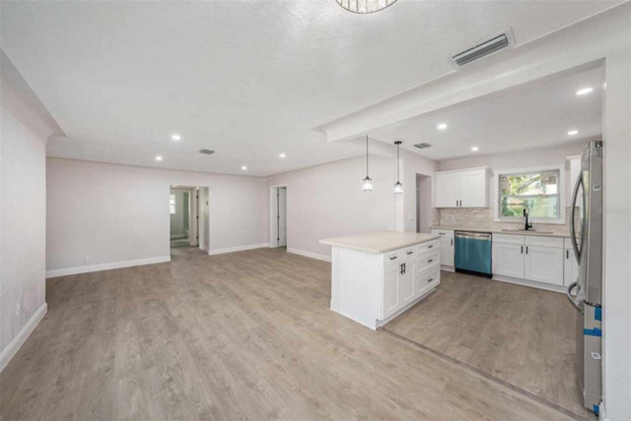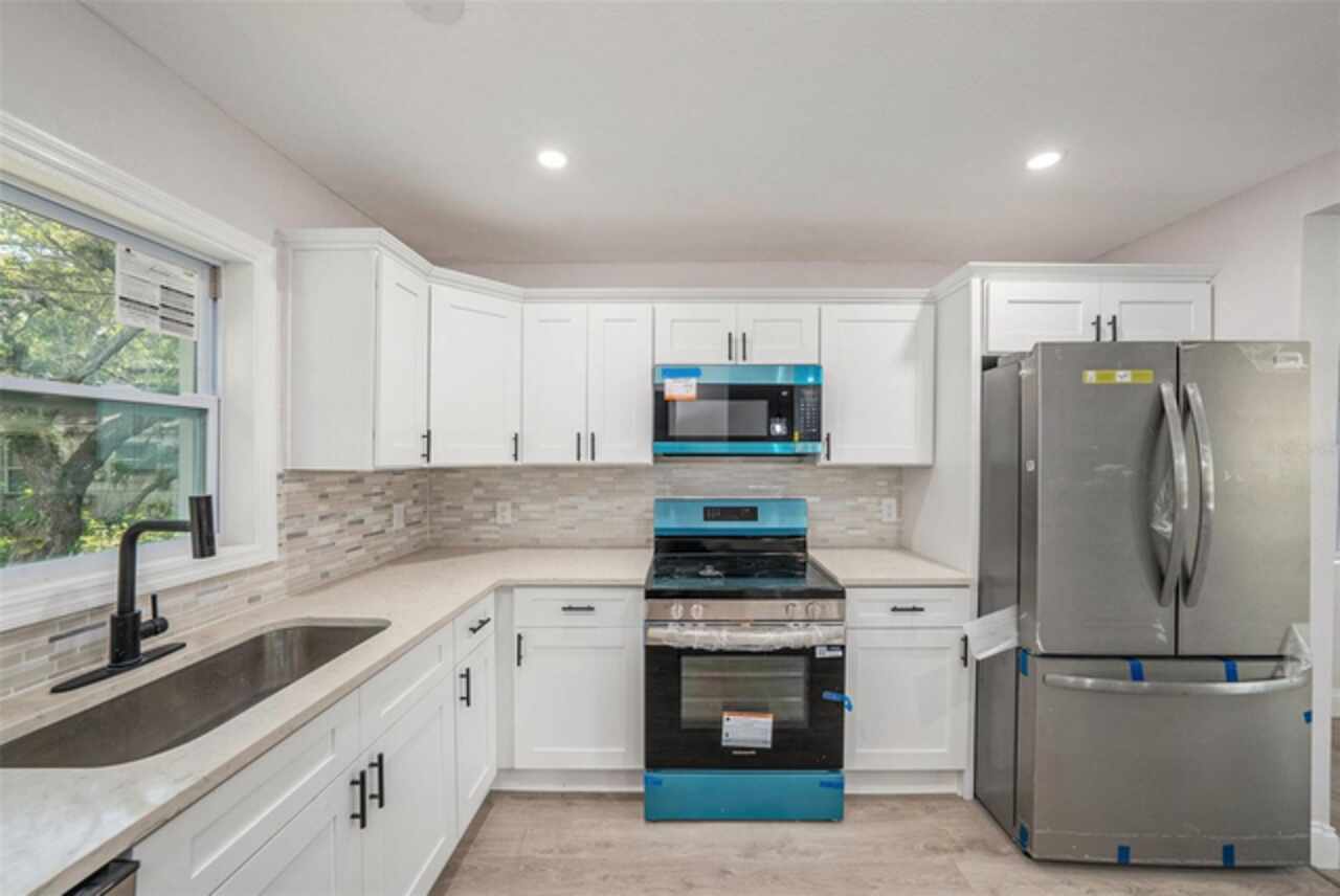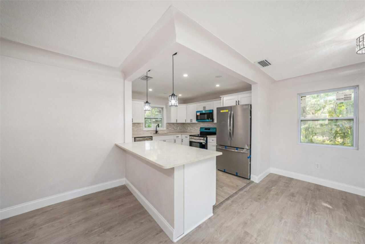 The perfect family home awaits! This spacious 3 bedroom, 2 full bathroom, 2 car garage, with Oversized lot is ready for you to move right in , located only 10 minutes from St Pete Downtown COULD VERY WELL BE A POTENTIAL VACATION HOME OR AIRBNB HOME, As you enter the home you will notice a large open floor plan, great for entertaining. Dining room and kitchen combo, Features Include Newer A/C System in 2021. Roof in 2012, Stunning updated eat in kitchen w/ QUARTZ COUNTERTOPS, Breakfast Bar, all New Stainless Steel Appliances, Totally remodeled in 2025 recessed lighting and Ceiling Fan in every single room, Brand New windows throw-out the home , NEW ELECTRICAL PANEL, and full house RE-WIRE, New fresh paint interior and exterior, The primary bedroom features an updated Bathroom with Quartz Countertops and new vanity and walking shower, natural light fills every room through the new impact windows, which not only enhance the energy efficiency of the property but also add a touch of elegance. This home sit in almost half of acre lot with 420 sqft detached garage with plumbing and electric ready, plenty space for a man cave or future mother in law suite, spacious driveway allowing plenty of room for boat or extra cars storage, Backyard has a new wood Fence for privacy, You can sit and enjoy the peace and beauty of the surroundings. Located in a non-HOA community, you'll appreciate its close proximity to to Downtown, the Pier under 10 minutes and top beaches in florida, as Pass-a-away Grill Beach only 17 minutes This is a must-see, well-kept, and maintained home. Seller Motivated , will assist with closing cost.