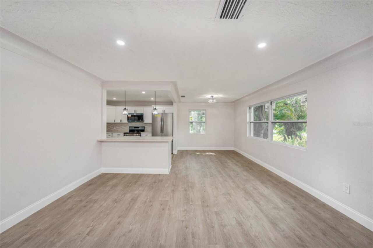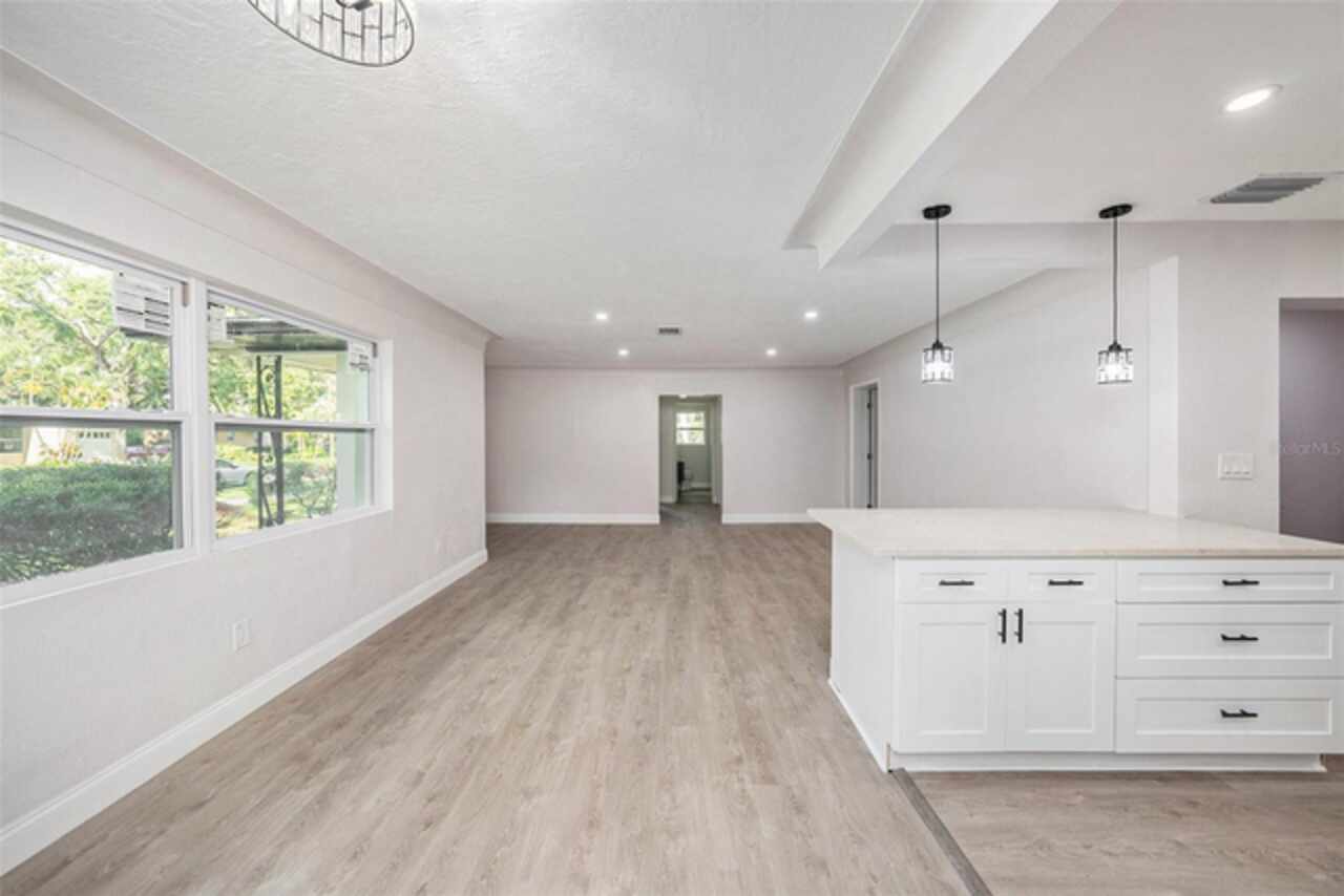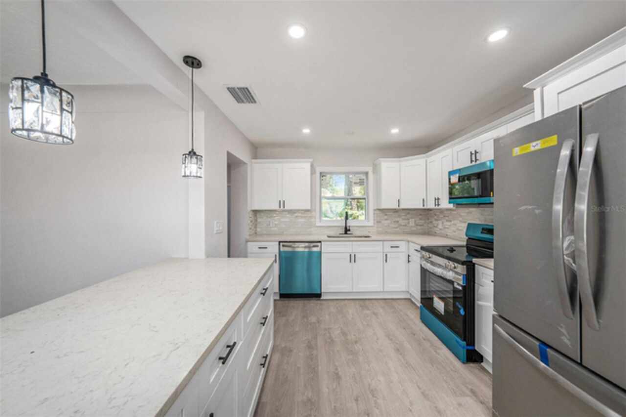 The perfect family home awaits! This spacious 3 bedroom, 2 full bathroom, 2 car garage, with Oversized lot is ready for you to move right in , located only 10 minutes from St Pete Downtown COULD VERY WELL BE A POTENTIAL VACATION HOME OR AIRBNB HOME, As you enter the home you will notice a large open floor plan, great for entertaining. Dining room and kitchen combo, Features Include Newer A/C System in 2021. Roof in 2012, Stunning updated eat in kitchen w/ QUARTZ COUNTERTOPS, Breakfast Bar, all New Stainless Steel Appliances, Totally remodeled in 2025 recessed lighting and Ceiling Fan in every single room, Brand New windows throw-out the home , NEW ELECTRICAL PANEL, and full house RE-WIRE, New fresh paint interior and exterior, The primary bedroom features an updated Bathroom with Quartz Countertops and new vanity and walking shower, natural light fills every room through the new impact windows, which not only enhance the energy efficiency of the property but also add a touch of elegance. This home sit in almost half of acre lot with 420 sqft detached garage with plumbing and electric ready, plenty space for a man cave or future mother in law suite, spacious driveway allowing plenty of room for boat or extra cars storage, Backyard has a new wood Fence for privacy, You can sit and enjoy the peace and beauty of the surroundings. Located in a non-HOA community, you'll appreciate its close proximity to to Downtown, the Pier under 10 minutes and top beaches in florida, as Pass-a-away Grill Beach only 17 minutes This is a must-see, well-kept, and maintained home. Seller Motivated , will assist with closing cost.