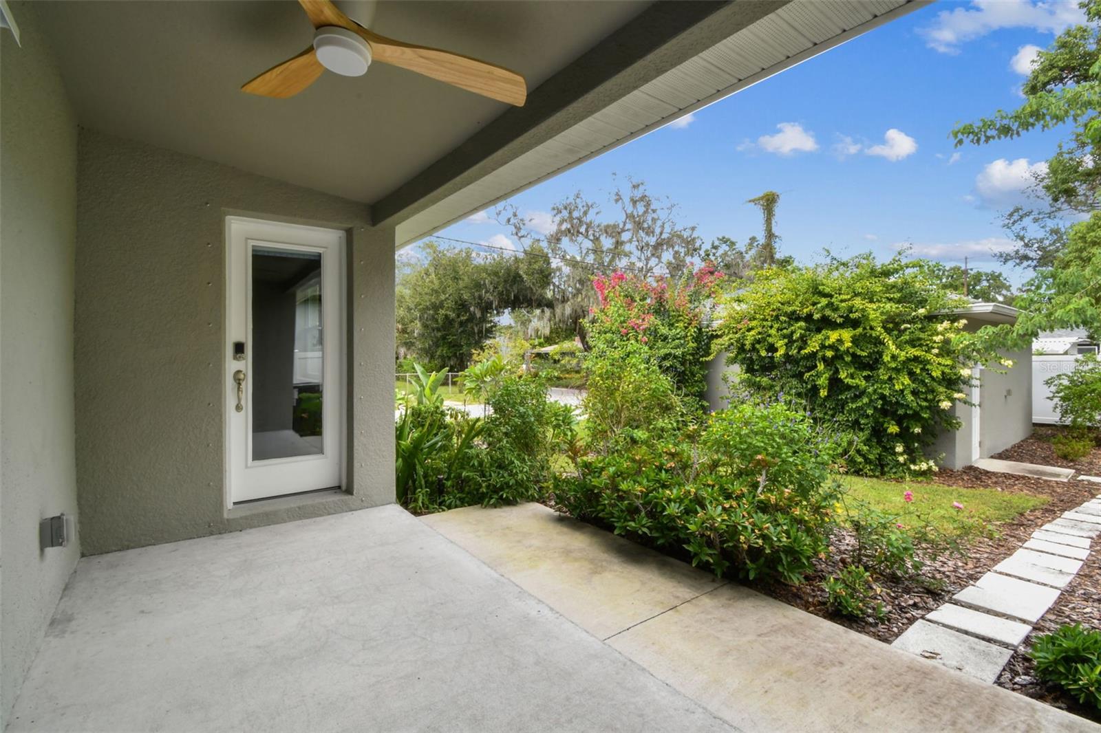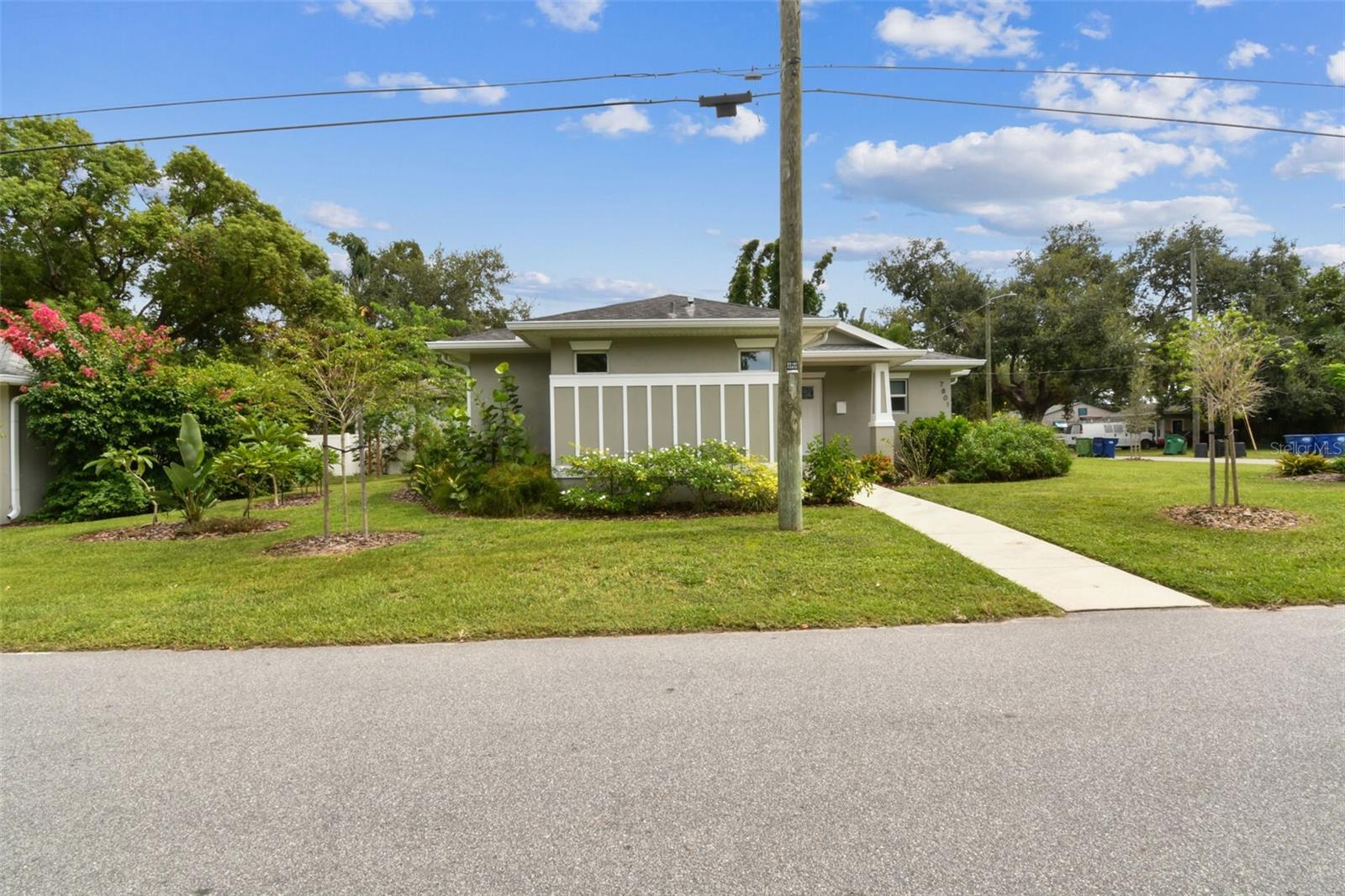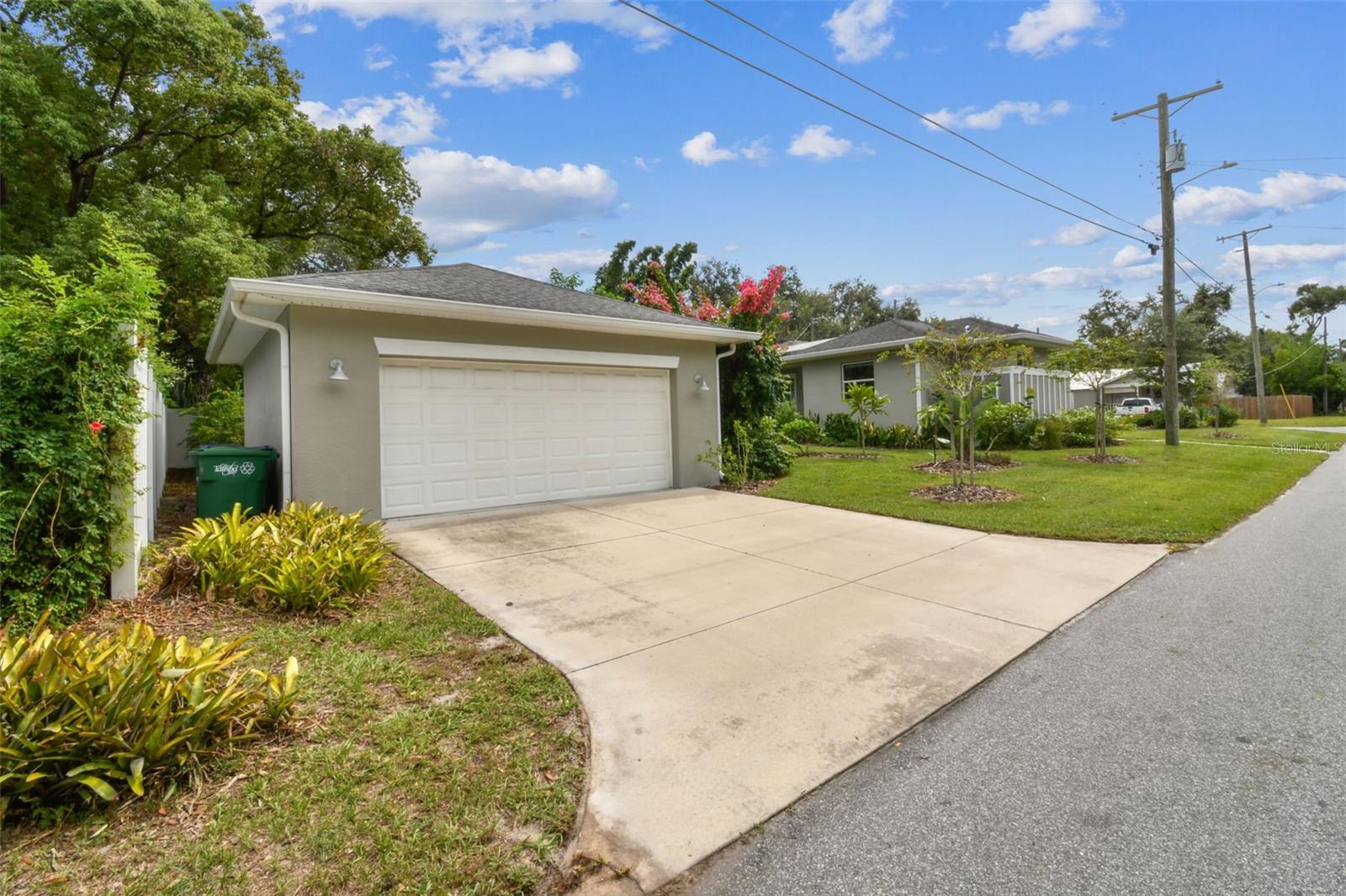 Modern Ranch-Style Home on a Landscaped Corner Lot in Historic Old Seminole Heights Welcome to this beautifully maintained, like-new ranch home nestled on a manicured corner lot in the heart of Historic Old Seminole Heights. Built in 2019, this thoughtfully designed residence offers contemporary comfort, energy efficiency, and stylish finishes throughout. Step inside to a spacious open-concept layout that seamlessly blends the kitchen, dining area, and great room—perfect for entertaining and everyday living. The large chef’s kitchen is a standout feature, boasting stone countertops, an oversized 5+ foot island, a pantry, and a Samsung induction range with air fryer and double oven. This home offers 2 bedrooms and 2 full bathrooms, including a serene primary suite with a walk-in closet, private ensuite bath with a walk-in shower, and direct access to the side yard patio. The guest bedroom features convenient ensuite access to the guest bath, which includes a tub/shower combo. Additional highlights include: Luxury vinyl flooring throughout Large interior laundry room with washer and dryer included Tesla solar power system with Tesla backup, keeping average monthly electric bills around $47 Smart home technology, including a video doorbell, security system, exterior cameras with free recording, and centralized app control for systems including A/C monitoring Detached 2-car garage with EV charger and automatic door opener Electronic blinds on most windows New variable-speed heat pump (installed in 2022) 5-zone irrigation system Low-maintenance stuccol siding and vinyl fencing Not located in a flood zone This home offers a rare blend of modern efficiency, low-maintenance living, and prime location. Just minutes from local eateries, parks, breweries, and the charm of the Seminole Heights neighborhood—don’t miss your chance to make this exceptional property yours!