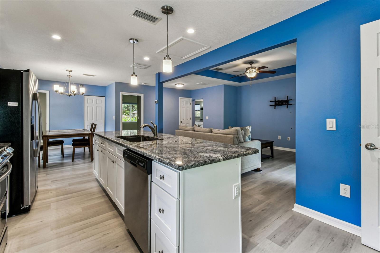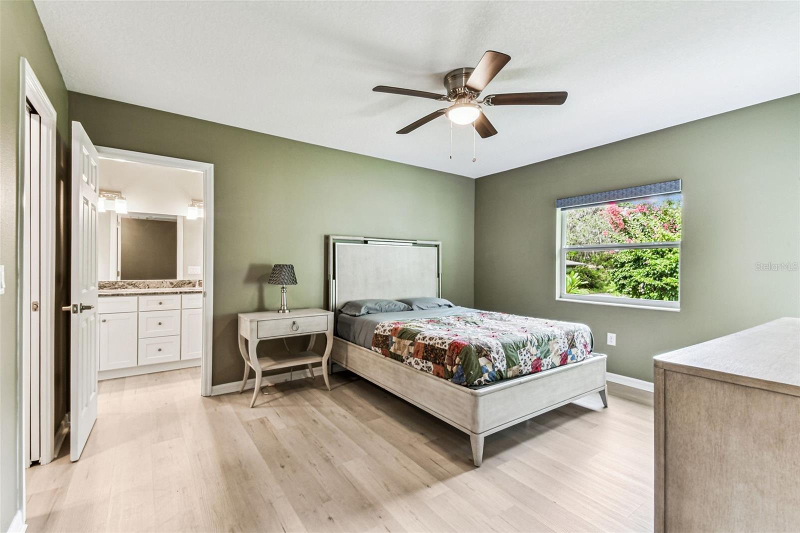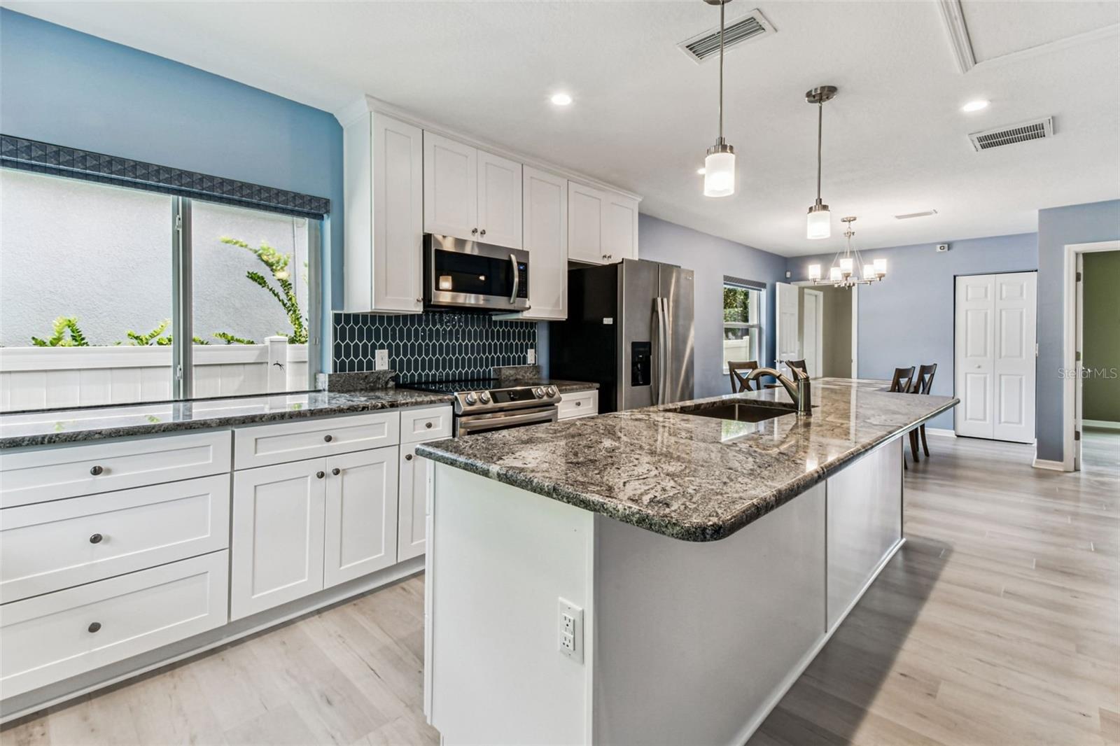 Modern Ranch-Style Home on a Landscaped Corner Lot in Historic Old Seminole Heights Welcome to this beautifully maintained, like-new ranch home nestled on a manicured corner lot in the heart of Historic Old Seminole Heights. Built in 2019, this thoughtfully designed residence offers contemporary comfort, energy efficiency, and stylish finishes throughout. Step inside to a spacious open-concept layout that seamlessly blends the kitchen, dining area, and great room—perfect for entertaining and everyday living. The large chef’s kitchen is a standout feature, boasting stone countertops, an oversized 5+ foot island, a pantry, and a Samsung induction range with air fryer and double oven. This home offers 2 bedrooms and 2 full bathrooms, including a serene primary suite with a walk-in closet, private ensuite bath with a walk-in shower, and direct access to the side yard patio. The guest bedroom features convenient ensuite access to the guest bath, which includes a tub/shower combo. Additional highlights include: Luxury vinyl flooring throughout Large interior laundry room with washer and dryer included Tesla solar power system with Tesla backup, keeping average monthly electric bills around $47 Smart home technology, including a video doorbell, security system, exterior cameras with free recording, and centralized app control for systems including A/C monitoring Detached 2-car garage with EV charger and automatic door opener Electronic blinds on most windows New variable-speed heat pump (installed in 2022) 5-zone irrigation system Low-maintenance stuccol siding and vinyl fencing Not located in a flood zone This home offers a rare blend of modern efficiency, low-maintenance living, and prime location. Just minutes from local eateries, parks, breweries, and the charm of the Seminole Heights neighborhood—don’t miss your chance to make this exceptional property yours!