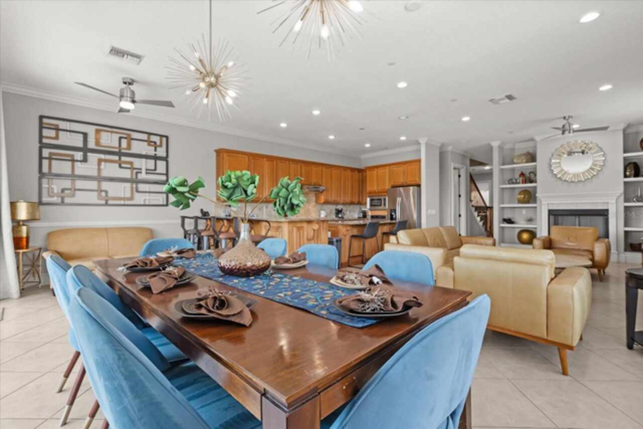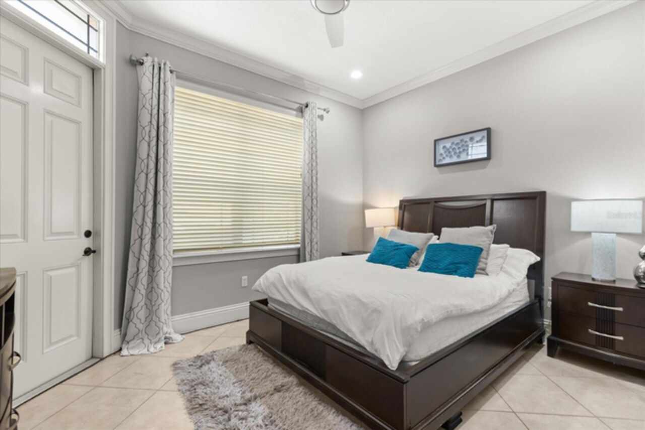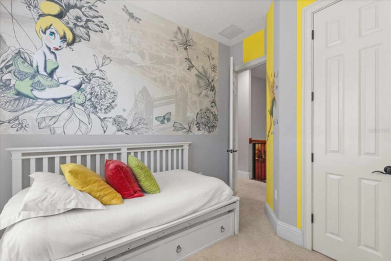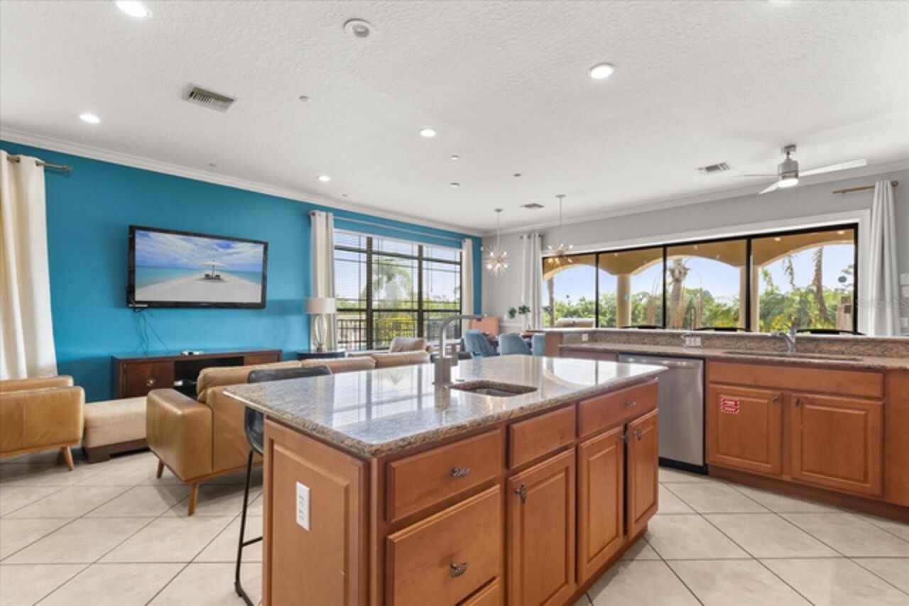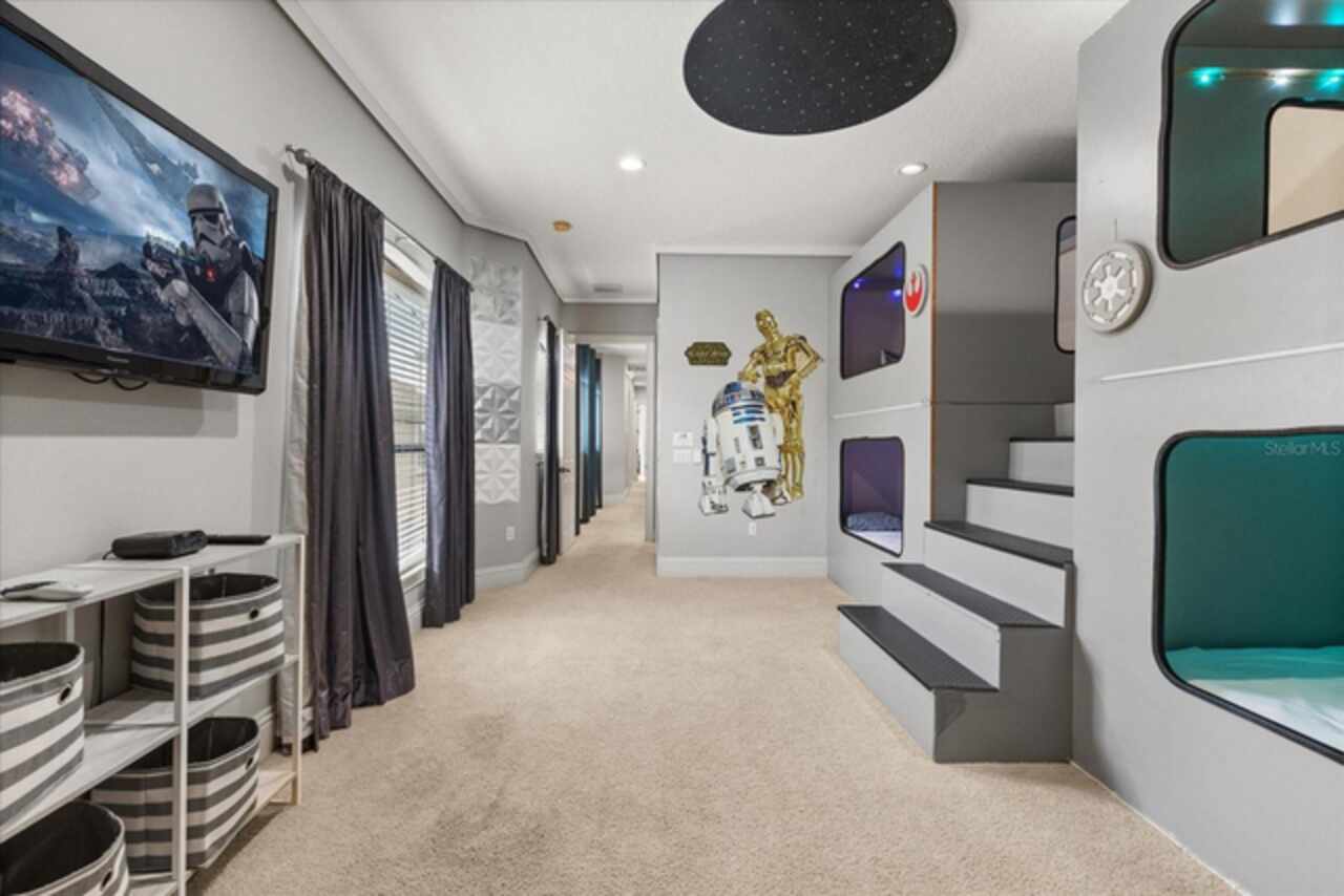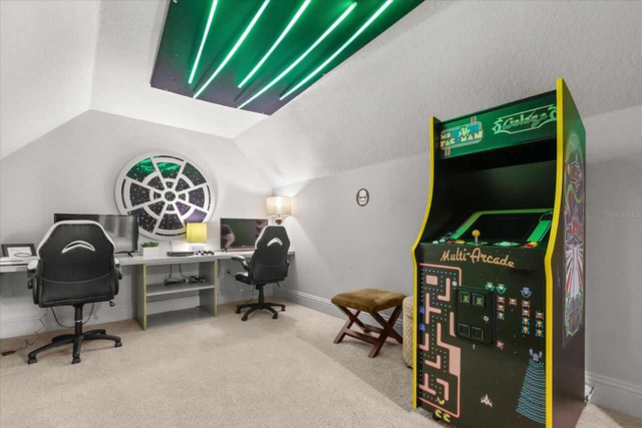 **Active Reunion Club Membership**new roof 2023** Welcome to the renowned guard-gated community of Reunion Resort, where luxury living meets breathtaking scenery. Positioned with golf course frontage of the 15th fairway of the signature Jack Nicklaus golf course, this 6 bed 4.5 bath home is the ultimate golfers retreat. As you approach the home you will be greeted by a spacious courtyard, already set up to be one of many private, relaxing areas in this home. From the courtyard there are private entrances to the mother in law suite, garage, and also a private entrance to another one of the 6 bedrooms in this home. Entering the home you will immediately notice the upgraded finishes that were included in this home to including crown molding throughout, large tile diamond laid, covering the entire common areas of the first floor of the home, custom built ins which surround a fireplace, and the open concept kitchen/living area. The kitchen features abundant cabinet space, granite countertops, and a large island featuring a prep sink. The kitchen opens up to the family room/dining room area, making entertaining a breeze. Large sliding glass doors open up to your backyard pool oasis with golf course views, complete with an outdoor grill area and large pool/Hottub, you are sure to make many happy memories here. Heading upstairs, as you enter into the large loft area, you will find it complete with a pool table, bar top area and tv, the loft area provides a comfortable area for friends & family to gather and enjoy time together. To the far front of the home you will find the bunk room for the little ones, recently renovated to include built in bunk beds, complete with led lighting, and a secret gaming room, complete with two gaming console stations, this room is sure to keep the little ones busy. To the rear of the upstairs you will find two other guest rooms, and the primary bedroom to the rear of the home. The primary bedroom is massive, featuring a large en-suite bathroom, complete with a shower, garden tub, and dual vanities. The primary bedroom also features a private balcony, giving you a birds eye view of the pool area and golf course. Reunion Resort is a top choice for visitors of all ages, Featuring 12 Pools In The Community, Including a multimillion dollar water park, 3 championship golf courses, 5 restaurants, tennis/pickleball courts, putt putt golf, and many more amenities, making Reunion truly a city within gates. This home is being sold fully furnished, and is turnkey, with so much more to love, that you will have to see in person to appreciate. This exceptional home combines luxury, comfort, and breathtaking views in one of Orlando’s most sought-after communities, it’s truly a private retreat in the heart of Reunion Resort. It is now your turn to call Reunion Resort your new home, or home away from home, welcome home.