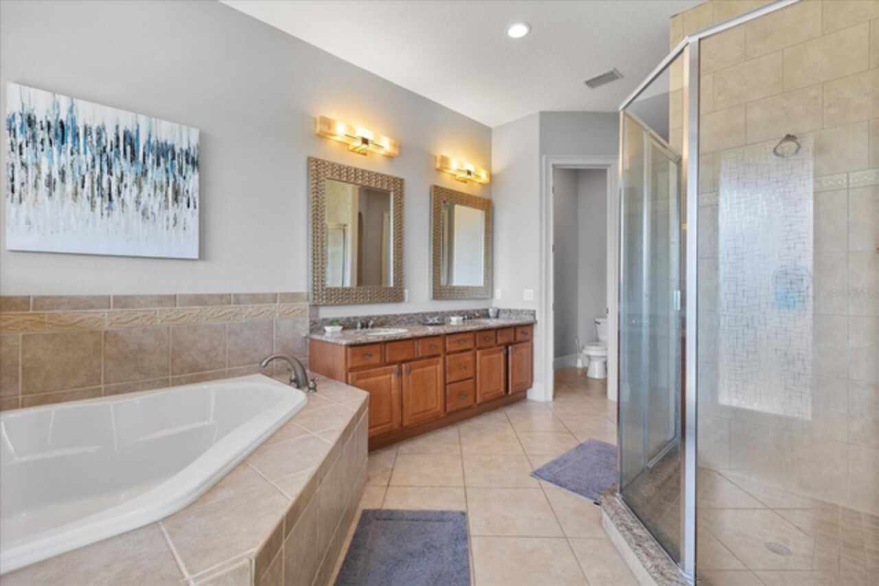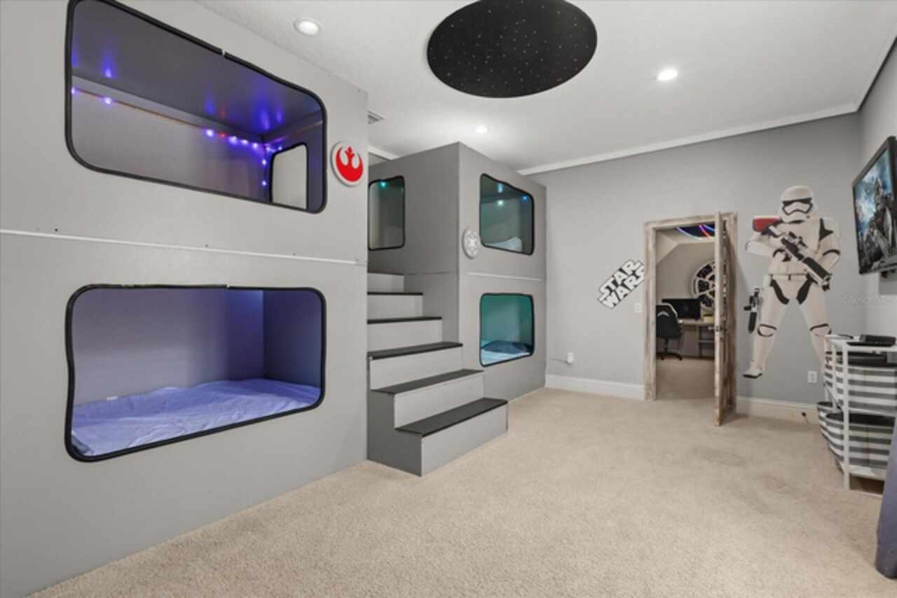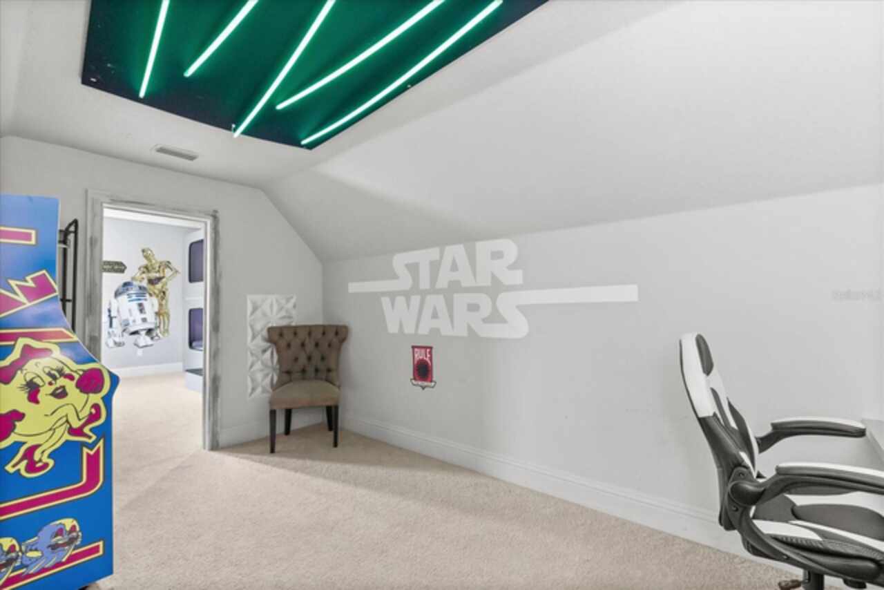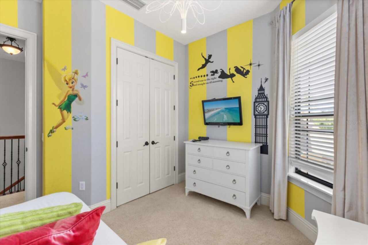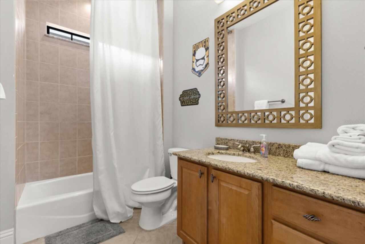 **Active Reunion Club Membership**new roof 2023** Welcome to the renowned guard-gated community of Reunion Resort, where luxury living meets breathtaking scenery. Positioned with golf course frontage of the 15th fairway of the signature Jack Nicklaus golf course, this 6 bed 4.5 bath home is the ultimate golfers retreat. As you approach the home you will be greeted by a spacious courtyard, already set up to be one of many private, relaxing areas in this home. From the courtyard there are private entrances to the mother in law suite, garage, and also a private entrance to another one of the 6 bedrooms in this home. Entering the home you will immediately notice the upgraded finishes that were included in this home to including crown molding throughout, large tile diamond laid, covering the entire common areas of the first floor of the home, custom built ins which surround a fireplace, and the open concept kitchen/living area. The kitchen features abundant cabinet space, granite countertops, and a large island featuring a prep sink. The kitchen opens up to the family room/dining room area, making entertaining a breeze. Large sliding glass doors open up to your backyard pool oasis with golf course views, complete with an outdoor grill area and large pool/Hottub, you are sure to make many happy memories here. Heading upstairs, as you enter into the large loft area, you will find it complete with a pool table, bar top area and tv, the loft area provides a comfortable area for friends & family to gather and enjoy time together. To the far front of the home you will find the bunk room for the little ones, recently renovated to include built in bunk beds, complete with led lighting, and a secret gaming room, complete with two gaming console stations, this room is sure to keep the little ones busy. To the rear of the upstairs you will find two other guest rooms, and the primary bedroom to the rear of the home. The primary bedroom is massive, featuring a large en-suite bathroom, complete with a shower, garden tub, and dual vanities. The primary bedroom also features a private balcony, giving you a birds eye view of the pool area and golf course. Reunion Resort is a top choice for visitors of all ages, Featuring 12 Pools In The Community, Including a multimillion dollar water park, 3 championship golf courses, 5 restaurants, tennis/pickleball courts, putt putt golf, and many more amenities, making Reunion truly a city within gates. This home is being sold fully furnished, and is turnkey, with so much more to love, that you will have to see in person to appreciate. This exceptional home combines luxury, comfort, and breathtaking views in one of Orlando’s most sought-after communities, it’s truly a private retreat in the heart of Reunion Resort. It is now your turn to call Reunion Resort your new home, or home away from home, welcome home.