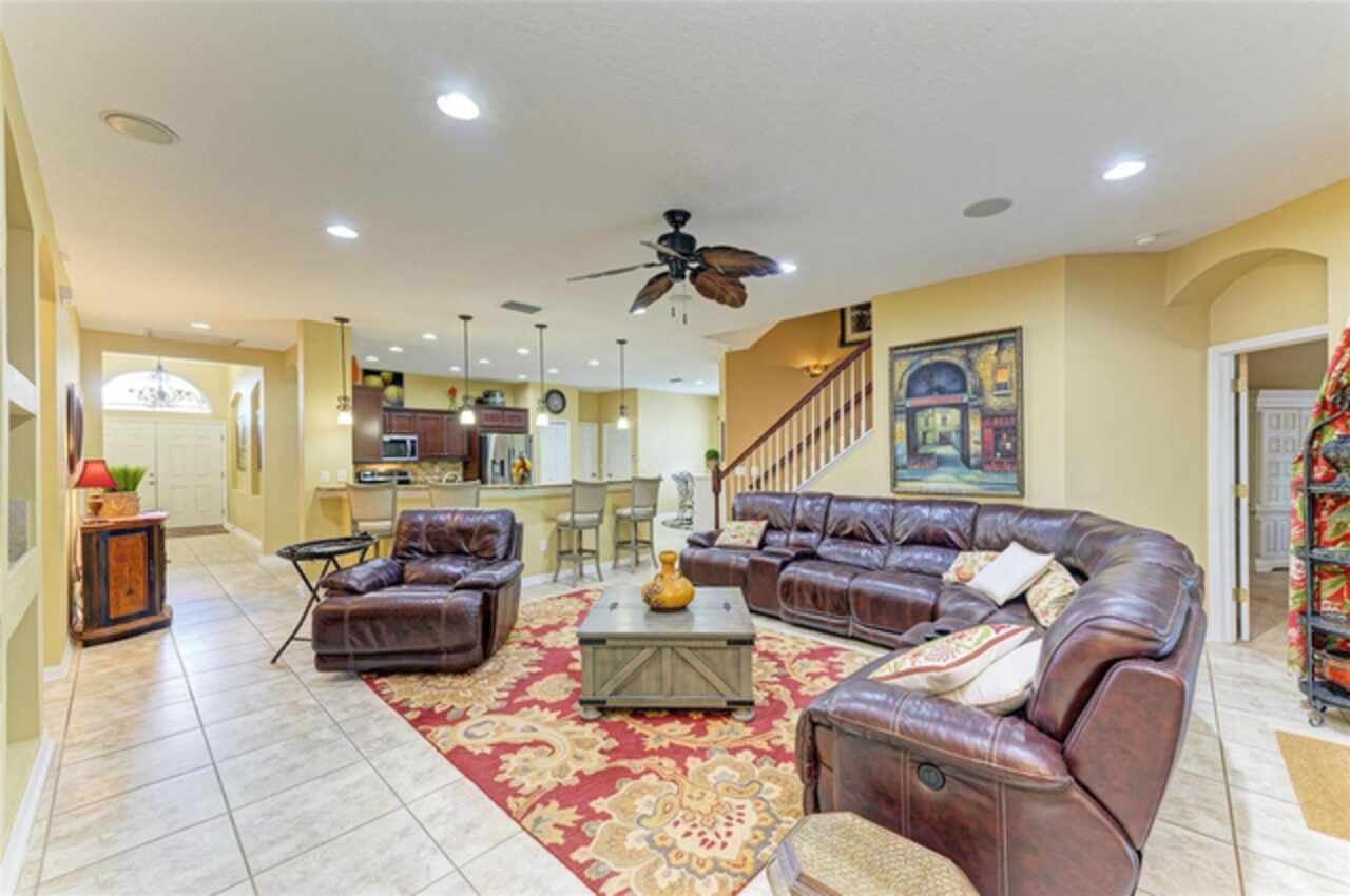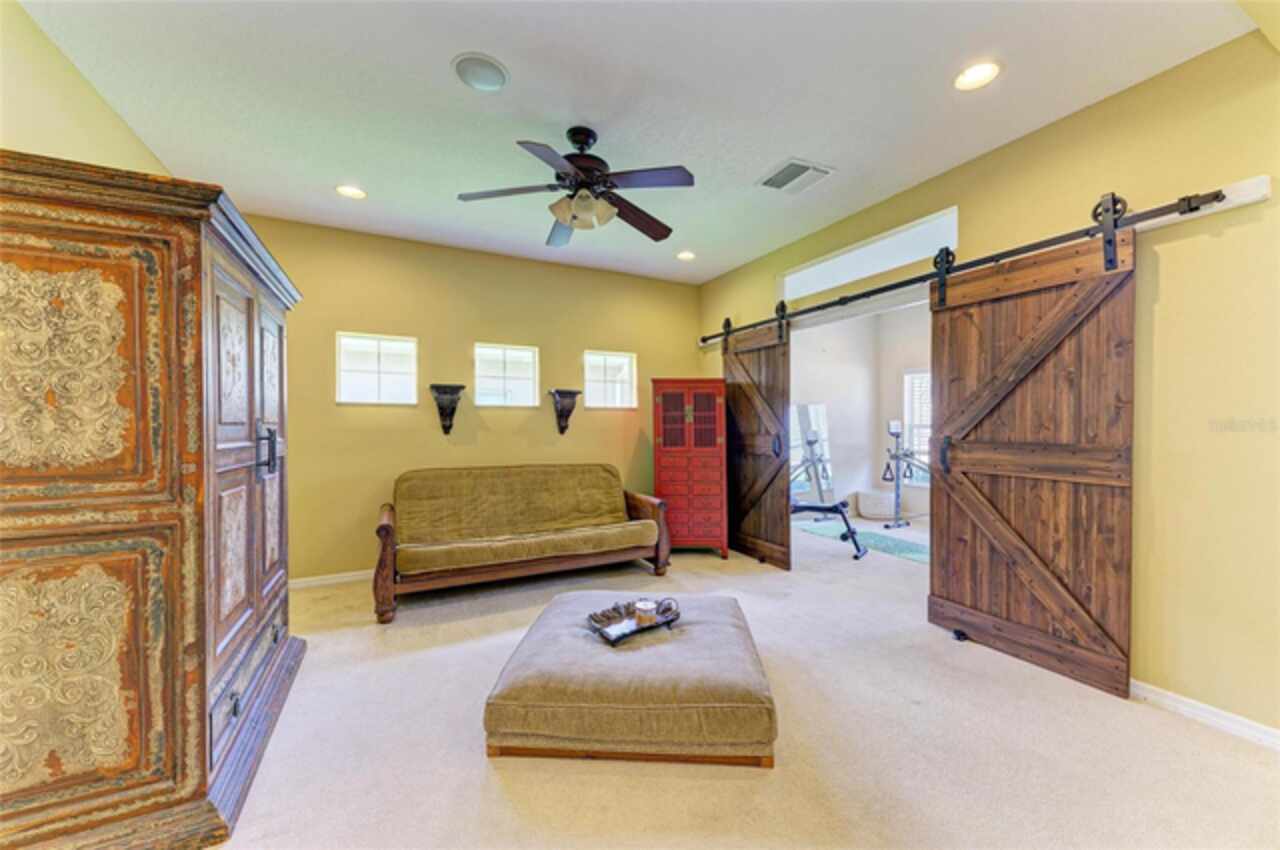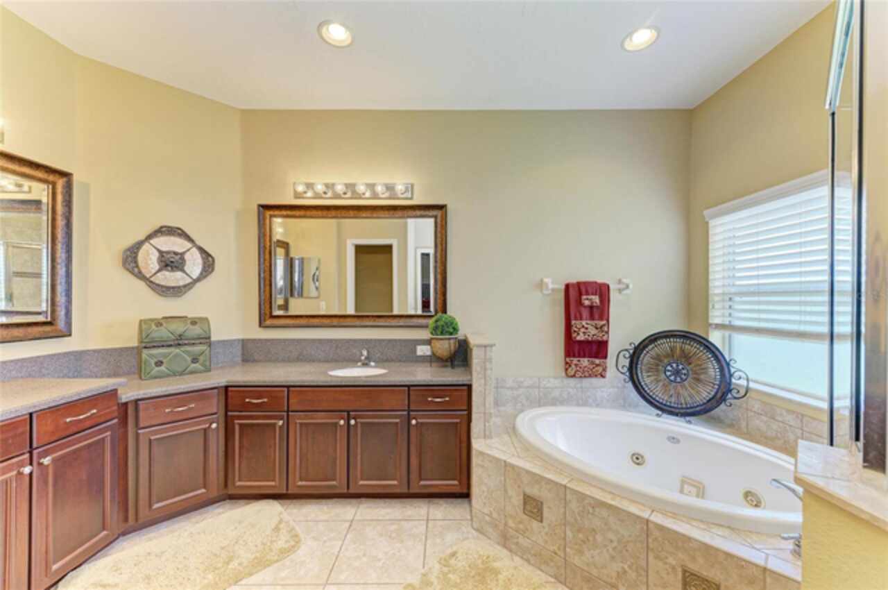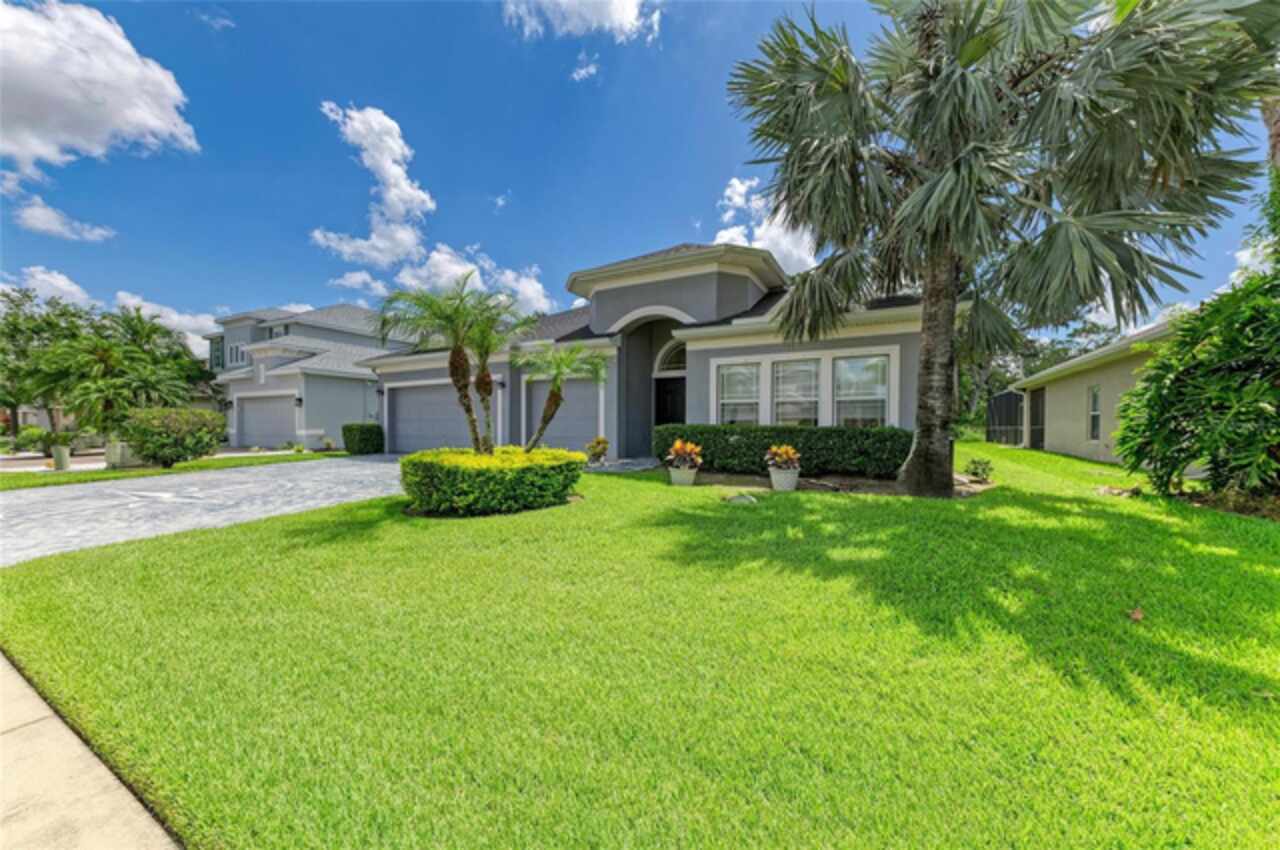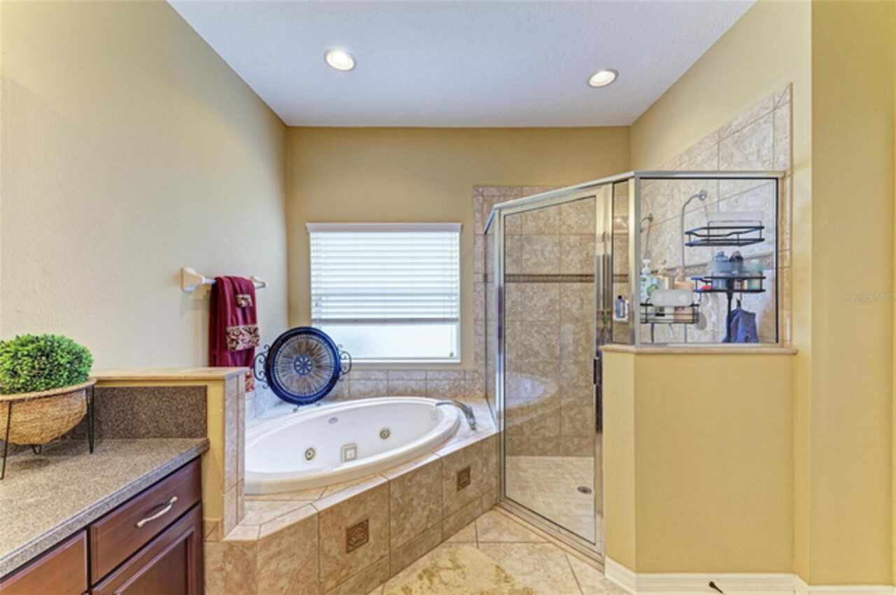 Welcome to this stunning 4-bedroom, 3-bathroom home, featuring a den with sliding barn doors and a spacious bonus room, all nestled on a private preserve lot. Enjoy outdoor living at its finest with an extended lanai that includes a portable hot tub, gas firepit table, and a fully equipped outdoor kitchen with grill, refrigerator, sink, and a large bar—perfect for entertaining. Inside, the gourmet kitchen boasts dark cabinetry with crown molding and valance, undercabinet lighting, granite countertops, center island, stainless steel appliances, and a reverse osmosis system. A large breakfast bar opens to the spacious great room, which features custom built-in shelving and TV unit and overlooks the lanai. The primary suite, located on the main floor, offers two closets and a luxurious bath with granite dual vanities, walk-in shower, and a jetted soaking tub. Bedrooms feature cozy carpeting, while tile flooring runs throughout the main living areas. Updates include new roof 2023, HVAC 2019, a buried 120-gallon propane tank connected to firepit 2019, water heater 2020, water purification system, exterior painting to include etched driveway. Community amenities include a clubhouse, pool, fitness center, playground, and sports court. HOA includes basic cable and internet. Situated in a highly desirable location with easy access to St. Pete, Tampa, Downtown Sarasota, and just minutes from Parrish Community Park, Ellenton Outlet Mall, UTC shopping, and the new Publix Plaza featuring Foxtail Coffee, restaurants, and services. Future developments in the area include a 200-bed trauma hospital, Home Depot, Chick-fil-A, Slim Chickens, and access to an exciting Lagoon community.