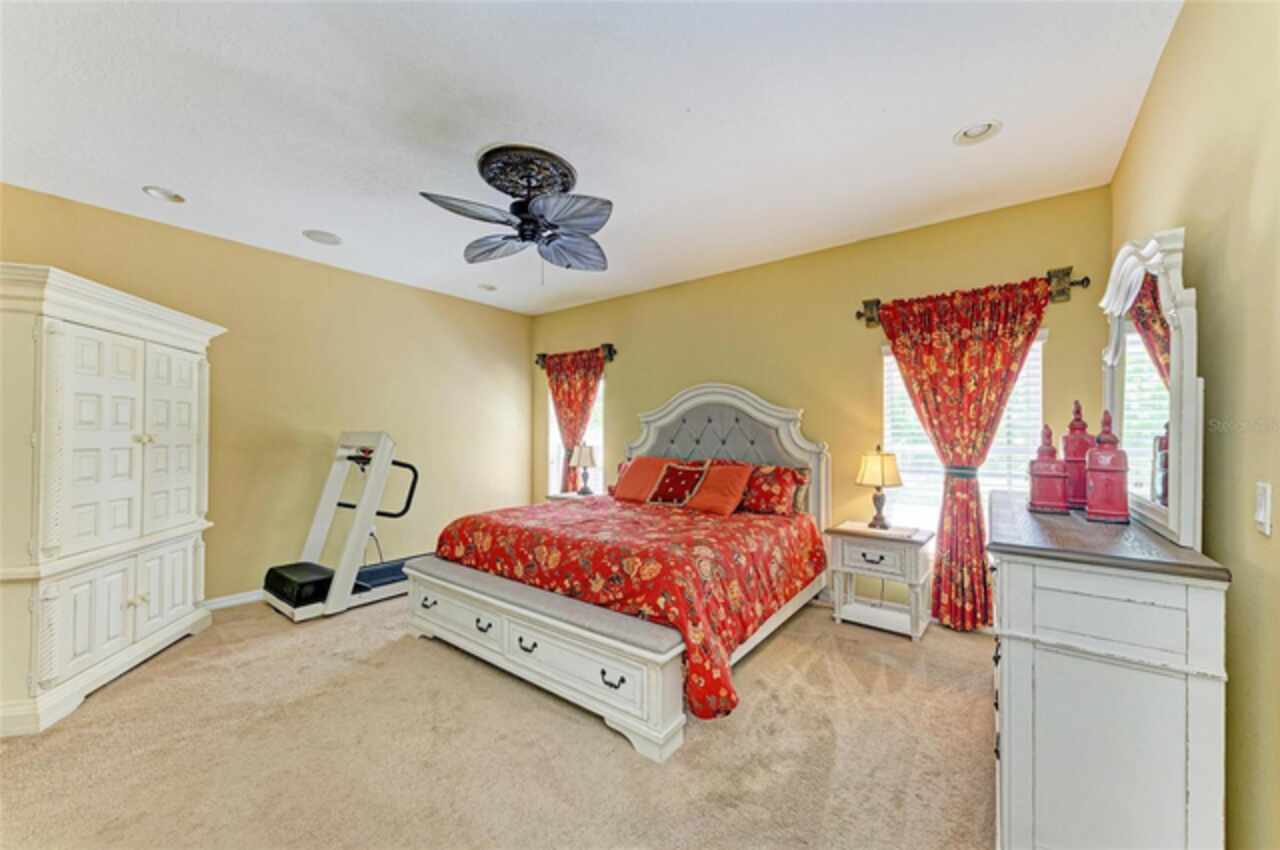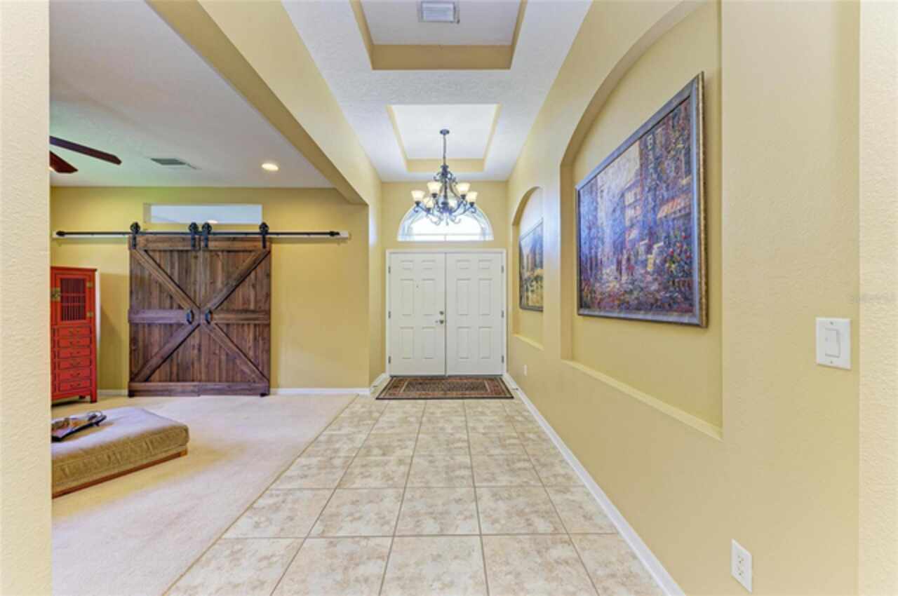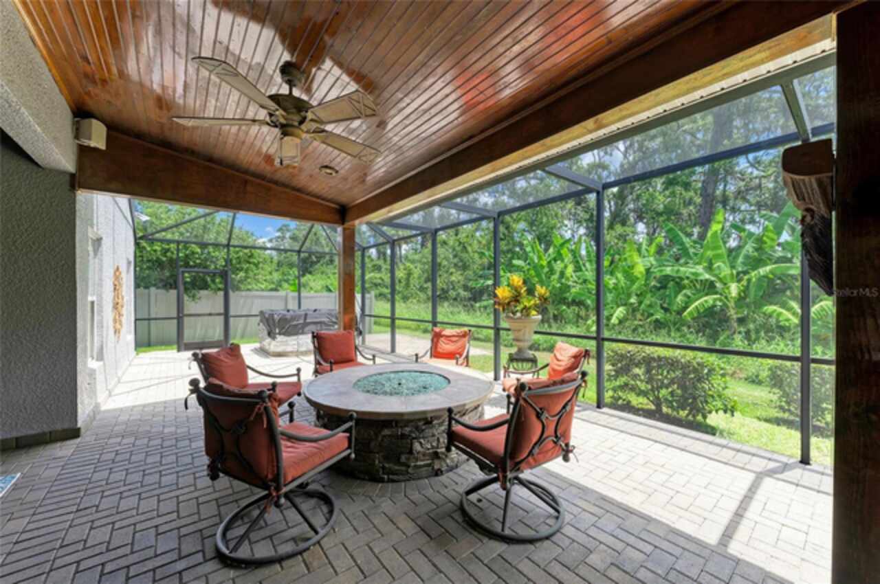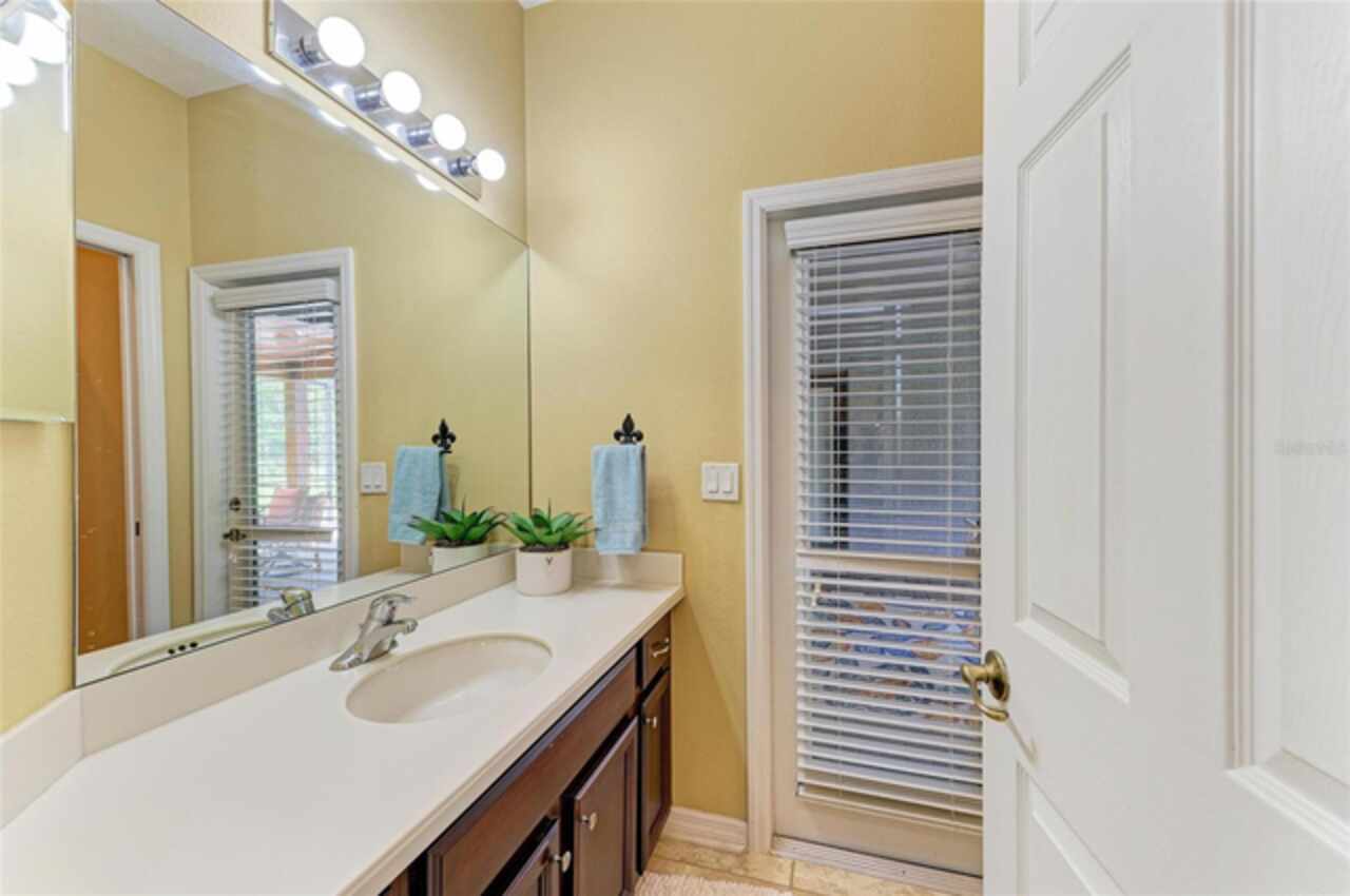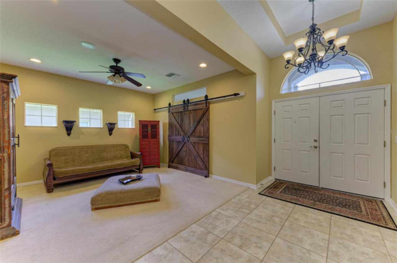 Welcome to this stunning 4-bedroom, 3-bathroom home, featuring a den with sliding barn doors and a spacious bonus room, all nestled on a private preserve lot. Enjoy outdoor living at its finest with an extended lanai that includes a portable hot tub, gas firepit table, and a fully equipped outdoor kitchen with grill, refrigerator, sink, and a large bar—perfect for entertaining. Inside, the gourmet kitchen boasts dark cabinetry with crown molding and valance, undercabinet lighting, granite countertops, center island, stainless steel appliances, and a reverse osmosis system. A large breakfast bar opens to the spacious great room, which features custom built-in shelving and TV unit and overlooks the lanai. The primary suite, located on the main floor, offers two closets and a luxurious bath with granite dual vanities, walk-in shower, and a jetted soaking tub. Bedrooms feature cozy carpeting, while tile flooring runs throughout the main living areas. Updates include new roof 2023, HVAC 2019, a buried 120-gallon propane tank connected to firepit 2019, water heater 2020, water purification system, exterior painting to include etched driveway. Community amenities include a clubhouse, pool, fitness center, playground, and sports court. HOA includes basic cable and internet. Situated in a highly desirable location with easy access to St. Pete, Tampa, Downtown Sarasota, and just minutes from Parrish Community Park, Ellenton Outlet Mall, UTC shopping, and the new Publix Plaza featuring Foxtail Coffee, restaurants, and services. Future developments in the area include a 200-bed trauma hospital, Home Depot, Chick-fil-A, Slim Chickens, and access to an exciting Lagoon community.