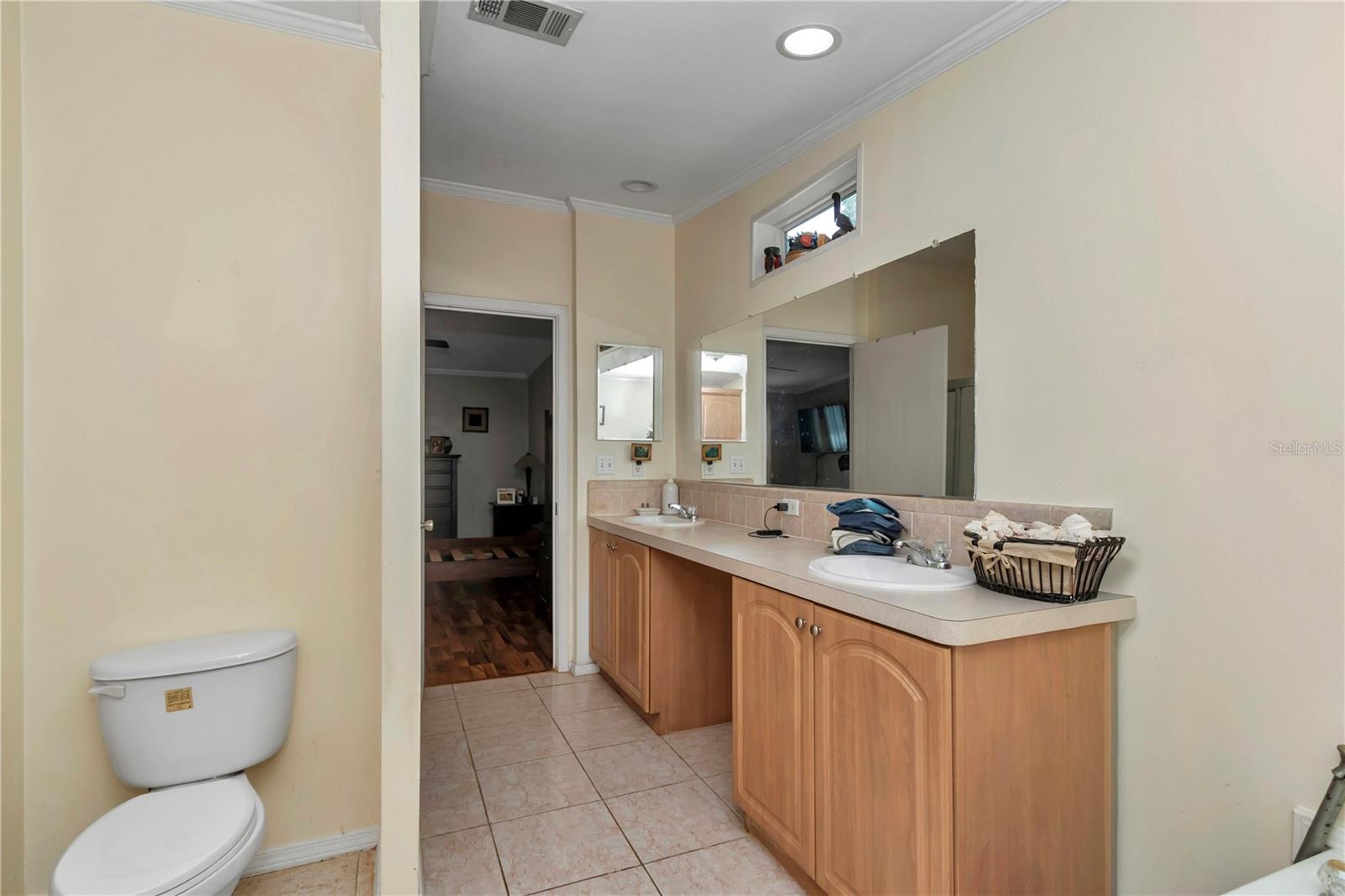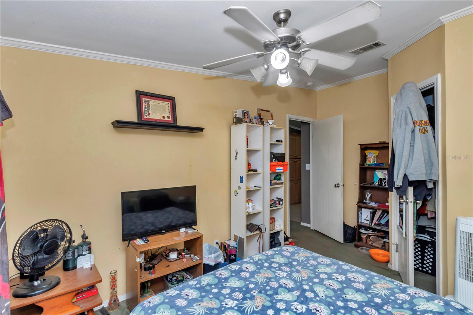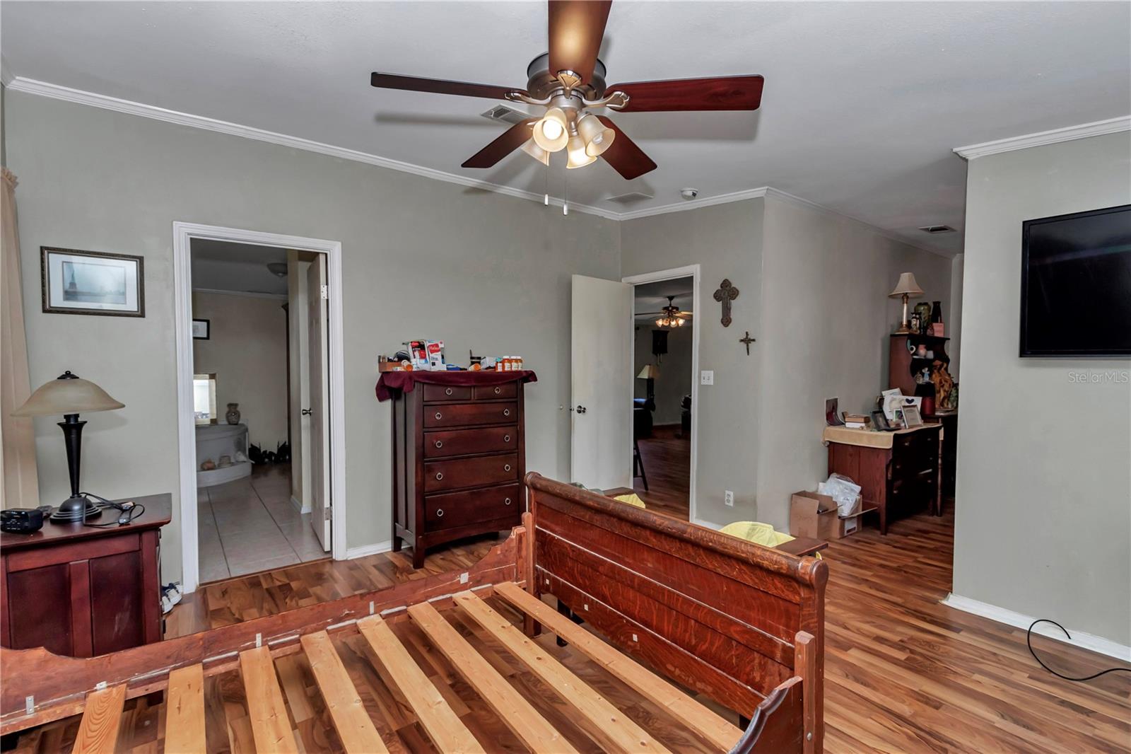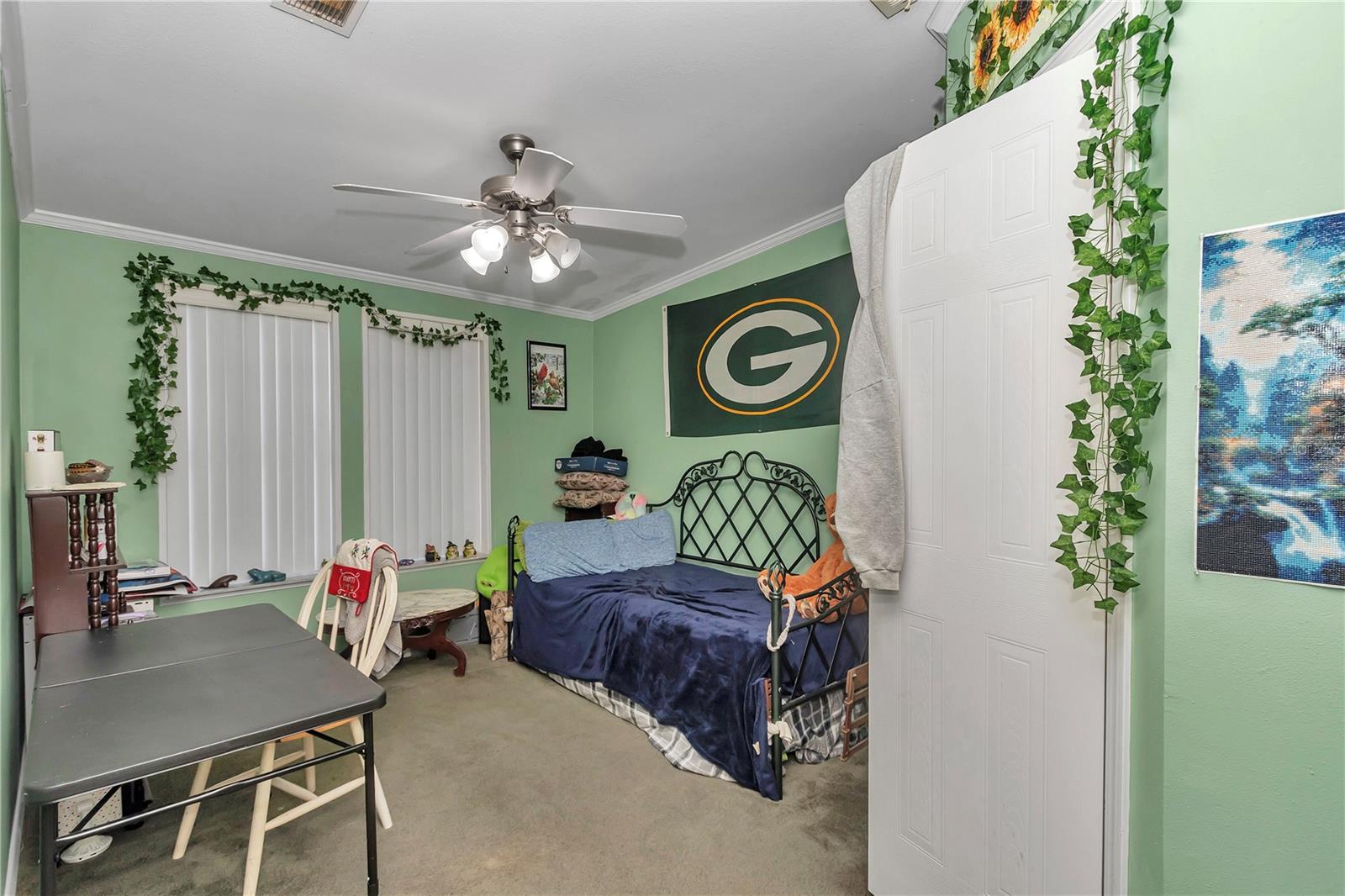 Built-in Features, Ceiling Fans(s), Crown Molding, Eat-in Kitchen, High Ceilings, Living Room/Dining Room Combo, Open Floorplan, Primary Bedroom Main Floor, Thermostat, Walk-In Closet(s)