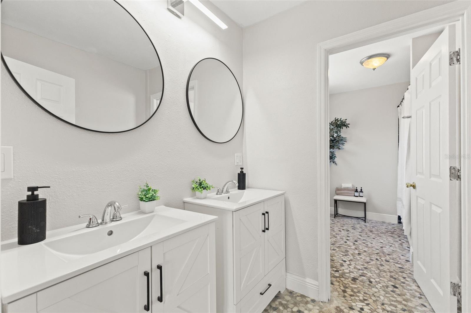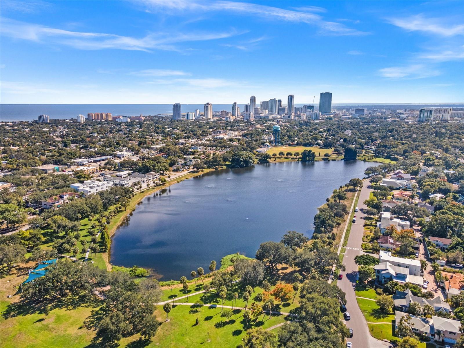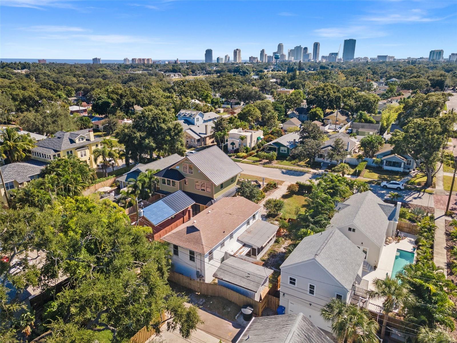 Historical Charm meets Modern Living in the highly coveted neighborhood of Crescent Heights! This fully remodeled 3 bedroom 2.5 bathroom sits in a NON-FLOOD zone on a spacious lot (50x127) that is nestled back away from the road for privacy. You are welcomed into this home with brand new waterproof luxury vinyl plank flooring. Get cozy in the large open living space featuring tons of natural lighting, storage, and a half bathroom for your guests. The stunning kitchen features Quartz countertops, an island with a breakfast bar, a separate coffee bar with a wine fridge and LED lighting, a built in pantry, and a designated dining space. The majority of the kitchen appliances are BRAND NEW including a GAS stove! Upstairs you will find all 3 bedrooms and 2 full bathrooms, split between the front and back of the home for ultimate privacy. The expansive primary suite features french doors leading out to a private porch, an en-suite bathroom with double vanities, and plantation shutters. Both guest bedrooms are of ample sizing and the guest bathroom has a shower and tub combo. Major recent upgrades in this home include: All new plumbing, new ductwork and insulation, and added Hurricane Straps, which greatly decreases your homeowners insurance! The exterior of this amazing property includes a spacious screened-in porch, an attached storage room, and an oversized detached shed with power, a brand new private shallow water well to feed the exterior hose, and the entire property is fully fenced! Crescent Lake Park is located just 2 blocks away and features a beautiful walking trail around the lake, a new playground, tennis courts, and a dog park! This highly desirable location is just minutes from Downtown St Pete, Trader Joe's, Fresh Market, Trip’s Diner, and tons of coffee shops and restaurants. This is a truly an exceptional home in an unbeatable location!
