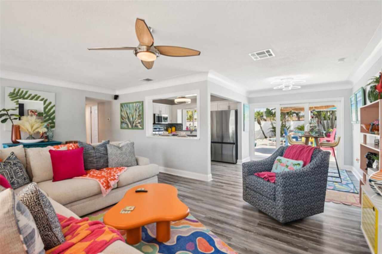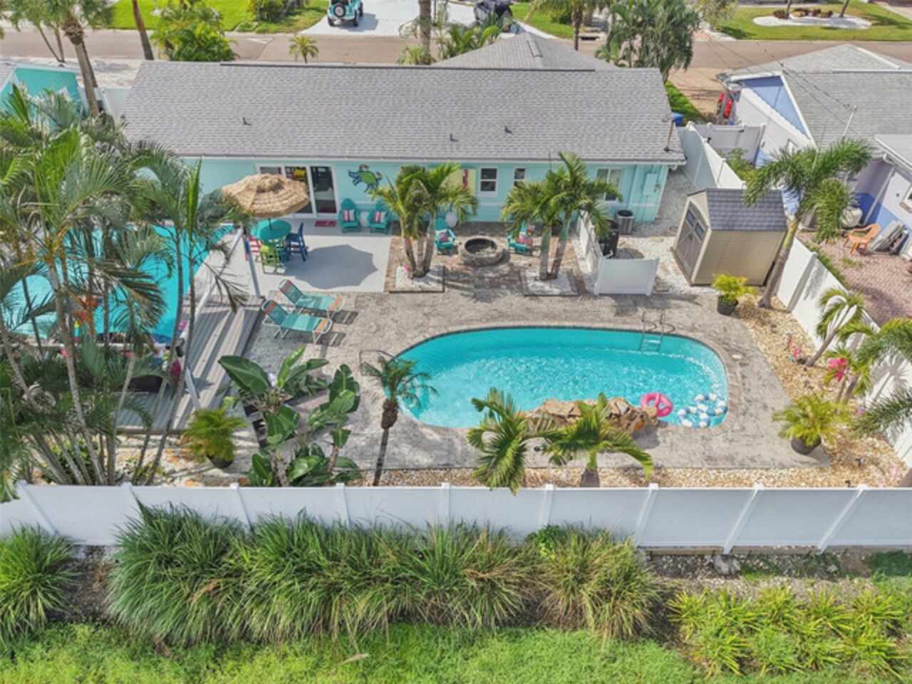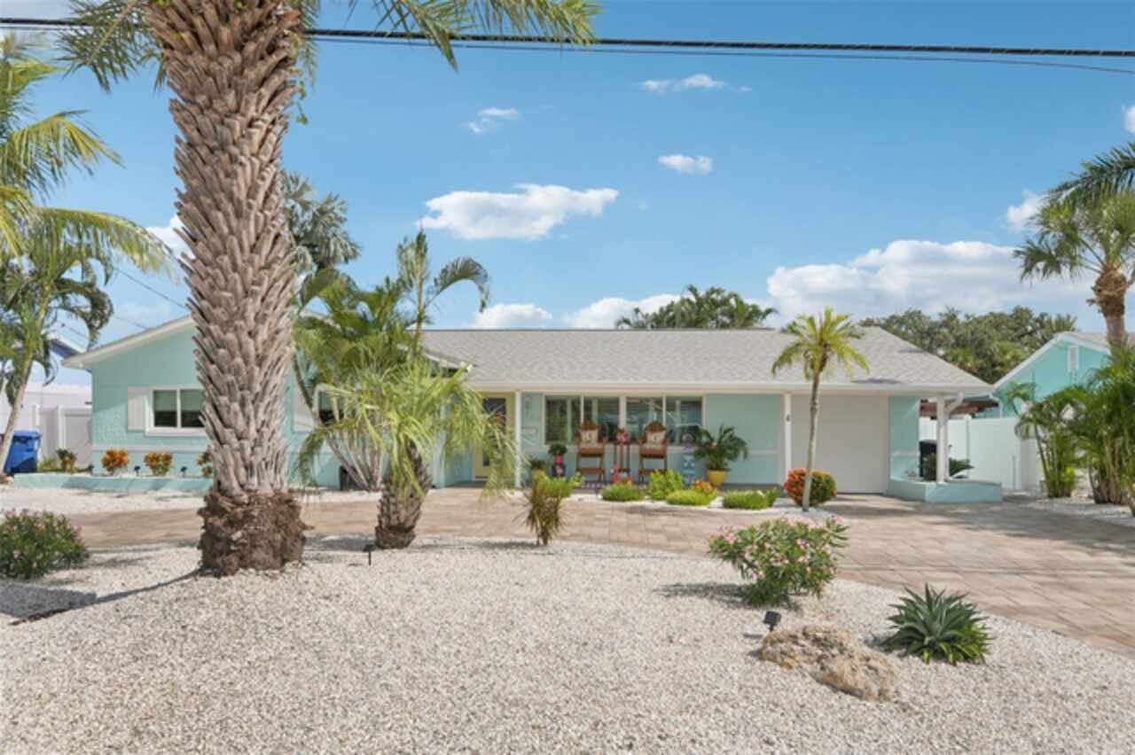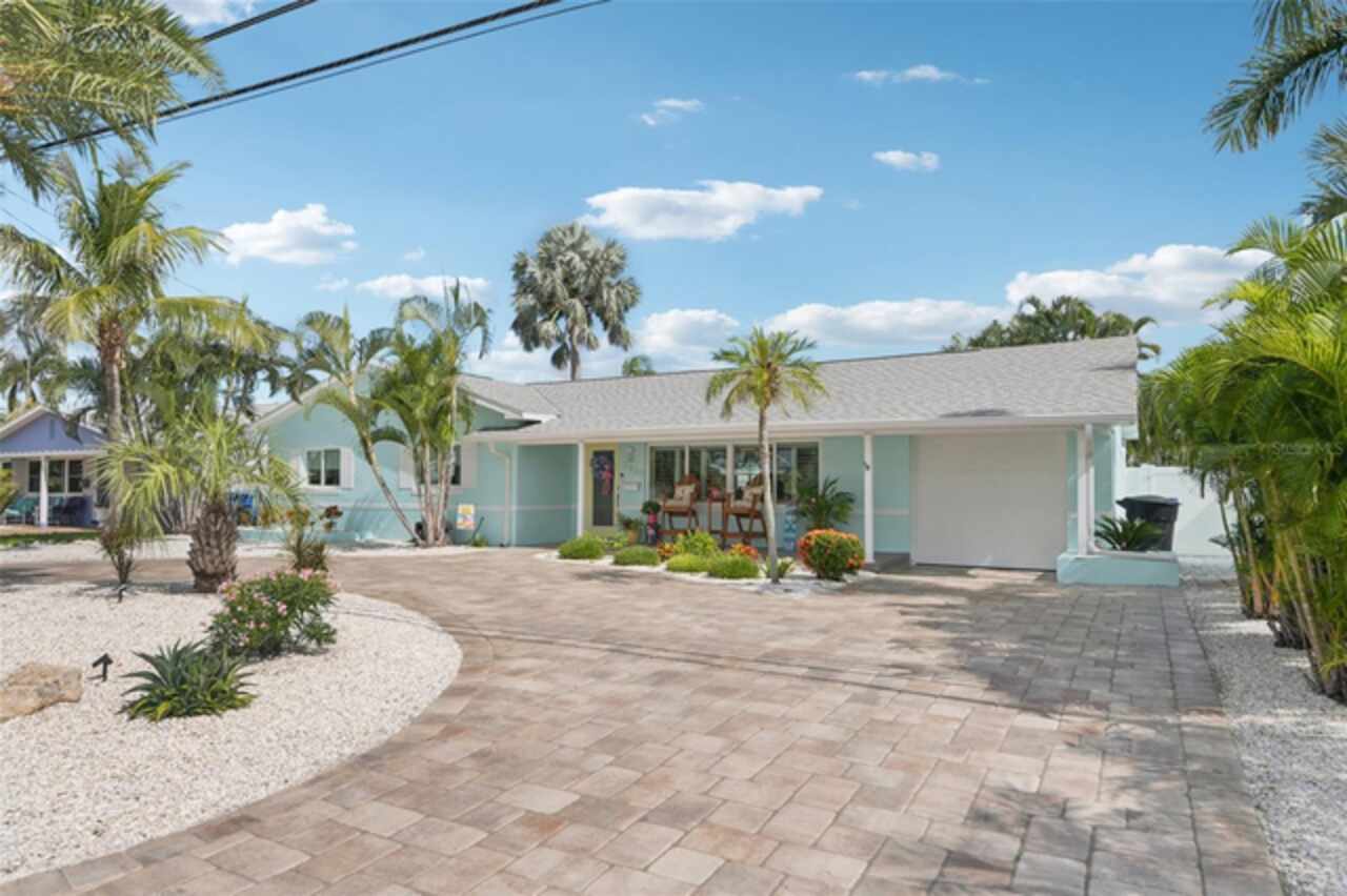 Motivated and ready to sell this beautifully renovated 3BR/2BA pool home in the coveted Causeway Isles— available and move-in ready! This coastal retreat has undergone a complete transformation with recent improvements, making it a truly turn-key property. Major updates include brand-new hurricane impact windows, doors, and a 3-panel slider, a new roof with hurricane straps, soffits, and enhanced drainage. The exterior has just been freshly painted, and the paver driveway, insulated garage door, composite front porch, and back patio add lasting curb appeal. Step inside to a light-filled open layout with luxury vinyl plank flooring, new drywall, paint, baseboards, hardware, and modern fixtures throughout. The kitchen showcases granite countertops, new cabinets, and Samsung stainless steel appliances, while the bathrooms feature stylish new vanities, sinks, faucets, and contemporary finishes. Even the garage boasts epoxy waterproof flooring for durability. The backyard is a private oasis designed for entertaining—complete with a resurfaced saltwater pool featuring a heater and waterfall, an outdoor TV on the pool deck, lush palm trees framed by a vinyl privacy fence, and a fire pit for evening gatherings. The landscaping has been thoughtfully zero-scaped with shells for a low-maintenance, tropical vibe. Additional peace-of-mind upgrades include a new pool motor and filter, a new hot water heater, and reclaimed water piping for efficiency. Perfectly located just 3 miles from the shops, dining, and nightlife of John’s Pass, and only minutes from the beaches and downtown St. Pete, this property blends style, comfort, and durability in one of the area’s most desirable waterfront communities. Homes this updated and meticulously cared for in Causeway Isles rarely last—don’t miss your chance to own a true Florida oasis. Make it yours today!