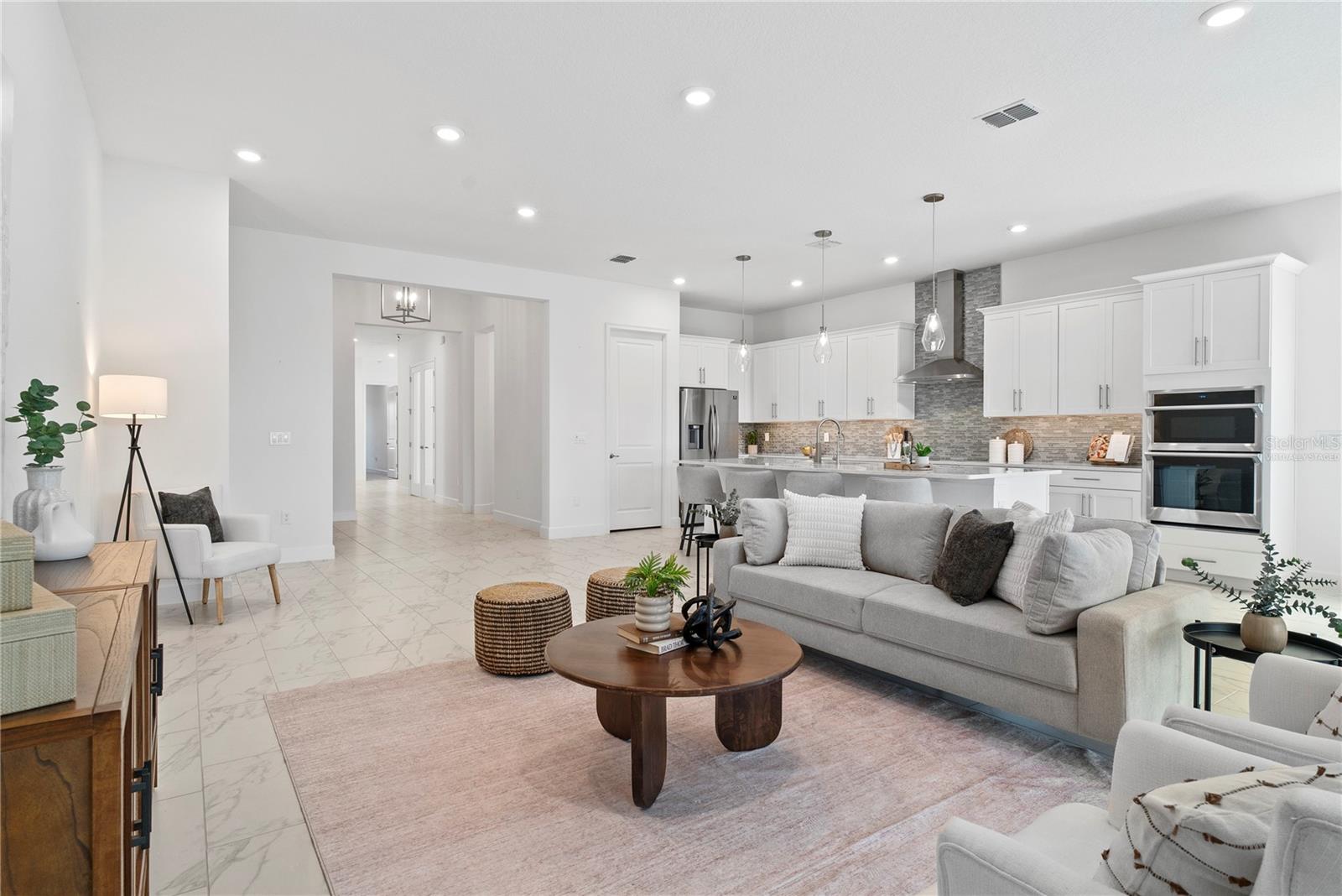 One or more photo(s) has been virtually staged. Modern Smart Home in Winter Garden – 5 Beds, 4 Baths, Lake Views Built in 2020, this modern, tech-forward one-story home features 5 bedrooms, 4 bathrooms, including a bedroom with a private ensuite bathroom, perfect for guests or multi-generational living. The open-concept layout includes a bright, chef-inspired kitchen with sleek finishes and spacious living areas ideal for entertaining and content creation. Enjoy smart home automation, energy-efficient Tesla solar panels, a Tesla charging station, electric blinds, and a water filtration system. The backyard offers lake views, no rear neighbors, and a patio with hookups for an outdoor kitchen—perfect for hosting friends or TikTok-worthy gatherings. Located in Horizon West/Winter Garden, close to top-rated schools, trendy shopping, dining hotspots, and easy highway access, this home combines modern design, sustainability, and lifestyle convenience—perfect for eco-conscious, connected, and social-first living.
