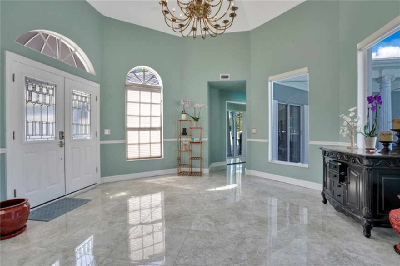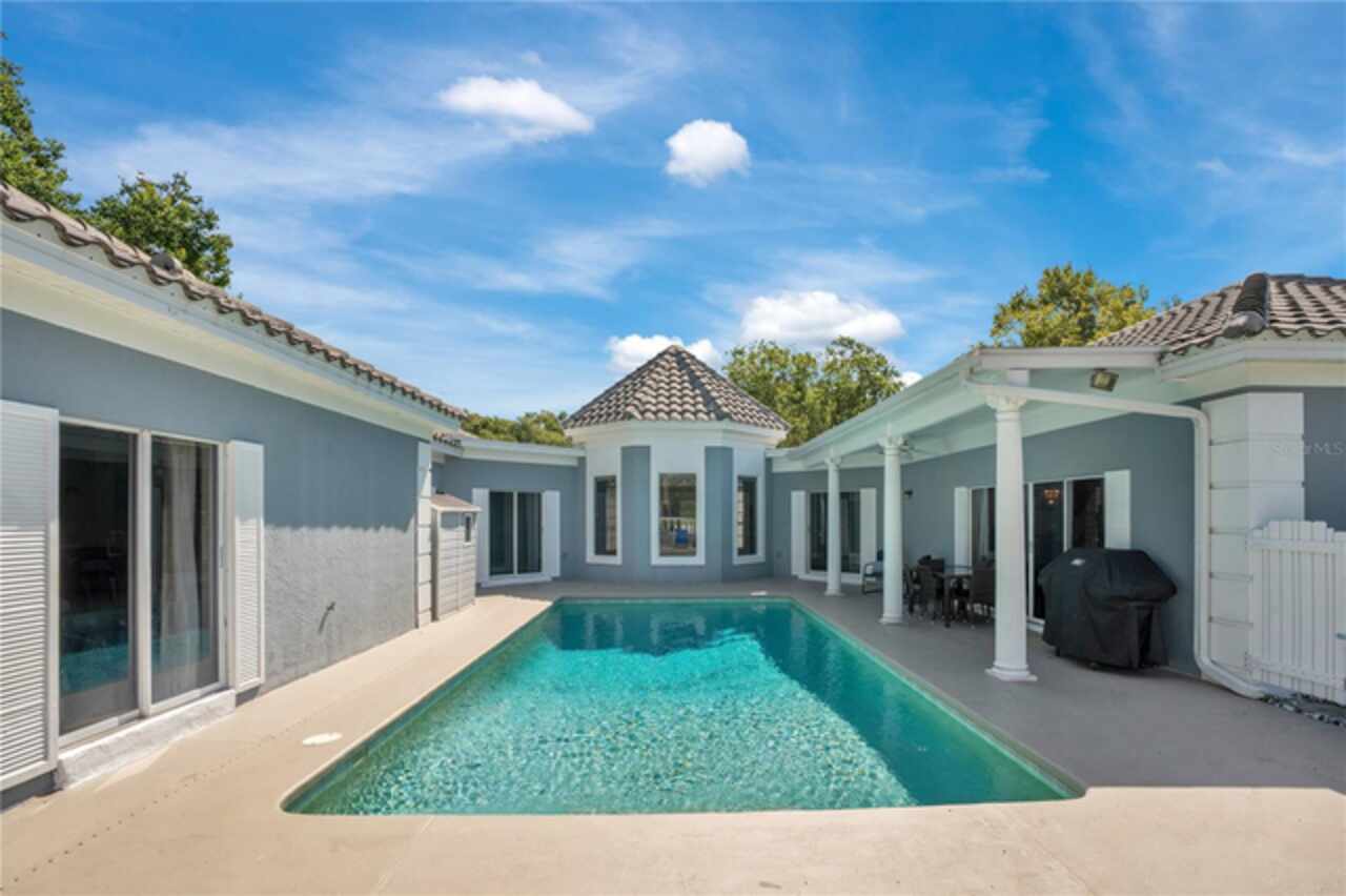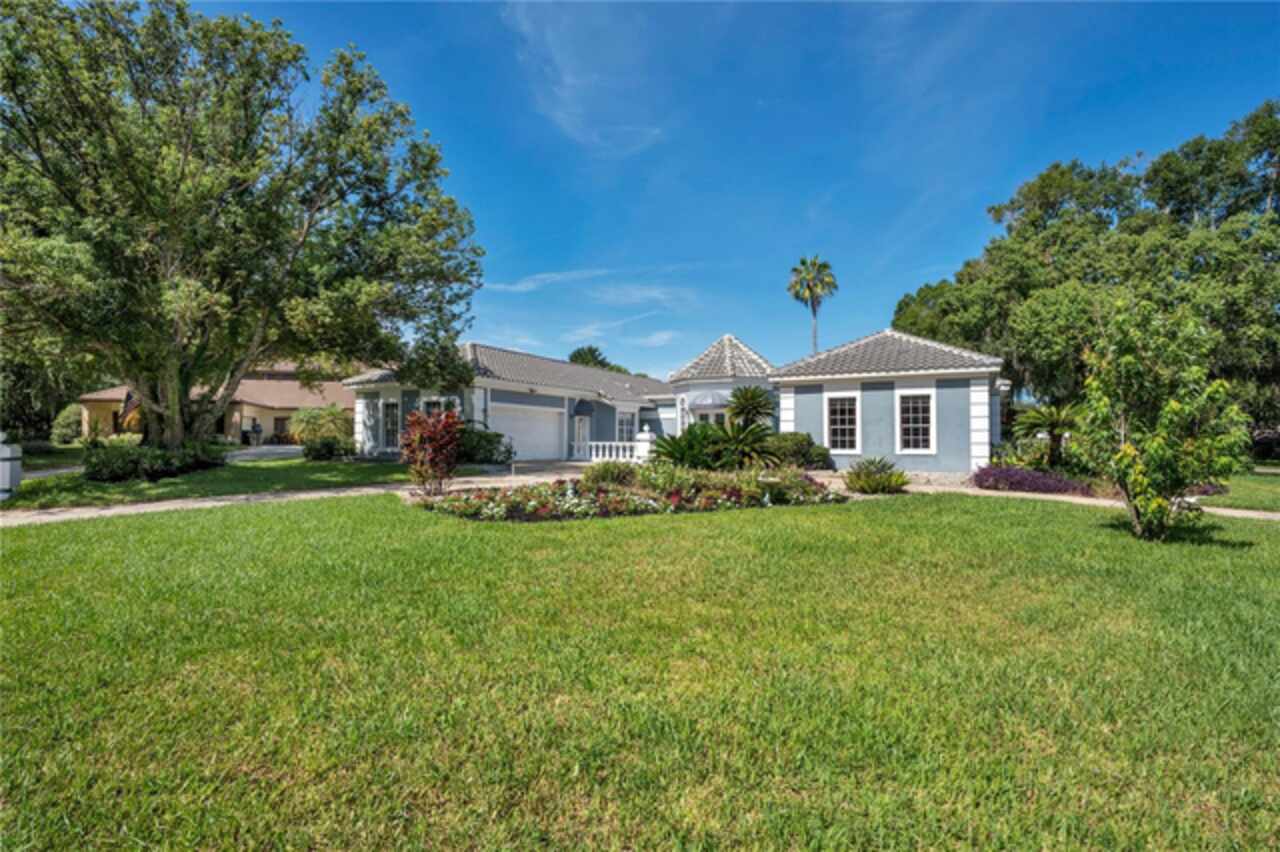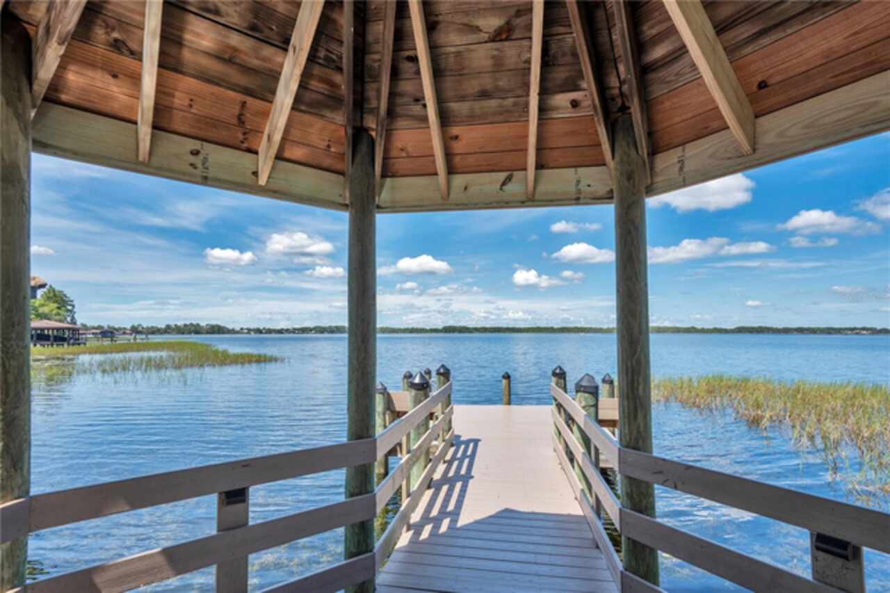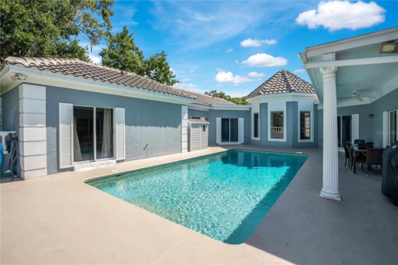 FANTASTIC NEW PRICE! Welcome to this beautifully updated single-story pool home, tucked away on a private cul-de-sac in the desirable South Bay community—just a golf cart ride to the famed Bay Hill Golf Club. Set on nearly half an acre with peaceful water views right out the front door, this 3-bedroom, 2.5-bath residence offers over 3, 190 sq. ft. of open, elegant living space. A circular driveway adds to the home’s curb appeal, complementing its unique design and inviting presence. Step inside to a grand foyer with a statement chandelier and porcelain "marble look" tile flooring, setting the tone for the home’s refined style. The unique split floor plan provides versatile living options, including large bedrooms connected by Jack-and-Jill bathrooms for convenience and privacy. The freshly painted family room offers a bright and welcoming gathering space, while upgraded finishes add a touch of luxury throughout. The kitchen features rich upgraded cabinetry, stainless steel appliances, and gorgeous quartz and soap stone countertops. It flows seamlessly into a spacious formal dining and living area anchored by a wood-burning fireplace—perfect for entertaining. The primary suite boasts bamboo floors, a walk-in closet, and a spa-inspired bath with travertine, a clawfoot tub, and premium finishes. Wood-look tile extends through the kitchen and main living areas, complementing the home’s light-filled, oversized rooms designed for both comfort and function. Step into your private backyard retreat with a large swimming pool, freshly painted sundeck, storage shed, and an expansive yard offering both space and seclusion. South Bay residents enjoy exclusive amenities including tennis courts, walking trails, a community playground, and a private dock on the Butler Chain of Lakes, plus year-round neighborhood events. Zoned for A-rated Dr. Phillips schools and just minutes from Restaurant Row, world-class golf, multiple theme parks, and major highways, this home delivers the perfect blend of luxury, lifestyle, and convenience.