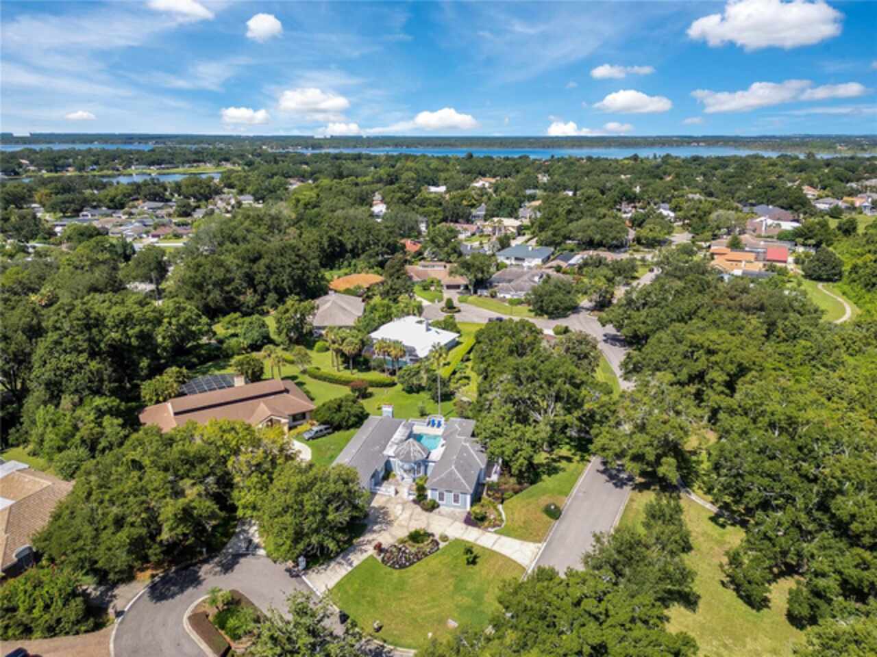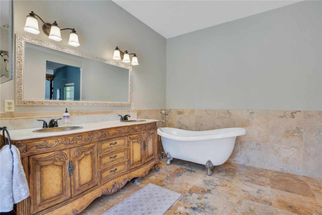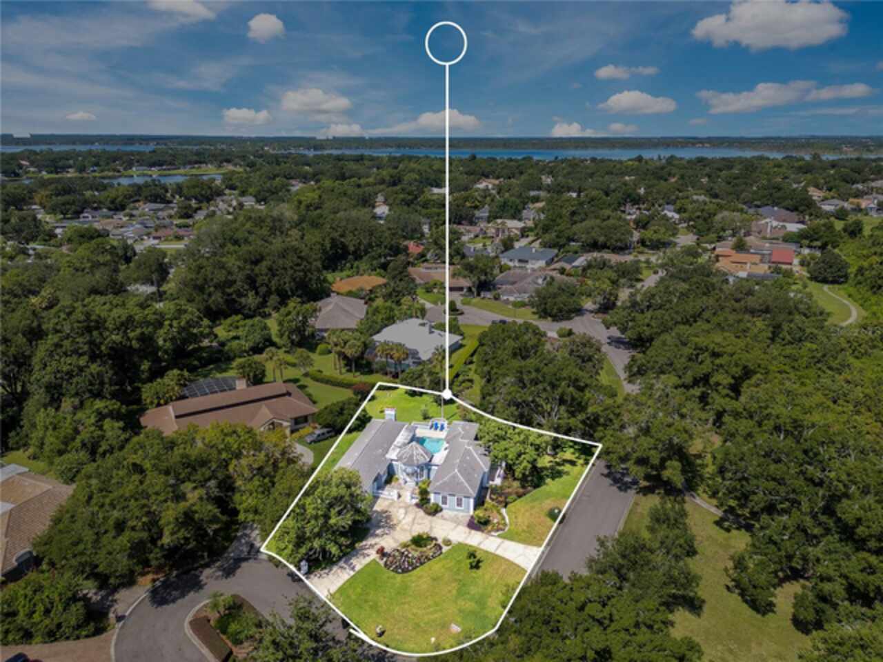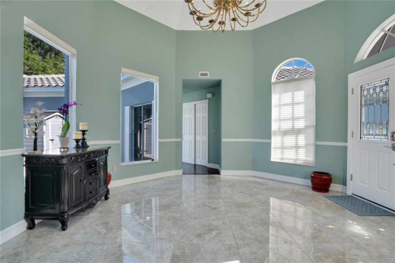 FANTASTIC NEW PRICE! Welcome to this beautifully updated single-story pool home, tucked away on a private cul-de-sac in the desirable South Bay community—just a golf cart ride to the famed Bay Hill Golf Club. Set on nearly half an acre with peaceful water views right out the front door, this 3-bedroom, 2.5-bath residence offers over 3, 190 sq. ft. of open, elegant living space. A circular driveway adds to the home’s curb appeal, complementing its unique design and inviting presence. Step inside to a grand foyer with a statement chandelier and porcelain "marble look" tile flooring, setting the tone for the home’s refined style. The unique split floor plan provides versatile living options, including large bedrooms connected by Jack-and-Jill bathrooms for convenience and privacy. The freshly painted family room offers a bright and welcoming gathering space, while upgraded finishes add a touch of luxury throughout. The kitchen features rich upgraded cabinetry, stainless steel appliances, and gorgeous quartz and soap stone countertops. It flows seamlessly into a spacious formal dining and living area anchored by a wood-burning fireplace—perfect for entertaining. The primary suite boasts bamboo floors, a walk-in closet, and a spa-inspired bath with travertine, a clawfoot tub, and premium finishes. Wood-look tile extends through the kitchen and main living areas, complementing the home’s light-filled, oversized rooms designed for both comfort and function. Step into your private backyard retreat with a large swimming pool, freshly painted sundeck, storage shed, and an expansive yard offering both space and seclusion. South Bay residents enjoy exclusive amenities including tennis courts, walking trails, a community playground, and a private dock on the Butler Chain of Lakes, plus year-round neighborhood events. Zoned for A-rated Dr. Phillips schools and just minutes from Restaurant Row, world-class golf, multiple theme parks, and major highways, this home delivers the perfect blend of luxury, lifestyle, and convenience.