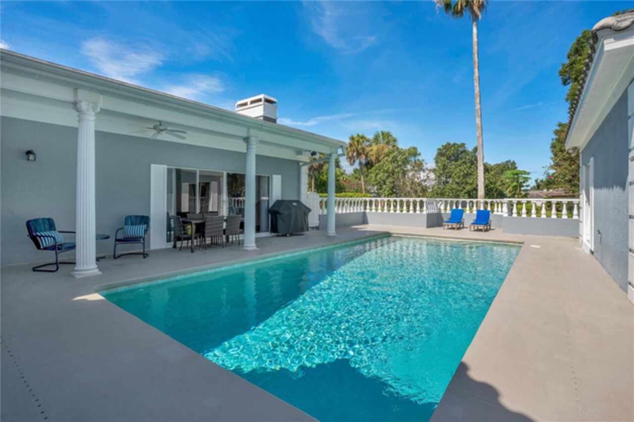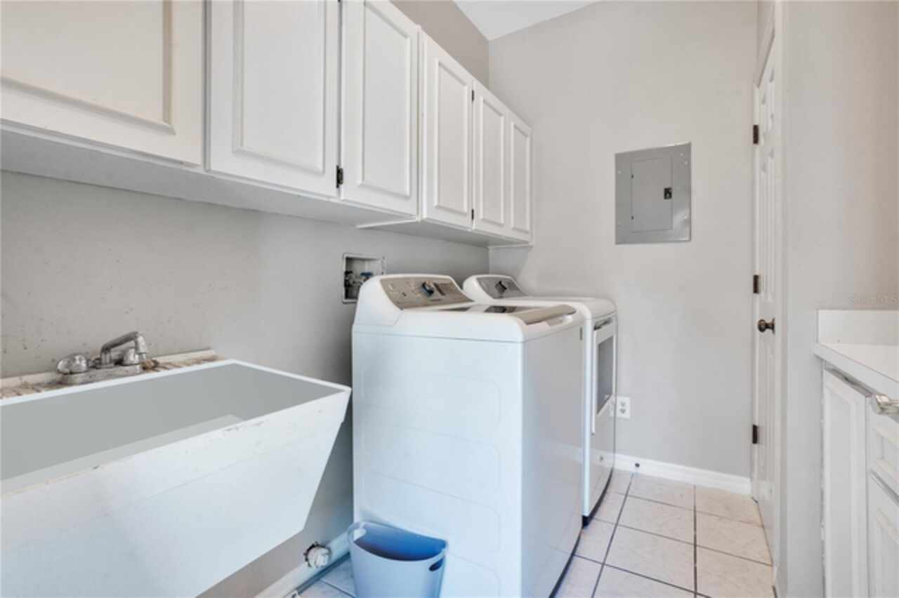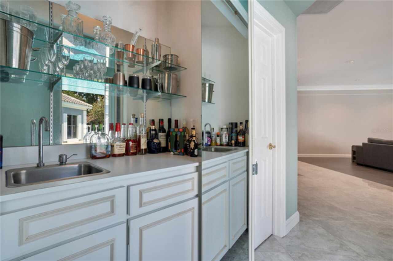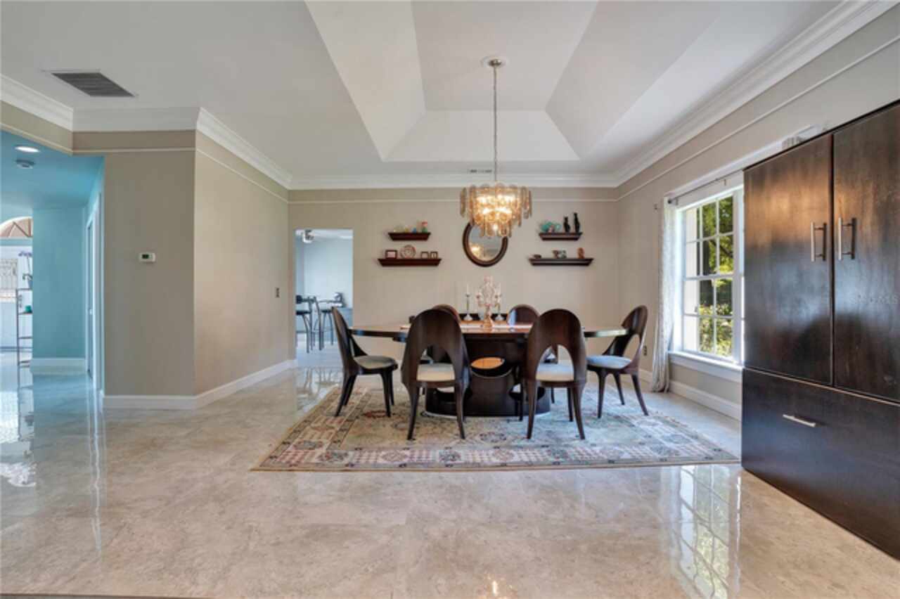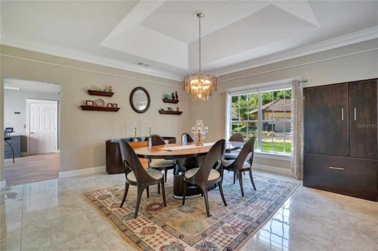 FANTASTIC NEW PRICE! Welcome to this beautifully updated single-story pool home, tucked away on a private cul-de-sac in the desirable South Bay community—just a golf cart ride to the famed Bay Hill Golf Club. Set on nearly half an acre with peaceful water views right out the front door, this 3-bedroom, 2.5-bath residence offers over 3, 190 sq. ft. of open, elegant living space. A circular driveway adds to the home’s curb appeal, complementing its unique design and inviting presence. Step inside to a grand foyer with a statement chandelier and porcelain "marble look" tile flooring, setting the tone for the home’s refined style. The unique split floor plan provides versatile living options, including large bedrooms connected by Jack-and-Jill bathrooms for convenience and privacy. The freshly painted family room offers a bright and welcoming gathering space, while upgraded finishes add a touch of luxury throughout. The kitchen features rich upgraded cabinetry, stainless steel appliances, and gorgeous quartz and soap stone countertops. It flows seamlessly into a spacious formal dining and living area anchored by a wood-burning fireplace—perfect for entertaining. The primary suite boasts bamboo floors, a walk-in closet, and a spa-inspired bath with travertine, a clawfoot tub, and premium finishes. Wood-look tile extends through the kitchen and main living areas, complementing the home’s light-filled, oversized rooms designed for both comfort and function. Step into your private backyard retreat with a large swimming pool, freshly painted sundeck, storage shed, and an expansive yard offering both space and seclusion. South Bay residents enjoy exclusive amenities including tennis courts, walking trails, a community playground, and a private dock on the Butler Chain of Lakes, plus year-round neighborhood events. Zoned for A-rated Dr. Phillips schools and just minutes from Restaurant Row, world-class golf, multiple theme parks, and major highways, this home delivers the perfect blend of luxury, lifestyle, and convenience.