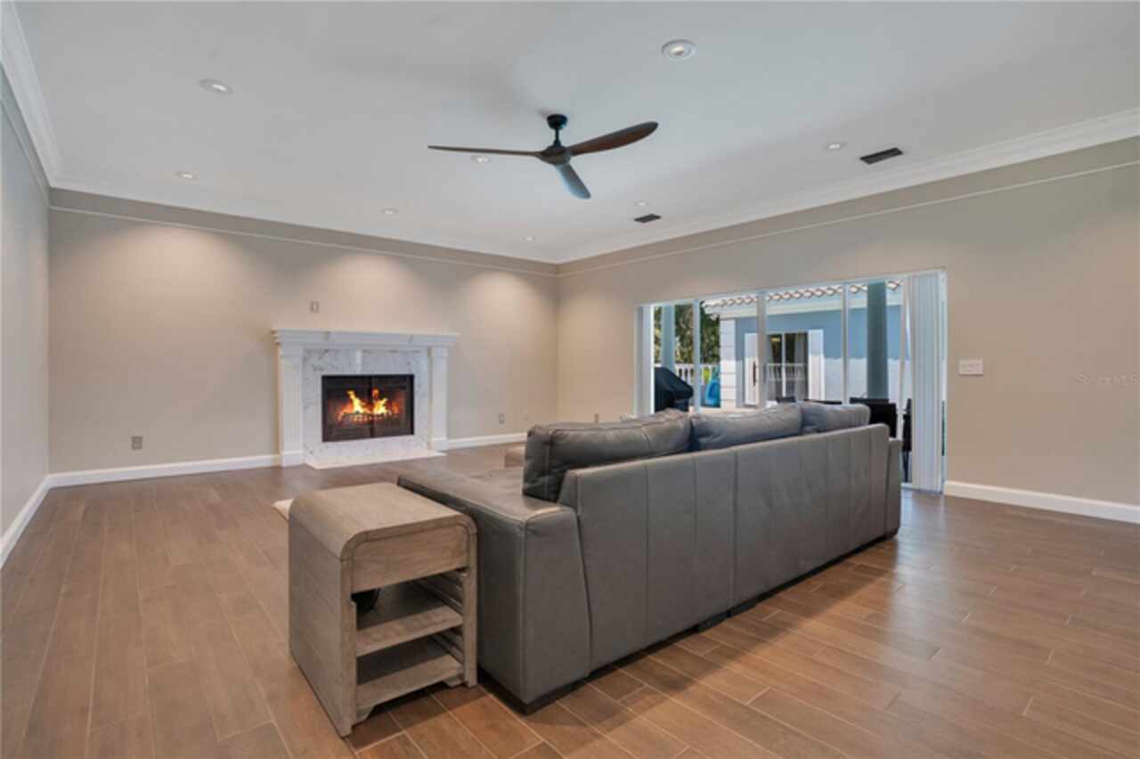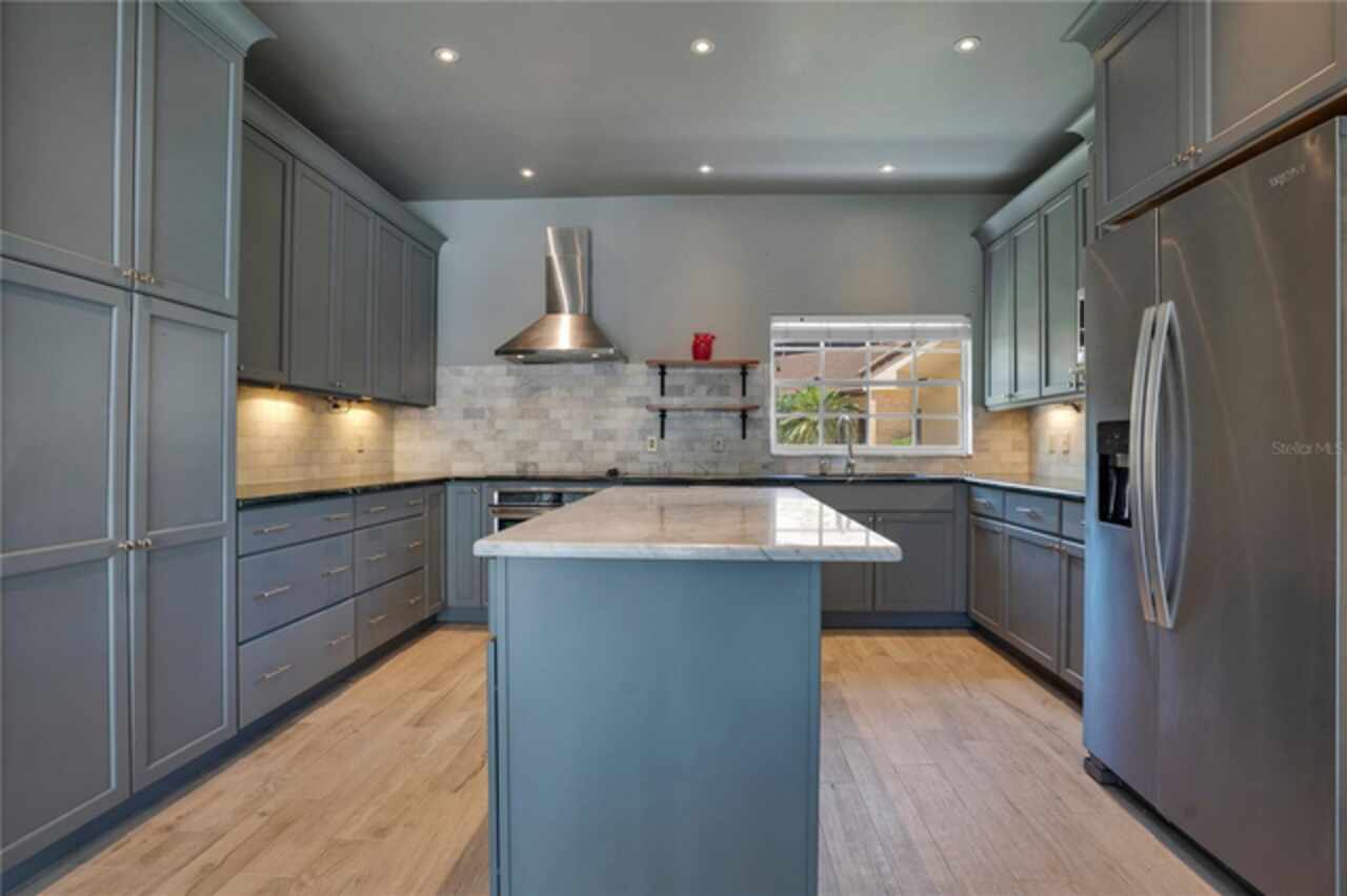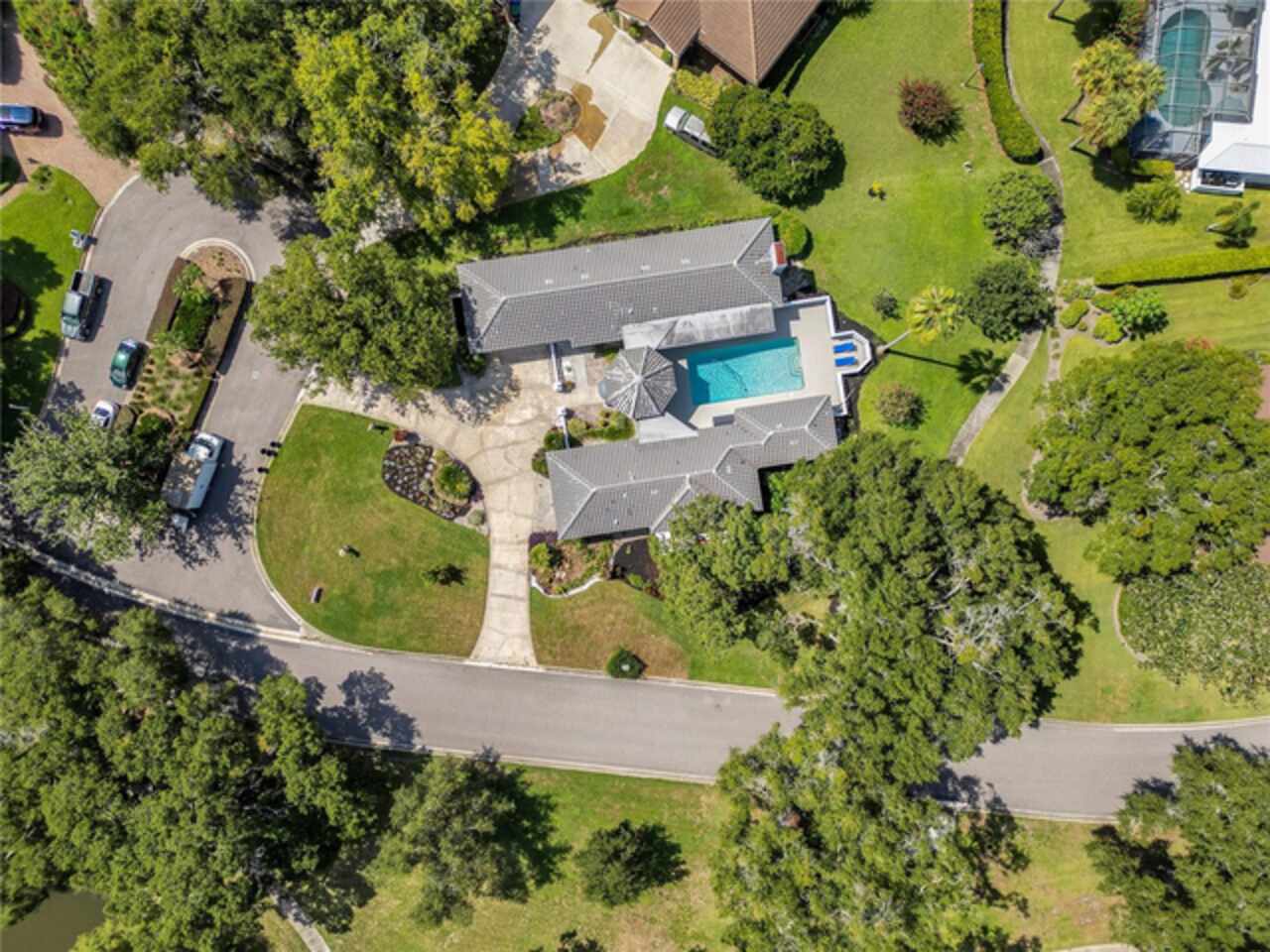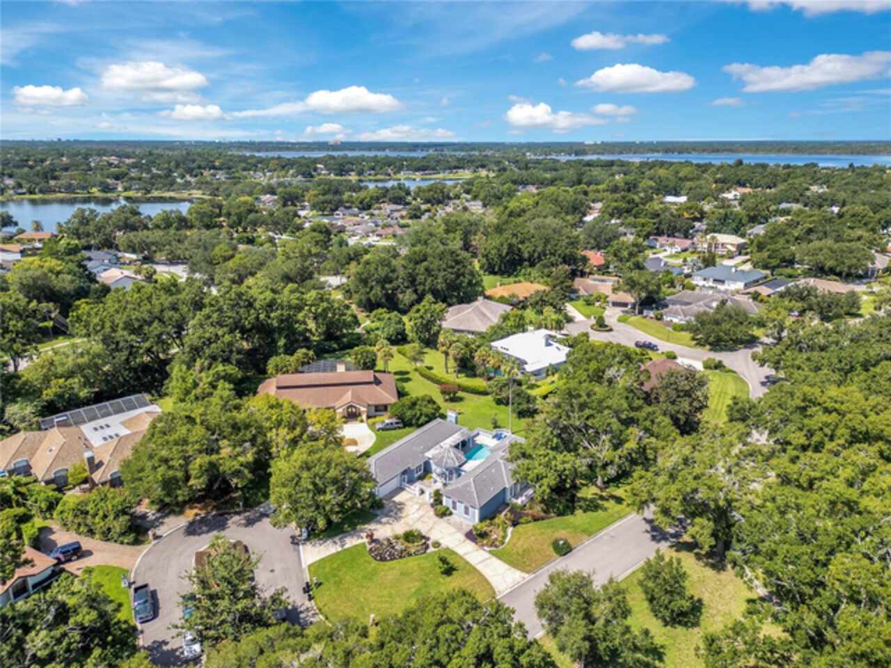 FANTASTIC NEW PRICE! Welcome to this beautifully updated single-story pool home, tucked away on a private cul-de-sac in the desirable South Bay community—just a golf cart ride to the famed Bay Hill Golf Club. Set on nearly half an acre with peaceful water views right out the front door, this 3-bedroom, 2.5-bath residence offers over 3, 190 sq. ft. of open, elegant living space. A circular driveway adds to the home’s curb appeal, complementing its unique design and inviting presence. Step inside to a grand foyer with a statement chandelier and porcelain "marble look" tile flooring, setting the tone for the home’s refined style. The unique split floor plan provides versatile living options, including large bedrooms connected by Jack-and-Jill bathrooms for convenience and privacy. The freshly painted family room offers a bright and welcoming gathering space, while upgraded finishes add a touch of luxury throughout. The kitchen features rich upgraded cabinetry, stainless steel appliances, and gorgeous quartz and soap stone countertops. It flows seamlessly into a spacious formal dining and living area anchored by a wood-burning fireplace—perfect for entertaining. The primary suite boasts bamboo floors, a walk-in closet, and a spa-inspired bath with travertine, a clawfoot tub, and premium finishes. Wood-look tile extends through the kitchen and main living areas, complementing the home’s light-filled, oversized rooms designed for both comfort and function. Step into your private backyard retreat with a large swimming pool, freshly painted sundeck, storage shed, and an expansive yard offering both space and seclusion. South Bay residents enjoy exclusive amenities including tennis courts, walking trails, a community playground, and a private dock on the Butler Chain of Lakes, plus year-round neighborhood events. Zoned for A-rated Dr. Phillips schools and just minutes from Restaurant Row, world-class golf, multiple theme parks, and major highways, this home delivers the perfect blend of luxury, lifestyle, and convenience.