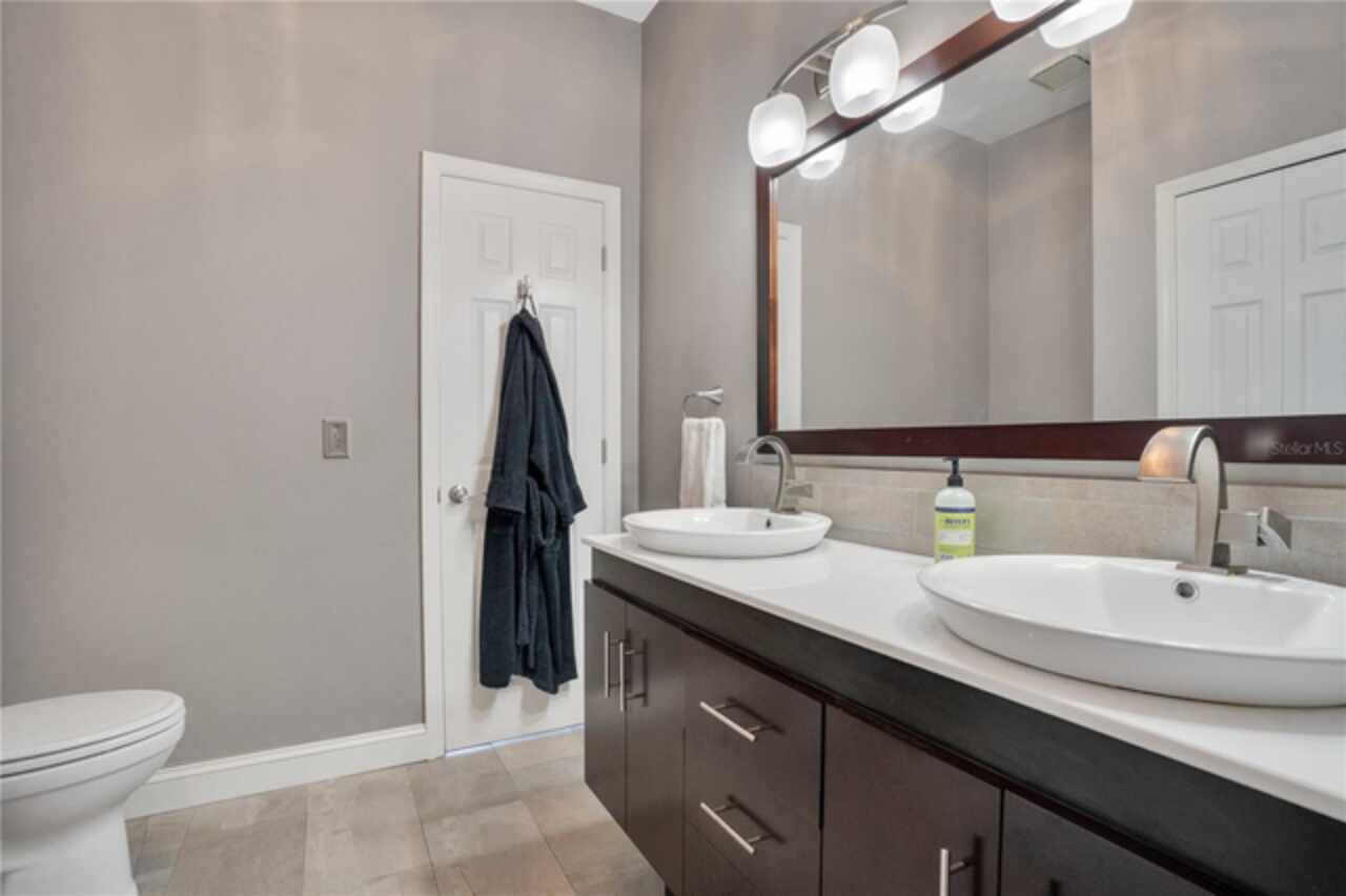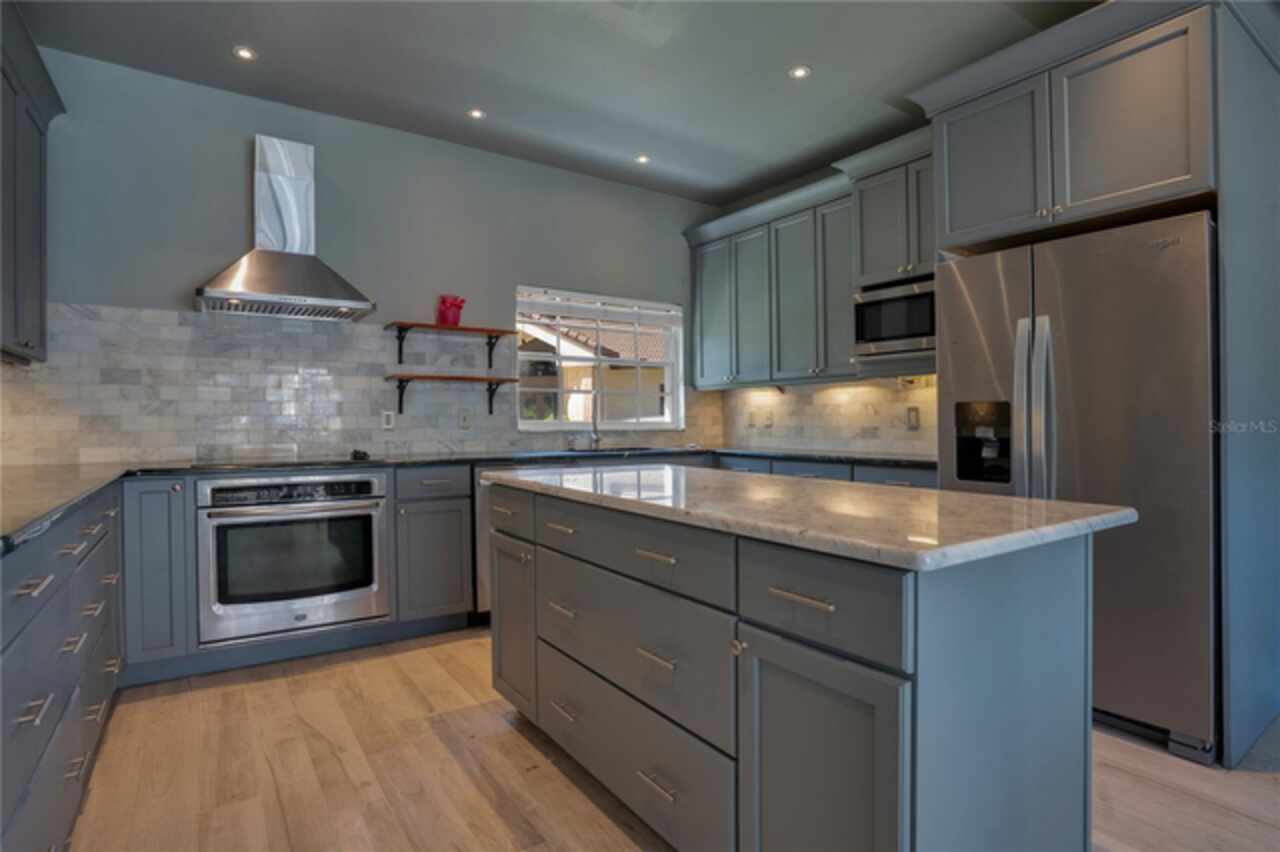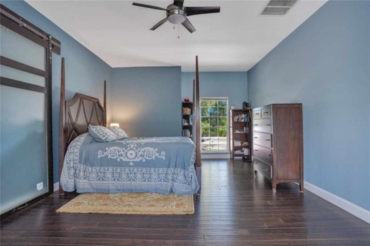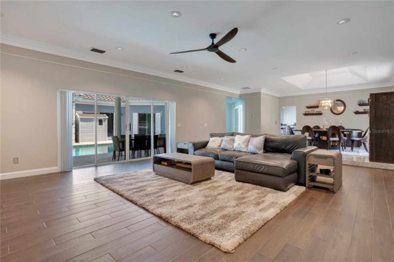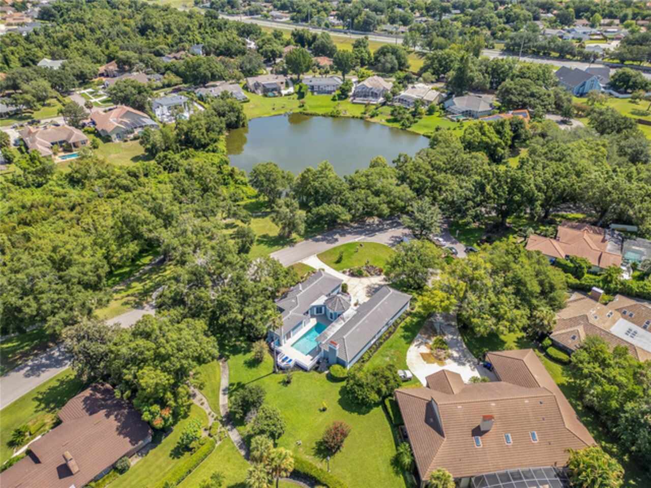 FANTASTIC NEW PRICE! Welcome to this beautifully updated single-story pool home, tucked away on a private cul-de-sac in the desirable South Bay community—just a golf cart ride to the famed Bay Hill Golf Club. Set on nearly half an acre with peaceful water views right out the front door, this 3-bedroom, 2.5-bath residence offers over 3, 190 sq. ft. of open, elegant living space. A circular driveway adds to the home’s curb appeal, complementing its unique design and inviting presence. Step inside to a grand foyer with a statement chandelier and porcelain "marble look" tile flooring, setting the tone for the home’s refined style. The unique split floor plan provides versatile living options, including large bedrooms connected by Jack-and-Jill bathrooms for convenience and privacy. The freshly painted family room offers a bright and welcoming gathering space, while upgraded finishes add a touch of luxury throughout. The kitchen features rich upgraded cabinetry, stainless steel appliances, and gorgeous quartz and soap stone countertops. It flows seamlessly into a spacious formal dining and living area anchored by a wood-burning fireplace—perfect for entertaining. The primary suite boasts bamboo floors, a walk-in closet, and a spa-inspired bath with travertine, a clawfoot tub, and premium finishes. Wood-look tile extends through the kitchen and main living areas, complementing the home’s light-filled, oversized rooms designed for both comfort and function. Step into your private backyard retreat with a large swimming pool, freshly painted sundeck, storage shed, and an expansive yard offering both space and seclusion. South Bay residents enjoy exclusive amenities including tennis courts, walking trails, a community playground, and a private dock on the Butler Chain of Lakes, plus year-round neighborhood events. Zoned for A-rated Dr. Phillips schools and just minutes from Restaurant Row, world-class golf, multiple theme parks, and major highways, this home delivers the perfect blend of luxury, lifestyle, and convenience.