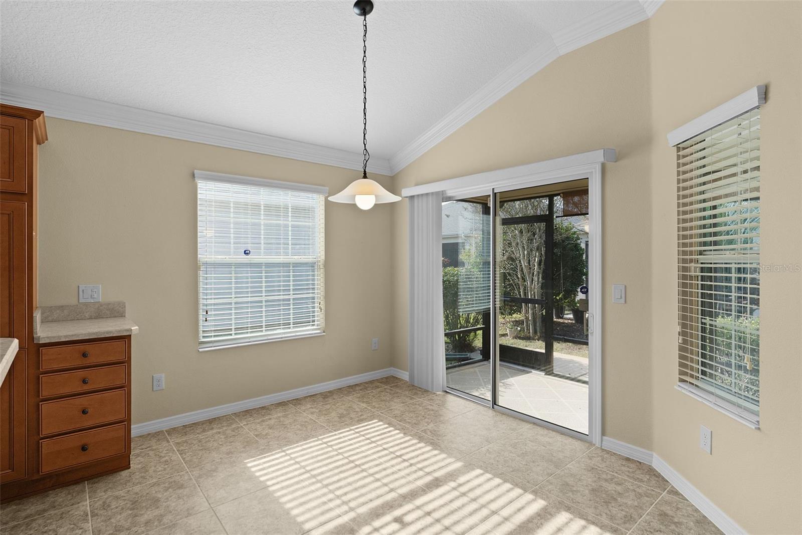 ~BUILT IN 2013~ ~GOLF CART GARAGE~ ~WATER FILTRATION SYSTEM~ ~CROWN MOLDING~ Welcome to this beautifully updated LILAC model in the desirable Village of CHARLOTTE, offering the perfect blend of comfort, style, and Florida living. Step through the front screen and inside to a bright foyer with CERAMIC tile flooring and a convenient COAT CLOSET, leading into spacious main living areas enhanced by elegant CROWN MOLDING. The living and dining rooms feature soft carpeting, creating a warm, inviting space for everyday living and entertaining. The kitchen is a standout—appointed with CERAMIC tile, UPGRADED cabinetry, HI-DEF countertops, recessed lighting, and lower cabinet rollouts for easy storage. An EAT-IN BREAKFAST AREA completes this functional, stylish space. The primary suite offers carpeted flooring, a ceiling fan, and a high tray ceiling. You’ll love the OVERSIZED, CUSTOM WALK-IN CLOSET and the spa-inspired ensuite bath featuring ceramic tile, a ROMAN WALK-IN TILED SHOWER, double sinks, a separate commode, high countertops and a linen closet. Two guest bedrooms provide comfortable accommodation: Guest Bedroom 1 has carpet, vaulted ceilings, and a built-in closet. The Guest Bath has ceramic tile, tile tub/shower combo, upgraded cabinetry, and tall high-definition countertops. Guest Bedroom 2 also has carpet, a tray ceiling, ceiling fan, and built-in closet. This home boasts a 2-car garage plus a GOLF CART GARAGE, giving you plenty of space for vehicles, storage, and toys. Additional features include an INSIDE LAUNDRY ROOM with cabinets, a laundry tub and a pantry type area, a FRESHLY PAINTED INTERIOR, a security system, and a lovely, screened lanai with painted flooring, blinds, a ceiling fan, and mature shrubs for privacy. This Lilac model is move-in ready and beautifully maintained—an ideal place to enjoy the charm, convenience, and lifestyle of The Villages. Close to Bonifay Country Club, Captiva Rec Center and a short golf cart ride to the Brownwood Town Square. Enjoy dining and shopping close by along CR466A.