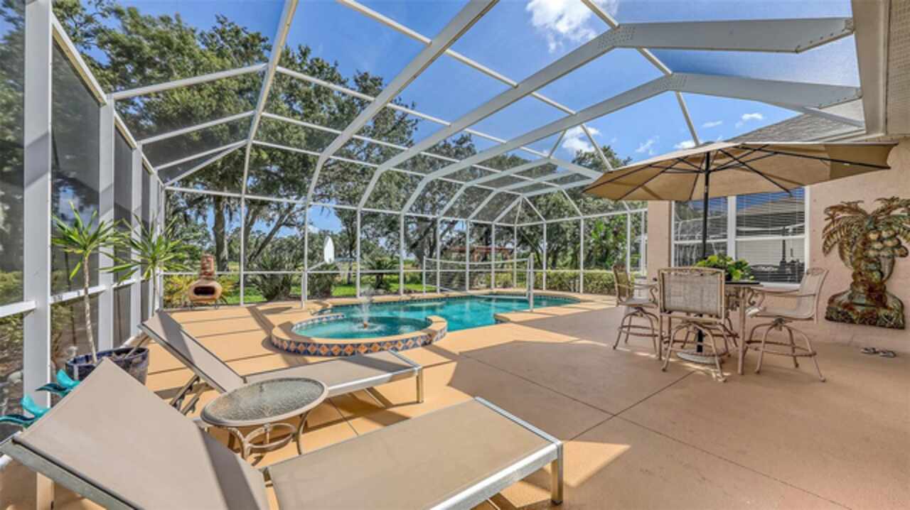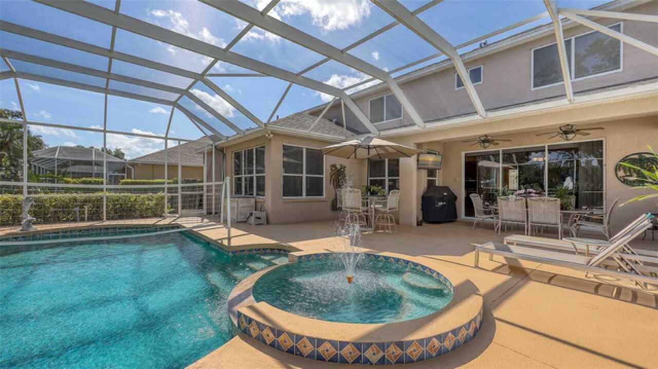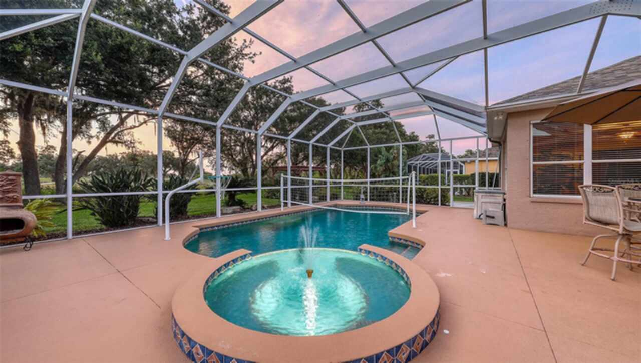 Resort-Style Oasis with Golf Course Views in a Gated Community: Welcome to this stunning, impeccably maintained two-story single-family home that offers luxury living in a serene, resort-style setting. Nestled on a private, oversized homesite with breathtaking views of the Tatum Ridge Golf Course and framed by majestic oak trees, this residence exudes tranquility and elegance at every turn. From the moment you arrive, you’re greeted by a grand entryway with soaring ceilings that set the tone for the spacious and open layout. The formal living and dining areas seamlessly flow into a large family room and gourmet kitchen, making this home ideal for entertaining guests or enjoying quiet family moments. The first-floor primary suite is a true retreat, boasting two generous walk-in closets and a luxurious en-suite bath. Upstairs, you’ll find two additional bedrooms, including a guest suite with a private bath and a third bedroom with a Jack-and-Jill bath connecting to a versatile bonus room with a wet bar and loft area—perfect for a game room, home theater, or additional living space. Key features and upgrades include: 3-car garage, Newer roof (2020), Newer Carrier 16 SEER A/C 2 units (2019), Whole-home water softener and filtration system (2021), Upgraded stainless steel appliances including double ovens, refrigerator, microwave, and dishwasher (2021), Saltwater sports pool and spa (14’ x 28’) with volleyball net, basketball hoop, and newer heater (2021), Screened pool enclosure with titanium screws (2018), Luxon exterior paint by Sherwin-Williams (2022), High-end Benjamin Moore interior paint (2022), Reinforced upstairs flooring with sound insulation, Bose surround sound system in family room, Reverse osmosis water system for kitchen sink and refrigerator. Step outside to your private backyard paradise, complete with a paver walkway leading to a charming pergola, ideal for sipping morning coffee or enjoying an evening glass of wine. The wrought-iron and wood railing staircase, crown molding, and custom touches throughout make this home a rare find. Located in a gated community known for its oversized lots, natural preserves, and scenic lakes, this home combines luxurious living with the peace and privacy of nature. Don’t miss the opportunity to experience this exceptional property for yourself.