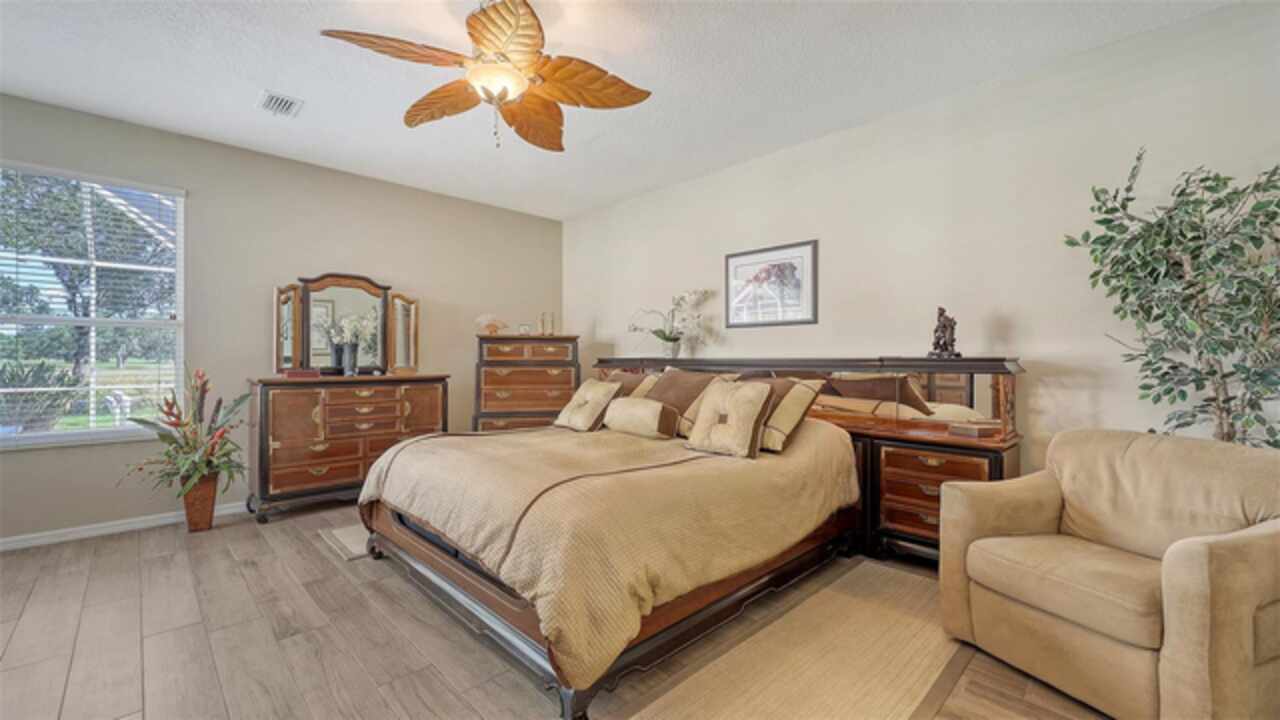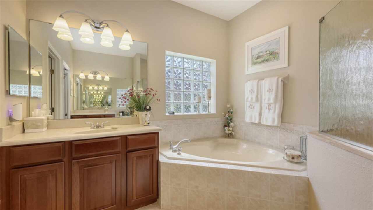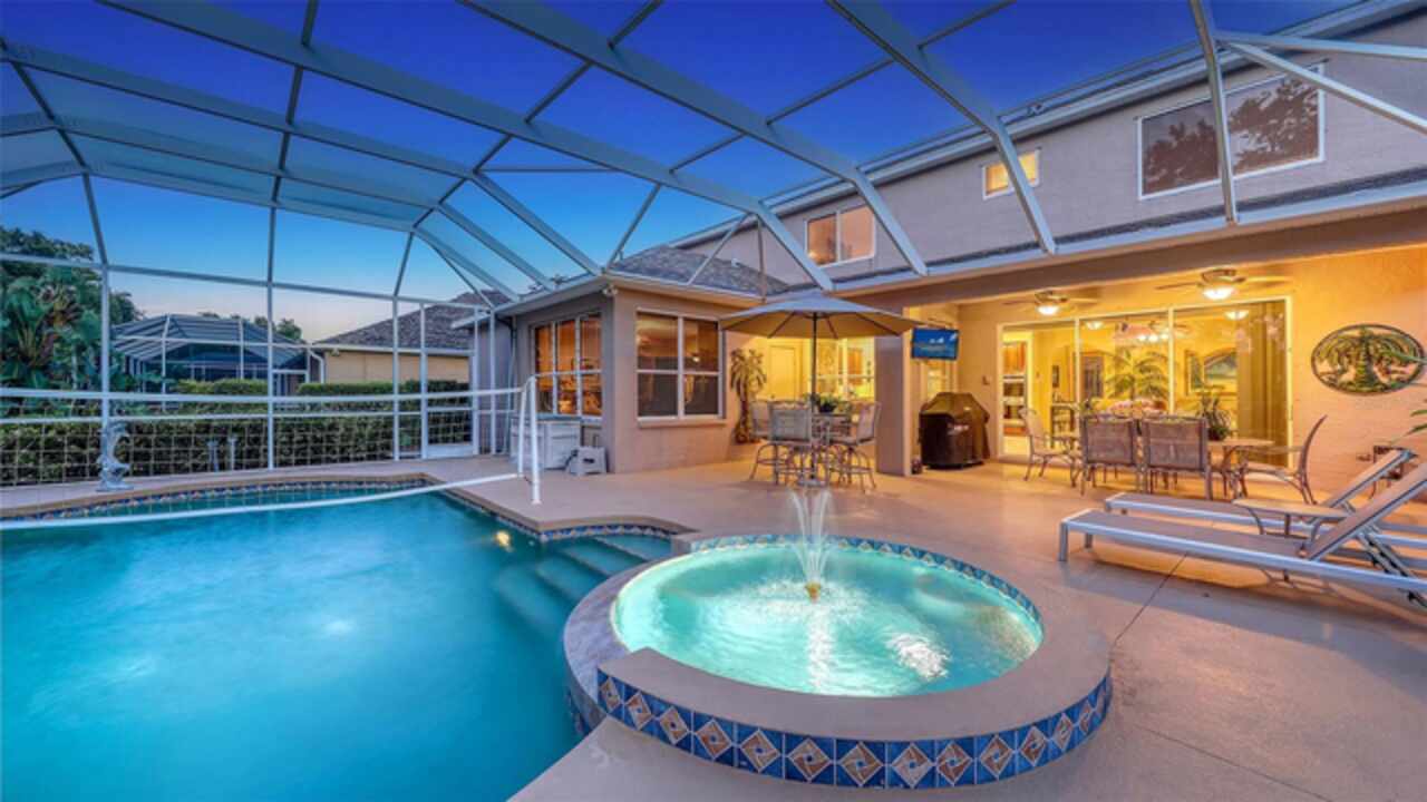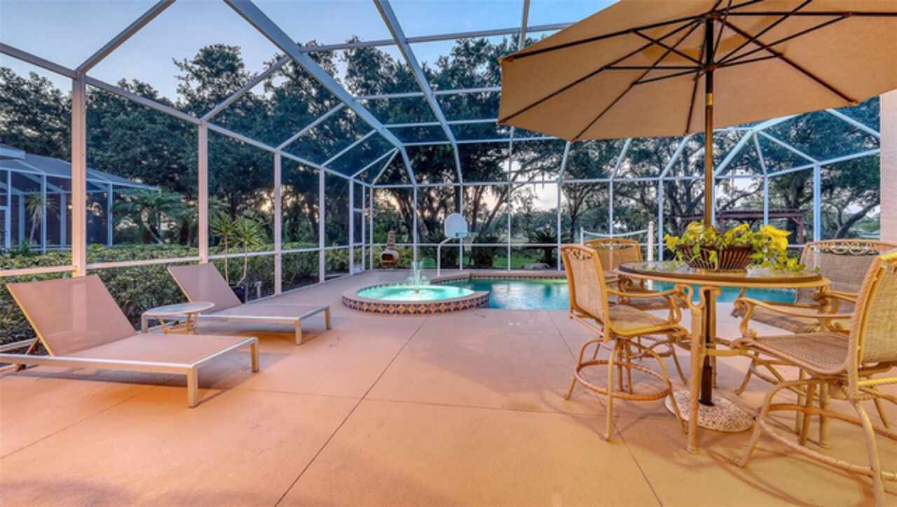 Resort-Style Oasis with Golf Course Views in a Gated Community: Welcome to this stunning, impeccably maintained two-story single-family home that offers luxury living in a serene, resort-style setting. Nestled on a private, oversized homesite with breathtaking views of the Tatum Ridge Golf Course and framed by majestic oak trees, this residence exudes tranquility and elegance at every turn. From the moment you arrive, you’re greeted by a grand entryway with soaring ceilings that set the tone for the spacious and open layout. The formal living and dining areas seamlessly flow into a large family room and gourmet kitchen, making this home ideal for entertaining guests or enjoying quiet family moments. The first-floor primary suite is a true retreat, boasting two generous walk-in closets and a luxurious en-suite bath. Upstairs, you’ll find two additional bedrooms, including a guest suite with a private bath and a third bedroom with a Jack-and-Jill bath connecting to a versatile bonus room with a wet bar and loft area—perfect for a game room, home theater, or additional living space. Key features and upgrades include: 3-car garage, Newer roof (2020), Newer Carrier 16 SEER A/C 2 units (2019), Whole-home water softener and filtration system (2021), Upgraded stainless steel appliances including double ovens, refrigerator, microwave, and dishwasher (2021), Saltwater sports pool and spa (14’ x 28’) with volleyball net, basketball hoop, and newer heater (2021), Screened pool enclosure with titanium screws (2018), Luxon exterior paint by Sherwin-Williams (2022), High-end Benjamin Moore interior paint (2022), Reinforced upstairs flooring with sound insulation, Bose surround sound system in family room, Reverse osmosis water system for kitchen sink and refrigerator. Step outside to your private backyard paradise, complete with a paver walkway leading to a charming pergola, ideal for sipping morning coffee or enjoying an evening glass of wine. The wrought-iron and wood railing staircase, crown molding, and custom touches throughout make this home a rare find. Located in a gated community known for its oversized lots, natural preserves, and scenic lakes, this home combines luxurious living with the peace and privacy of nature. Don’t miss the opportunity to experience this exceptional property for yourself.