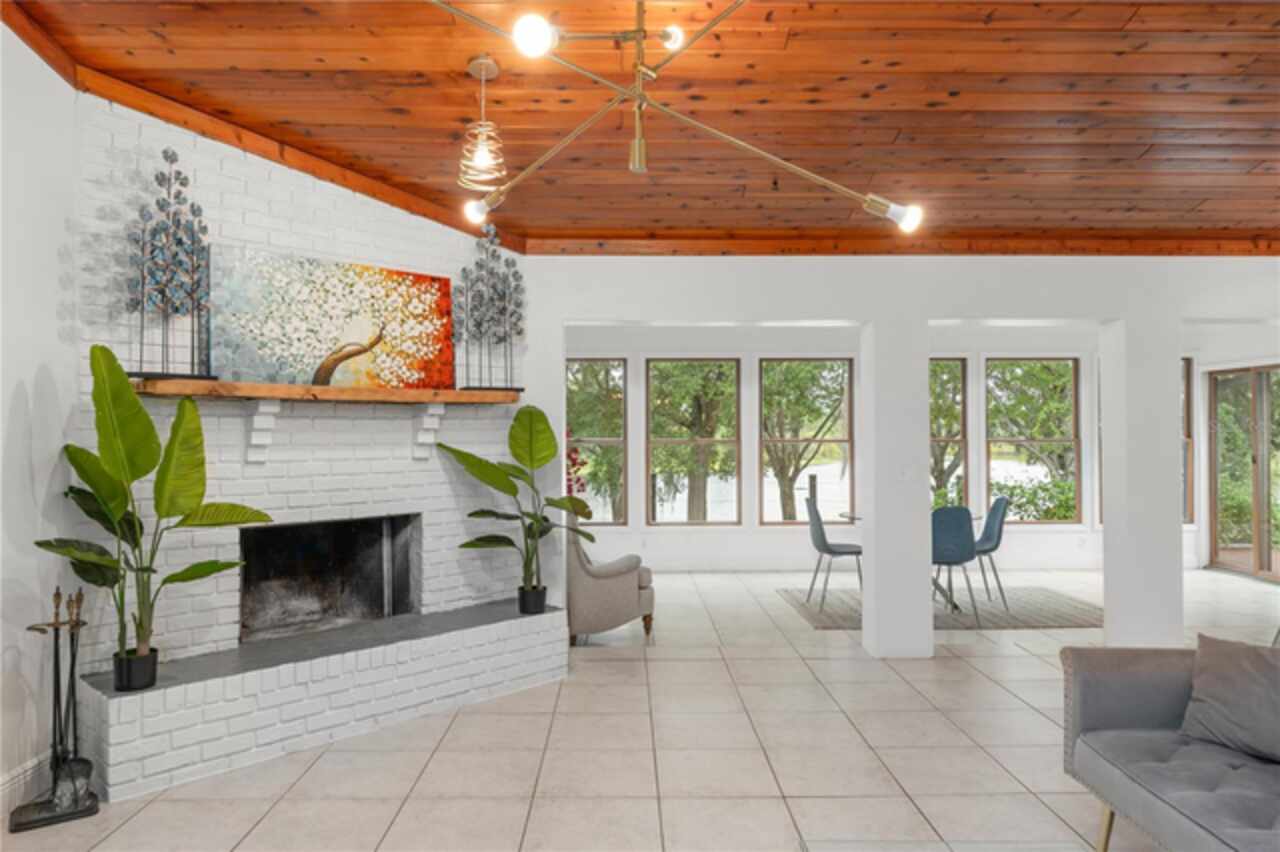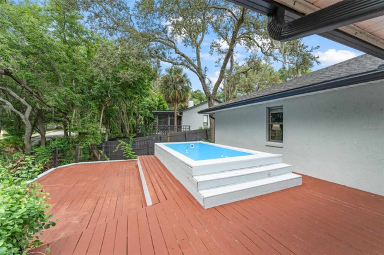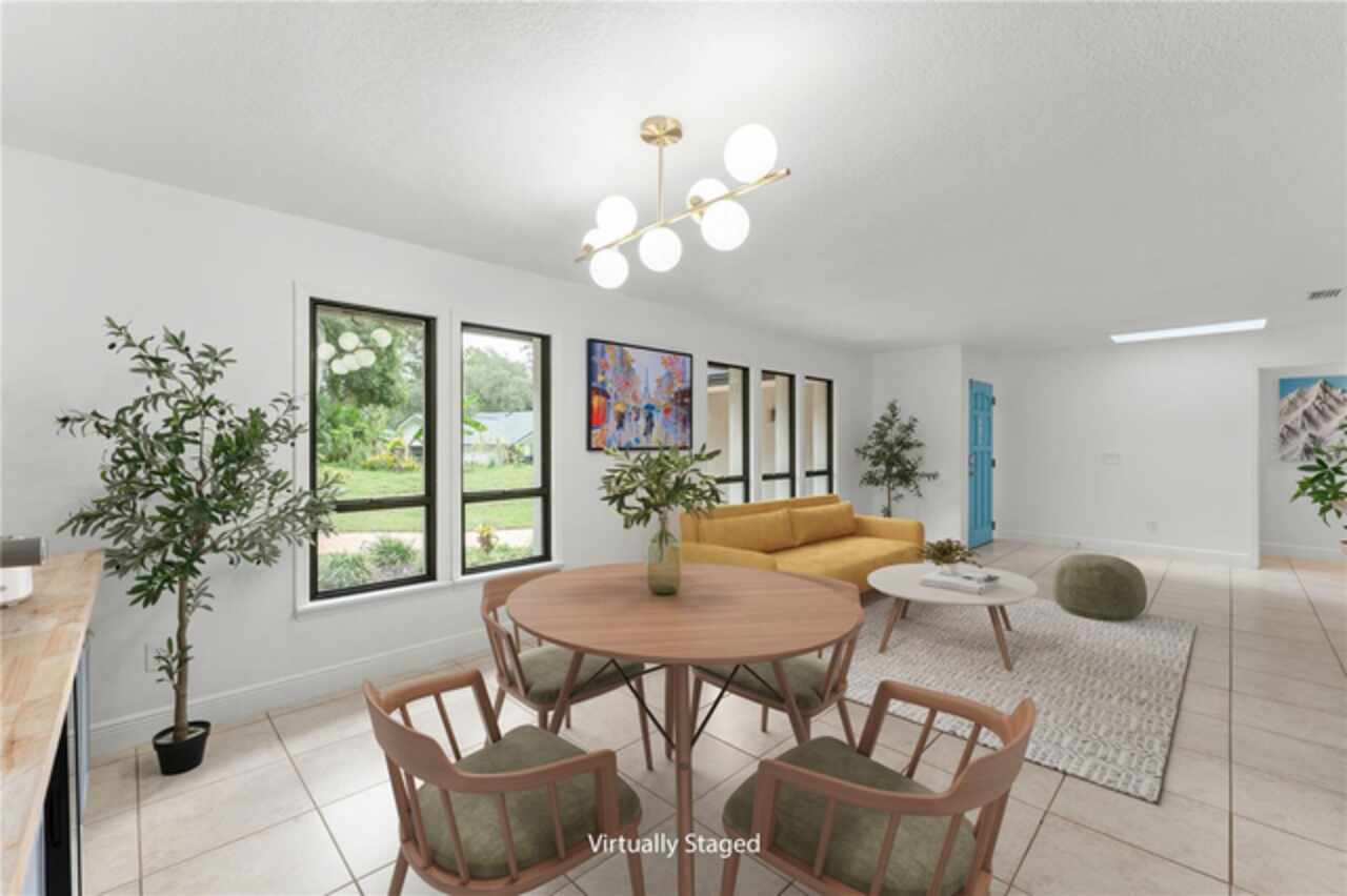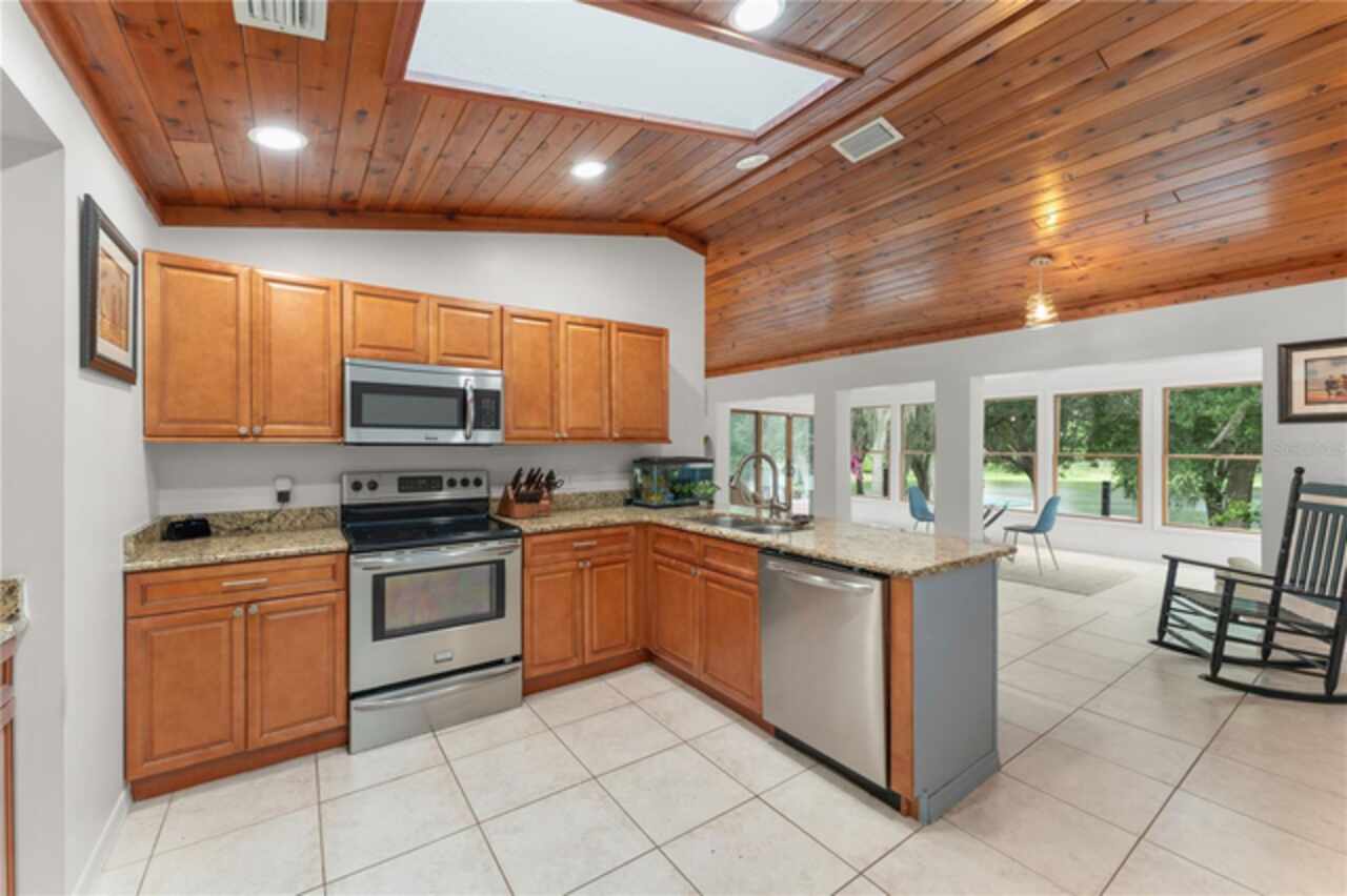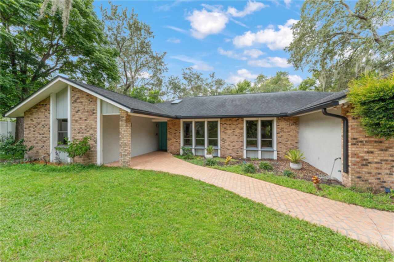 Water views abound from this chic, bright, and lovely Winderlakes home. The house sits perched above a picturesque, tranquil pond nestled in the highly sought-after Dr. Phillips area. Tucked away on a quiet cul-de-sac, the residence blends modern elegance with timeless charm, featuring natural wood slat accent walls, large windows, generous spaces, and an open floor plan. The living room and dining room offer a welcoming entrance and set the stage for hosting gatherings of any size. The modern kitchen has a perfect view of the lake, adding a touch of comfort in making any meal. The kitchen also features stainless steel appliances, granite countertops, custom cabinetry, and a breakfast bar. The family room is accented by dual skylights, a brick fireplace, a stylish gold chandelier - plus tile flooring flowing seamlessly into a sunroom that provides an abundance of sunshine-filled space. Bask in the outdoors from your newly refreshed, saltwater pool embedded into an oversized wrap-around deck. Practical upgrades include brand-new pool equipment, a one-year-old 5-ton AC unit, additional blown-in insulation, PEX plumbing, a tankless water heater, and high-end Square D circuit breakers with a 200-amp service panel. Located within close proximity to top-rated K-8 Windy Ridge STEM school. The perfect combination of an ideal location, sought-after community, and refined home – all wonderfully packaged to create a lifetime of memories.
