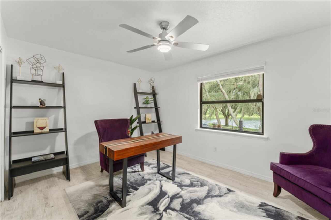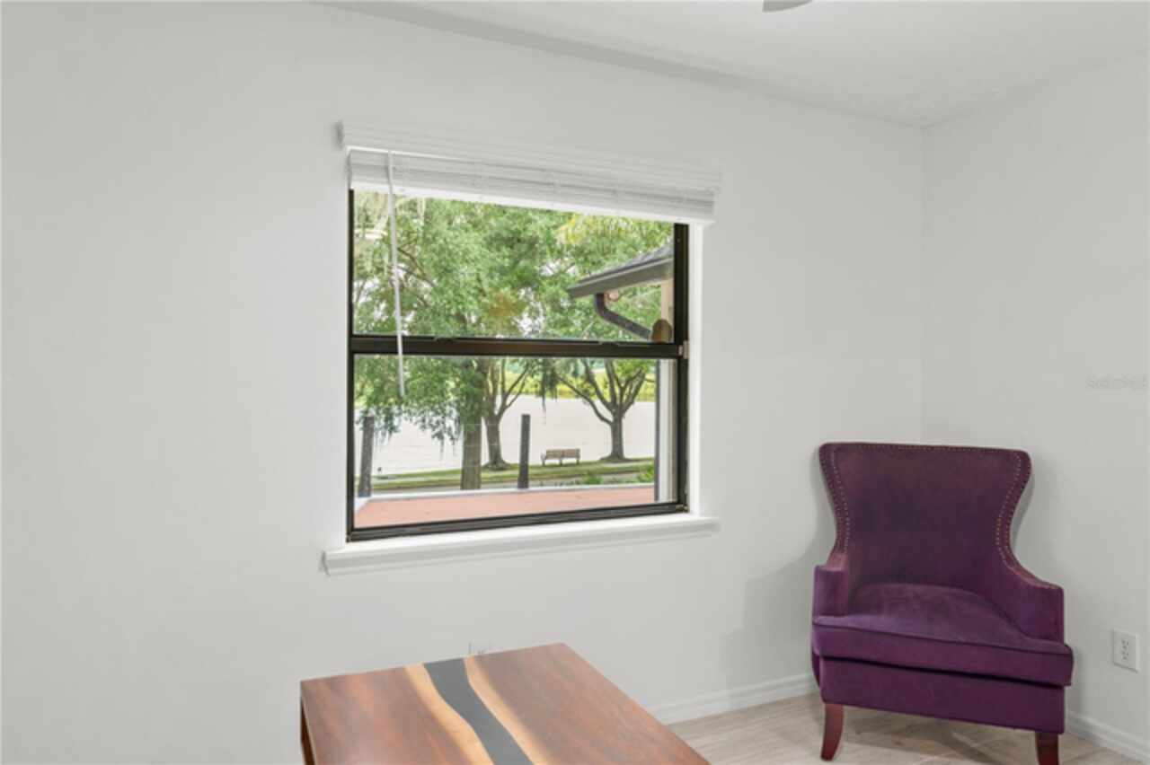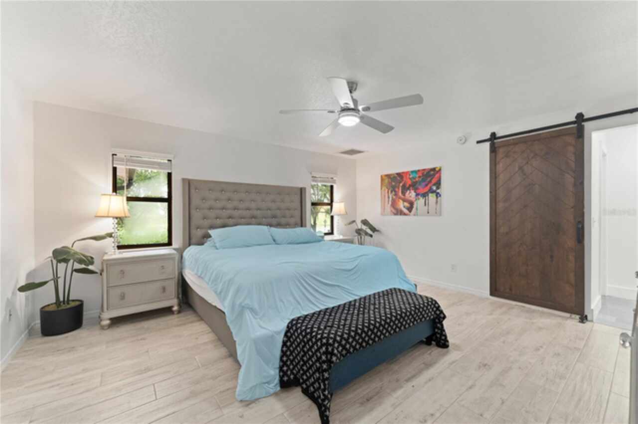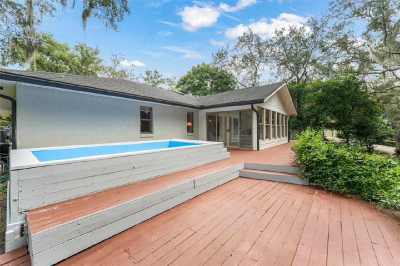 Water views abound from this chic, bright, and lovely Winderlakes home. The house sits perched above a picturesque, tranquil pond nestled in the highly sought-after Dr. Phillips area. Tucked away on a quiet cul-de-sac, the residence blends modern elegance with timeless charm, featuring natural wood slat accent walls, large windows, generous spaces, and an open floor plan. The living room and dining room offer a welcoming entrance and set the stage for hosting gatherings of any size. The modern kitchen has a perfect view of the lake, adding a touch of comfort in making any meal. The kitchen also features stainless steel appliances, granite countertops, custom cabinetry, and a breakfast bar. The family room is accented by dual skylights, a brick fireplace, a stylish gold chandelier - plus tile flooring flowing seamlessly into a sunroom that provides an abundance of sunshine-filled space. Bask in the outdoors from your newly refreshed, saltwater pool embedded into an oversized wrap-around deck. Practical upgrades include brand-new pool equipment, a one-year-old 5-ton AC unit, additional blown-in insulation, PEX plumbing, a tankless water heater, and high-end Square D circuit breakers with a 200-amp service panel. Located within close proximity to top-rated K-8 Windy Ridge STEM school. The perfect combination of an ideal location, sought-after community, and refined home – all wonderfully packaged to create a lifetime of memories.