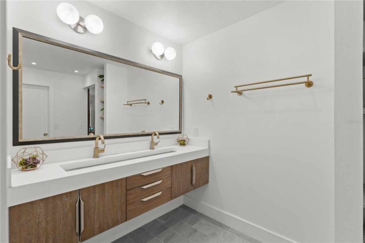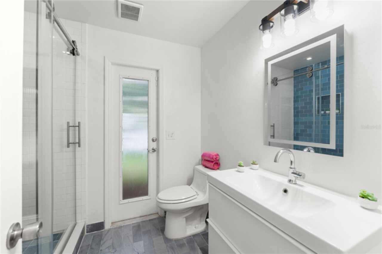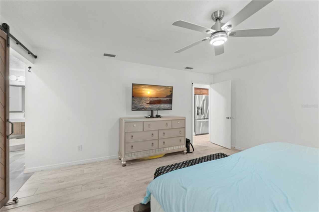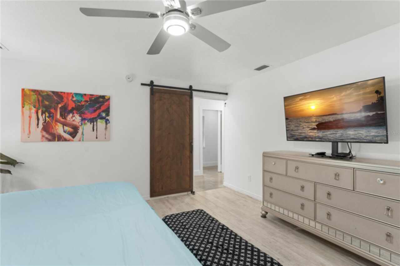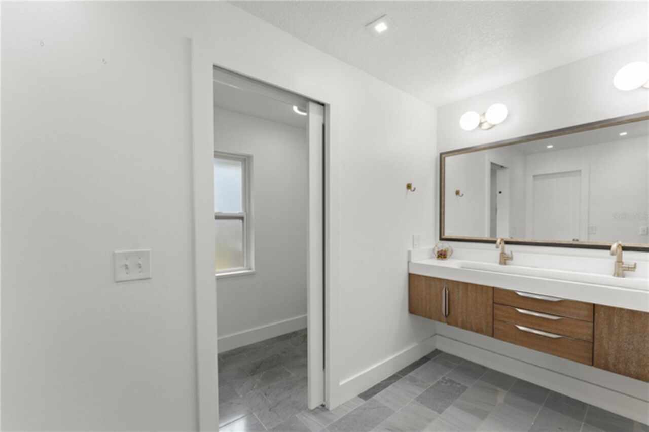 Water views abound from this chic, bright, and lovely Winderlakes home. The house sits perched above a picturesque, tranquil pond nestled in the highly sought-after Dr. Phillips area. Tucked away on a quiet cul-de-sac, the residence blends modern elegance with timeless charm, featuring natural wood slat accent walls, large windows, generous spaces, and an open floor plan. The living room and dining room offer a welcoming entrance and set the stage for hosting gatherings of any size. The modern kitchen has a perfect view of the lake, adding a touch of comfort in making any meal. The kitchen also features stainless steel appliances, granite countertops, custom cabinetry, and a breakfast bar. The family room is accented by dual skylights, a brick fireplace, a stylish gold chandelier - plus tile flooring flowing seamlessly into a sunroom that provides an abundance of sunshine-filled space. Bask in the outdoors from your newly refreshed, saltwater pool embedded into an oversized wrap-around deck. Practical upgrades include brand-new pool equipment, a one-year-old 5-ton AC unit, additional blown-in insulation, PEX plumbing, a tankless water heater, and high-end Square D circuit breakers with a 200-amp service panel. Located within close proximity to top-rated K-8 Windy Ridge STEM school. The perfect combination of an ideal location, sought-after community, and refined home – all wonderfully packaged to create a lifetime of memories.
