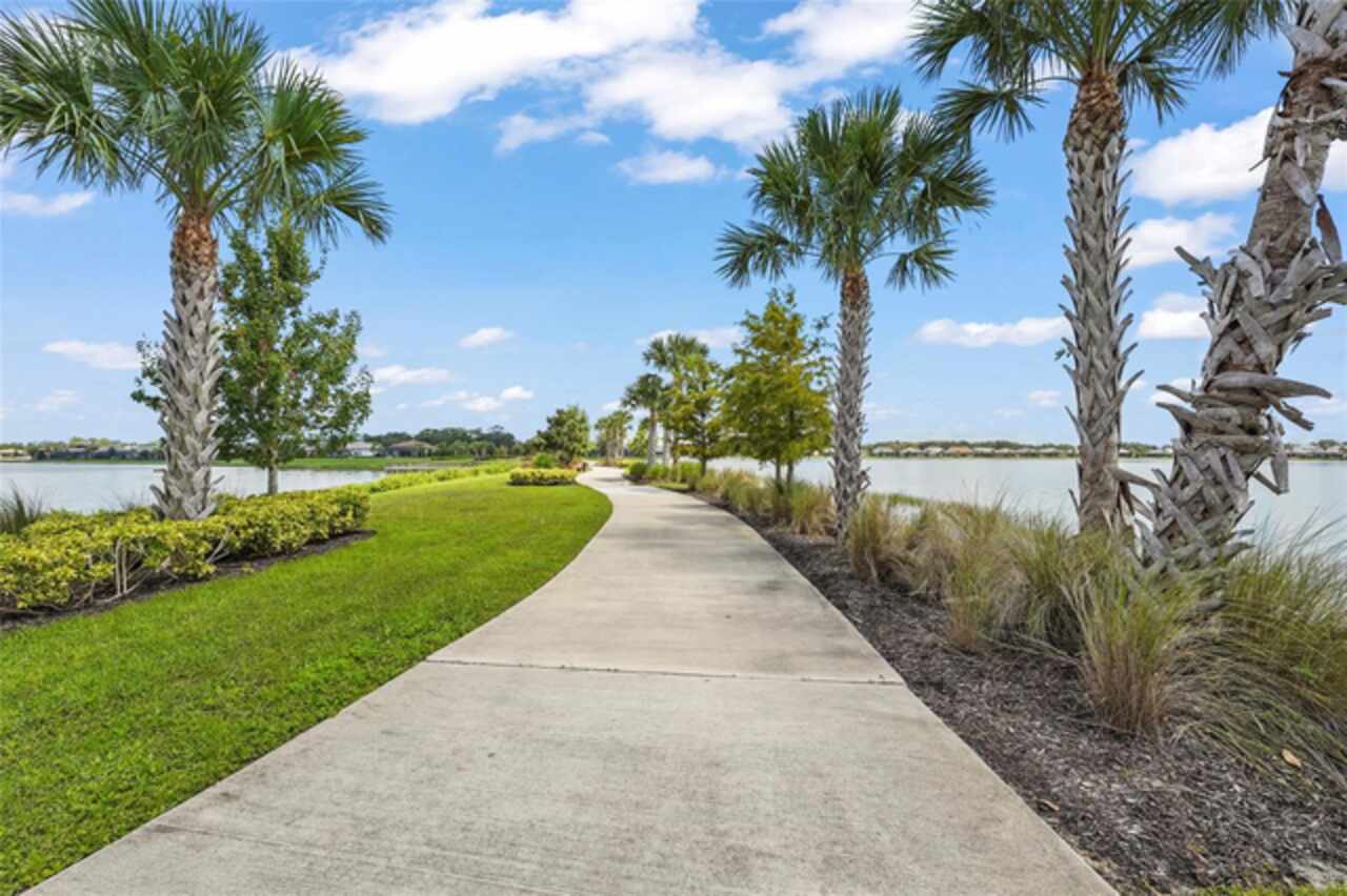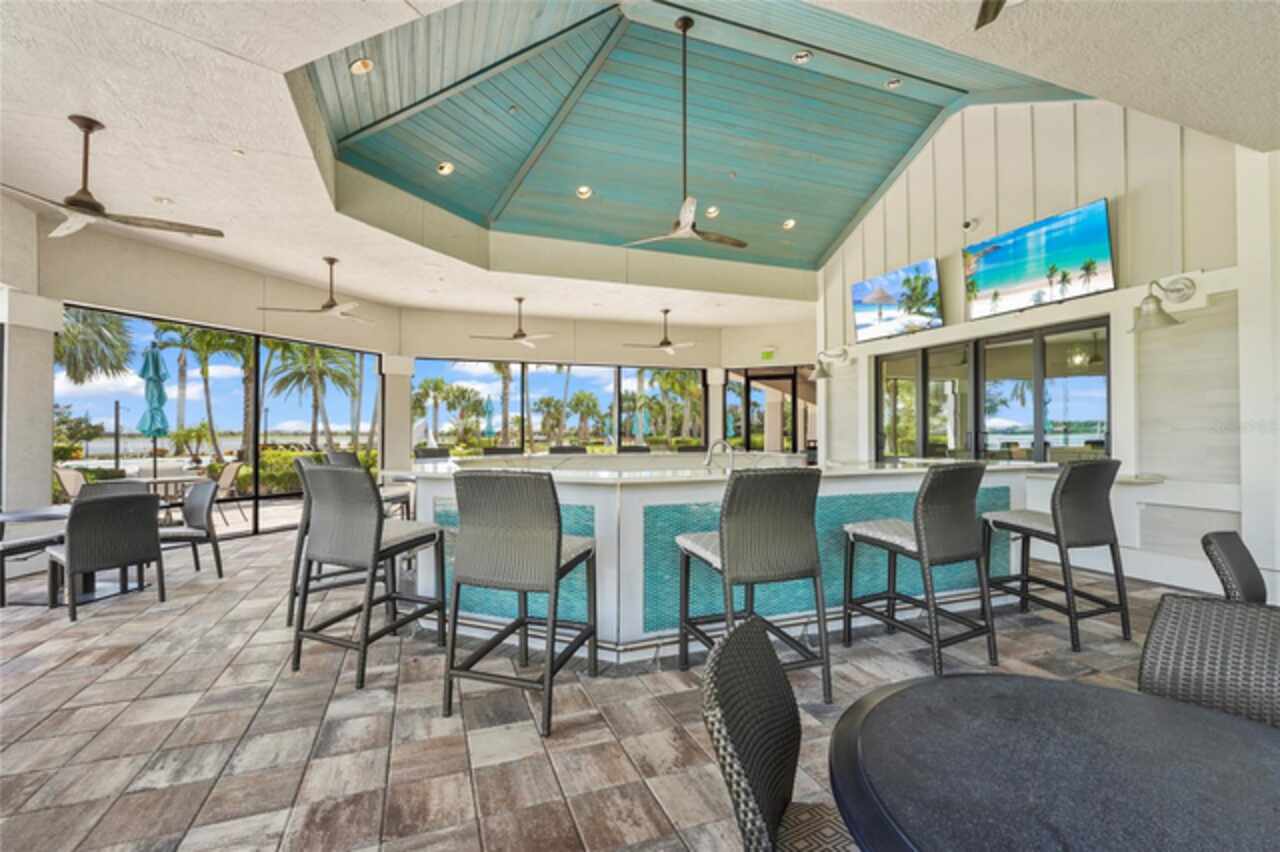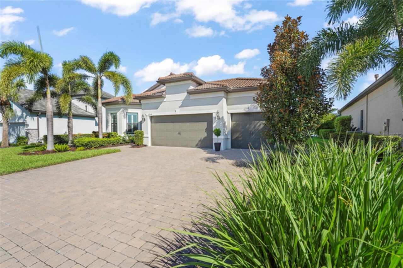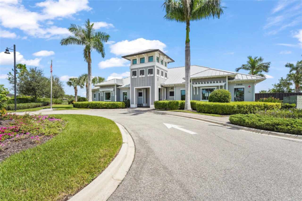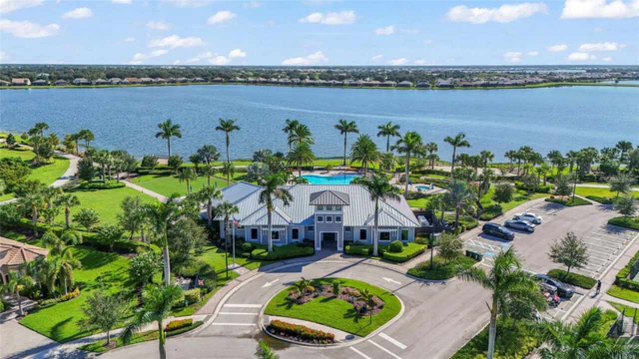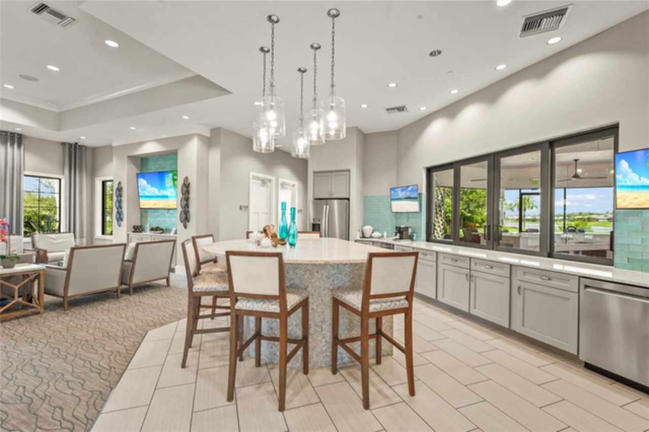 Welcome to luxury living in the sought-after Shoreview at Waterside community! This stunning 3-bedroom, 2-bathroom home offers an exceptional lifestyle with top-tier design elements and captivating water views. Situated on a low-traffic loop with green space across the street and serene water views behind, this residence blends elegance with privacy. Residents enjoy private access to community amenities just across the street in an exclusive enclave. Step inside to find wood-look tile flooring, plantation shutters, and coffered ceilings that add both style and warmth. The spacious primary suite features a custom walk-in closet and a spa-like en-suite bath with dual vanities. A private den/office provides the perfect work-from-home space. The chef’s kitchen impresses with quartz countertops, a KitchenAid stainless-steel appliance suite, gas range, and an arched entryway that opens to the family and dining areas. Enjoy a built-in dry bar and wine station with custom cabinetry, perfect for entertaining. The bump-out family room is anchored by a three-sided fireplace, adding ambiance to multiple spaces. Outdoor living shines with a fully equipped summer kitchen featuring a granite backsplash and stainless-steel countertops, a gas hookup, outdoor hood, and plenty of room to relax or entertain. The 3-car garage with an oversized bay and paver driveway offer both function and curb appeal. Additional highlights include laundry room built-ins, wiring and gas line installed for a future whole-house generator. Don’t miss your opportunity to own this beautifully appointed home in one of Lakewood Ranch’s premier communities.