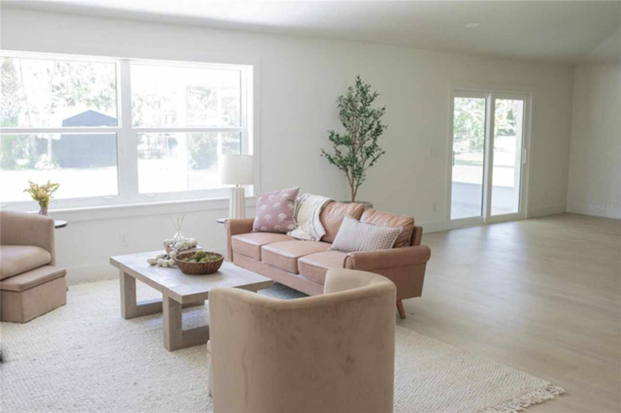 Modern 3 bed, 2 bath home with 1, 973 sq ft of renovated living space. Features a bright open floor plan with designer kitchen, quartz countertops, handmade tile, custom wood buffet, and soft-close cabinetry. Enjoy the ambiance of a custom electric fireplace and beautiful laminate wood floors throughout. The spacious primary suite offers a spa-like retreat with an oversized soaking tub and a large walk-in closet. You'll love the large laundry room and the inviting screened-in patio—perfect for Florida living. Situated on nearly ½ acre on a quiet street in the desirable Hammock area. Fully fenced yard, huge shed, and no HOA. Walk to the Intracoastal or drive just 2 minutes to the beach! This home also has SHORT TERM RENTAL RIGHTS, which makes for a great second home. Major upgrades: 2025 roof & AC, brand new impact windows and sliders, and a whole-house Generac generator for worry-free storms.