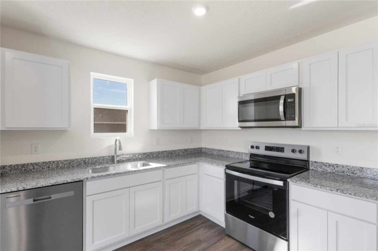 Discover Your Dream Home in the Palm Coast Signature Community! This COMPLETED Beaumont Plan features a spacious open-concept design, seamlessly connecting the Living, Dining, and Kitchen areas—perfect for relaxation and entertaining. Natural light fills the home through Low E insulated dual-pane vinyl windows, highlighting elegant Shaker cabinets, granite countertops and stainless steel appliances, including an electric smooth top range, dishwasher, and over-the-range microwave in the kitchen. Retreat to the expansive primary suite with a private bath, dual vanity sinks, and a generous walk-in closet. This home also offers two well-appointed bedrooms, a thoughtfully designed secondary bathroom, and a serene patio—ideal for enjoying morning coffee or sunsets. Experience modern living at its finest in this beautiful Beaumont Plan home, where comfort meets style!