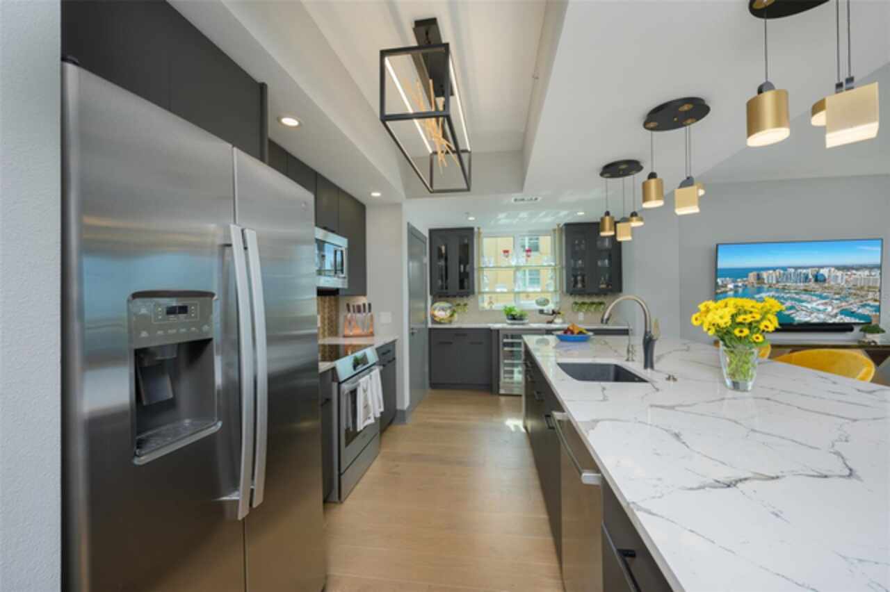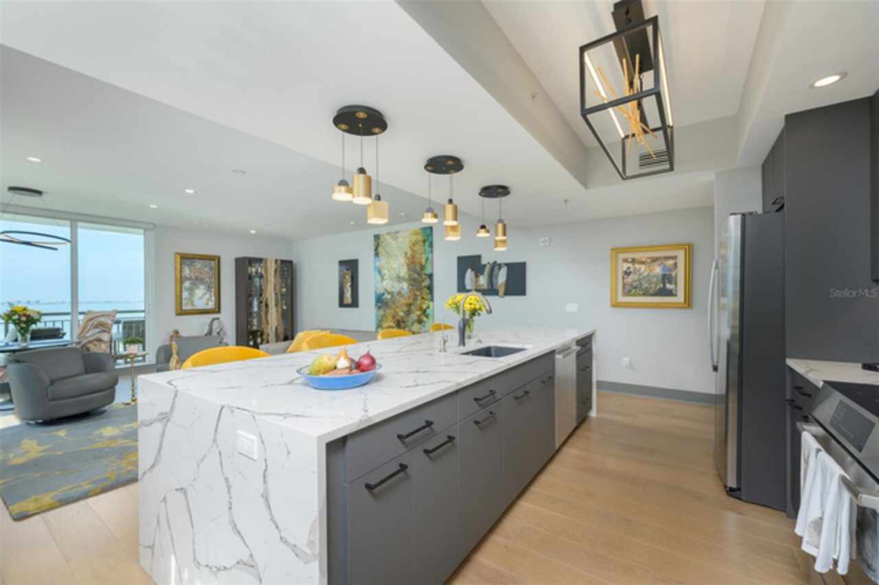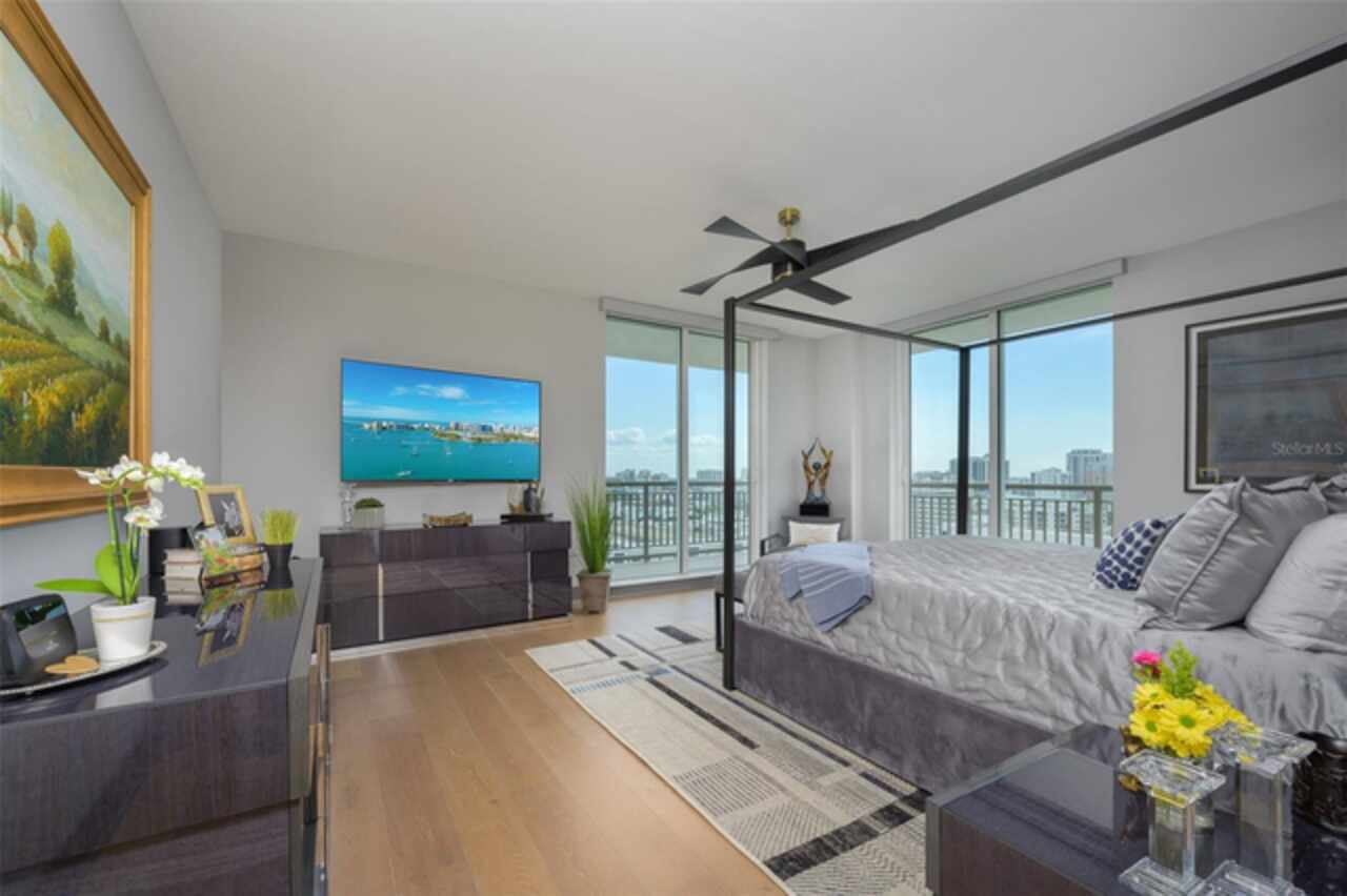 This extraordinary 12th-floor corner unit in the South Tower at Alinari offers panoramic bay and city views from every angle, making it an unrivaled gem in Sarasota's downtown bayfront. With a spacious layout featuring wrap-around balconies accessible from the main bedroom and living room, plus a third balcony off the guest bedroom, this condominium home feels like an extension of the beautiful outdoors. Upon entering, you’re greeted by high ceilings and luxurious wood flooring in the foyer, dining room, kitchen and living areas, exuding elegance and sophistication. The kitchen boasts quartz countertops and other thoughtful upgrades, enhancing functionality and beauty. The open-concept living spaces flow seamlessly, maximizing natural light and creating an inviting environment for entertaining or simply relaxing while enjoying the stunning vistas. The generously sized owner’s suite offers a private retreat, providing ample space to unwind in comfort. This home is in the heart of Sarasota’s vibrant downtown, where culture, art and entertainment come together with luxury living. You’re just steps from iconic landmarks such as the Van Wezel Performing Arts Hall and Sarasota’s cultural heart. Whether you enjoy world-class performances one night or a serene visit along the bay the next, all of this is within reach from your front door. For those seeking convenience, a second parking space conveys, and top-of-the-line amenities are right at your doorstep. The building offers 24-hour security, a heated lap pool and spa, a state-of-the-art fitness center, media room, business center, library, wine cellar and more. Whether you’re hosting friends in the large club room, relaxing in the sauna or enjoying the outdoor grilling area, this residence is designed to offer you an elevated lifestyle. Step outside and witness the exciting future of Sarasota Bay with the transformation of The Bay Sarasota, an ambitious development that’s creating a cultural and economic legacy for the region. In this prime location, you’ll have unparalleled access to fine dining, shopping and the burgeoning Rosemary District. Plus, Lido Beach is just a short drive for the ultimate escape. This is your chance to own a piece of Sarasota’s future, where the city meets the sea, and every aspect of your lifestyle is catered to. Don’t miss the opportunity to make this extraordinary home yours.