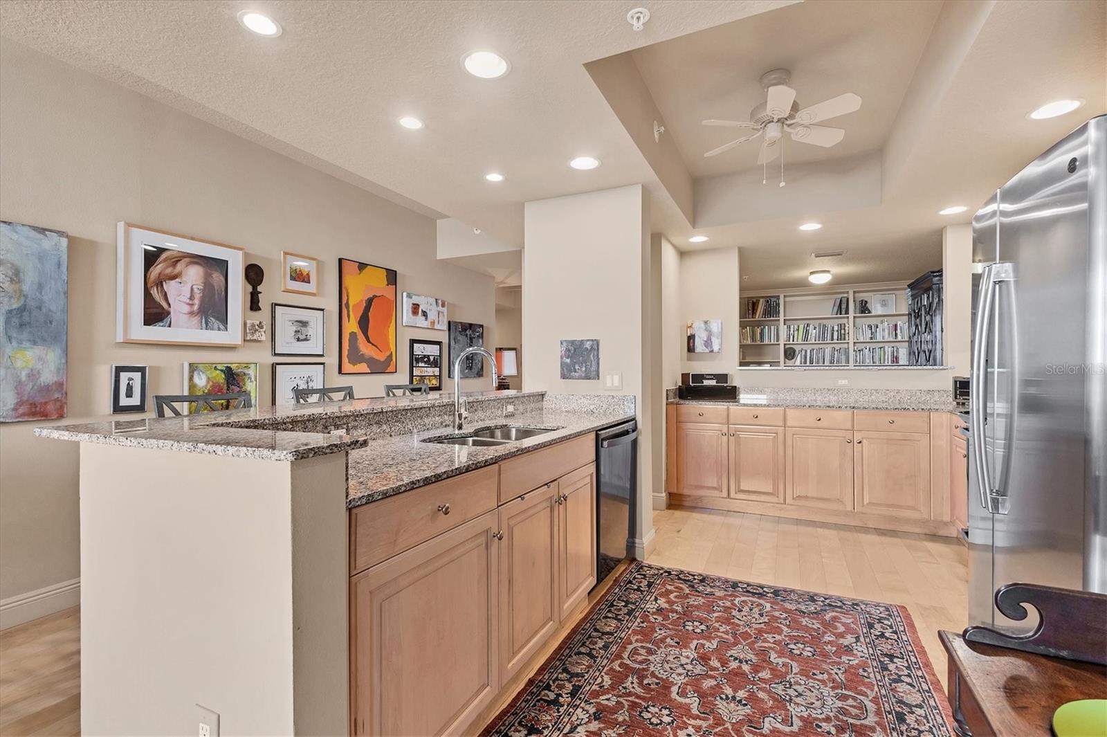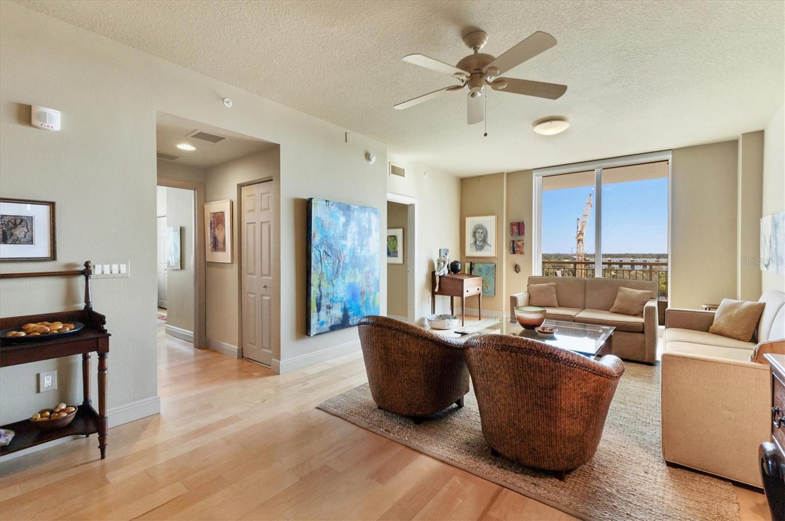 Live effortlessly in this stunning corner-unit residence located in Downtown Sarasota’s coveted Rosemary District. With 1, 484 sq. ft., two bedrooms plus a den, and two full baths, this home perfectly blends style and comfort. Natural light pours through large windows, accentuating the elegant maple hardwood floors and high ceilings. The chef’s kitchen is a showpiece—featuring custom cabinetry, expansive countertops, and a central island designed for entertaining. The den, with built-in shelving, provides the ideal space for a home library or creative studio. The primary suite offers serene comfort with thoughtfully designed closets and refined finishes. Additional highlights include electric blinds, a covered terrace, a temperature-controlled storage unit, and a dedicated parking space. The community’s amenities are unparalleled—offering every convenience imaginable, including 24/7 concierge services, guest parking, three guest suites, on-site management and maintenance, a lap pool, spa, sauna, fitness center, movie theater, club room, billiards and game lounge, business office, library, dog run, wine-tasting room, and EV charging stations. Internet and streaming services are included in the HOA for added convenience. Enjoy a true sense of community with monthly resident events designed to bring neighbors together. Savor the best of Sarasota—fine dining, the Van Wezel Performing Arts Hall, and the vibrant downtown scene—all just steps from your door.