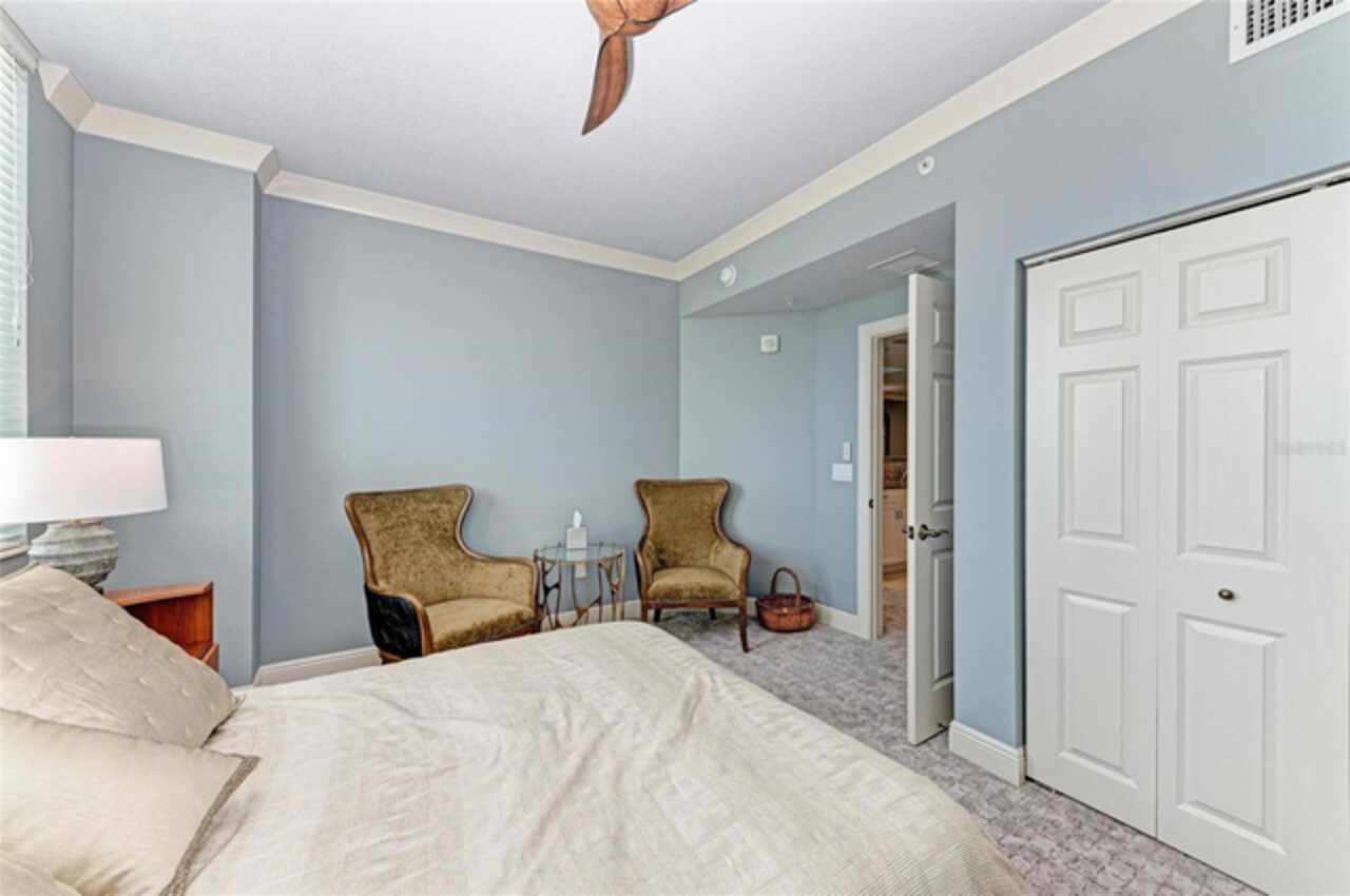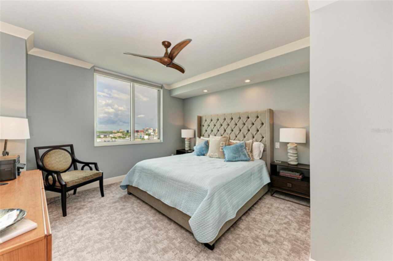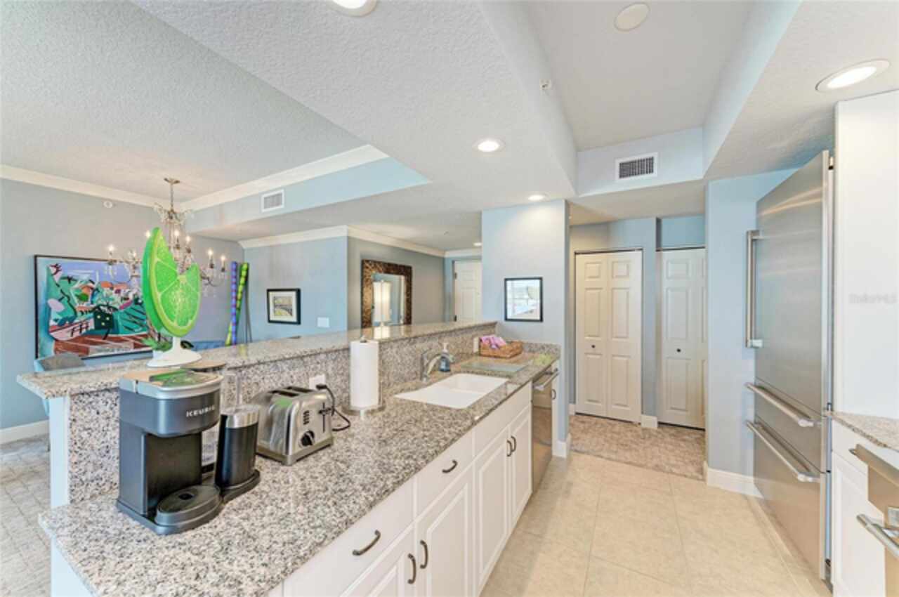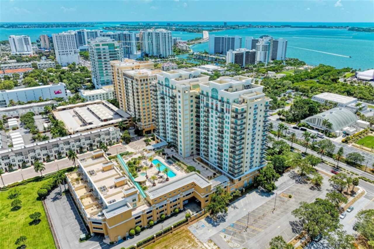 --Experience 10th-floor panoramic views in this highly sought-after “Cellini” split floor plan—1, 323 sq. ft. of refined living in the heart of Downtown Sarasota. This 2-bedroom, 2-bath luxury residence showcases soaring ceilings, expansive windows, and a bright open concept design perfect for entertaining. The gourmet kitchen boasts granite counters, light color coastal cabinetry, and brand new 2025 Thermador appliances. The spacious primary suite features a custom walk-in closet, double vanity, soaking tub, and separate shower. The private guest bedroom and bath are thoughtfully positioned on the opposite side of the home. Recent updates include a new HVAC system (2025), fresh paint, and elegant crown molding. Resort-style amenities include an 80-ft. Jr. Olympic heated pool and spa with cabanas, sauna, the largest fitness center in Downtown Sarasota, 24-hour concierge, secure garage parking, wine storage and tasting room, guest suites, business center, movie theater, and vibrant social activities. Enjoy plush silk-thread carpeting, ceramic tile flooring, and a large private utility room with full-size washer/dryer. Located across from the Van Wezel Performing Arts Hall, and just minutes to The Bay’s 53-acre waterfront park, the Ballet, Opera House, shopping, fine dining, and a quick trolley ride to Lido Beach and St. Armands Circle. Investor-friendly opportunity!