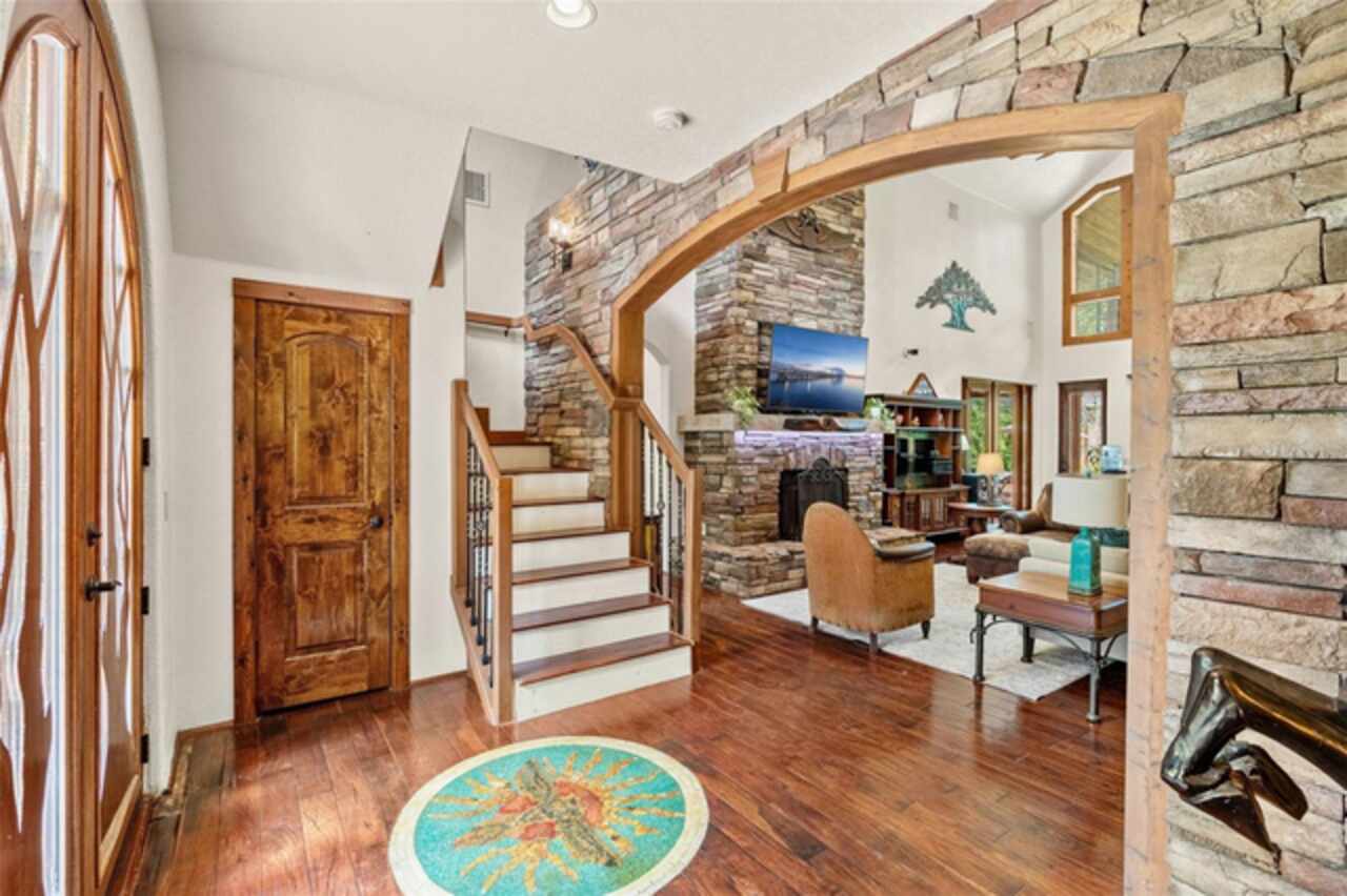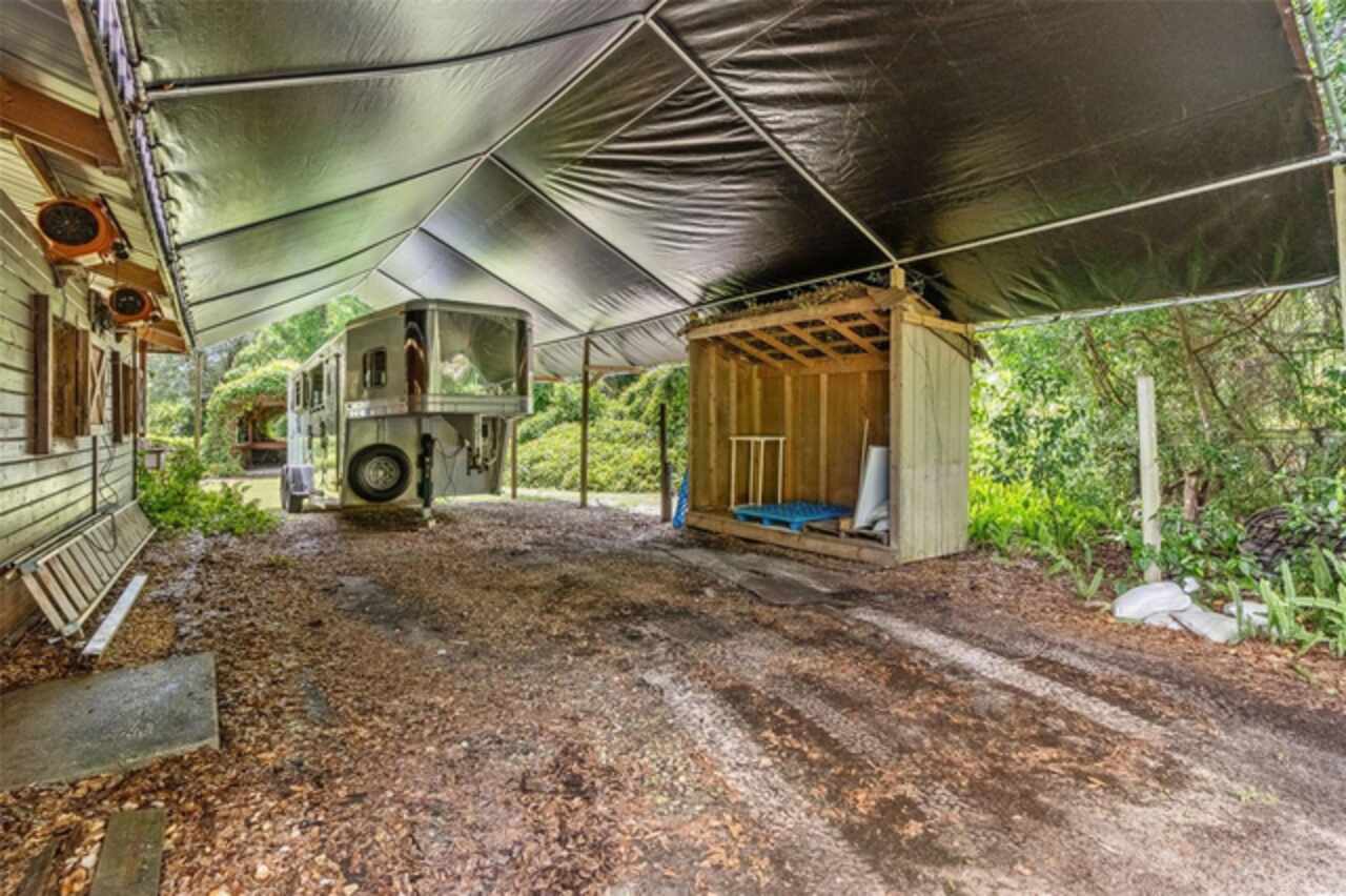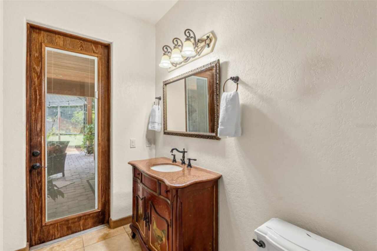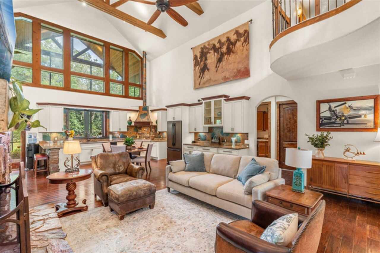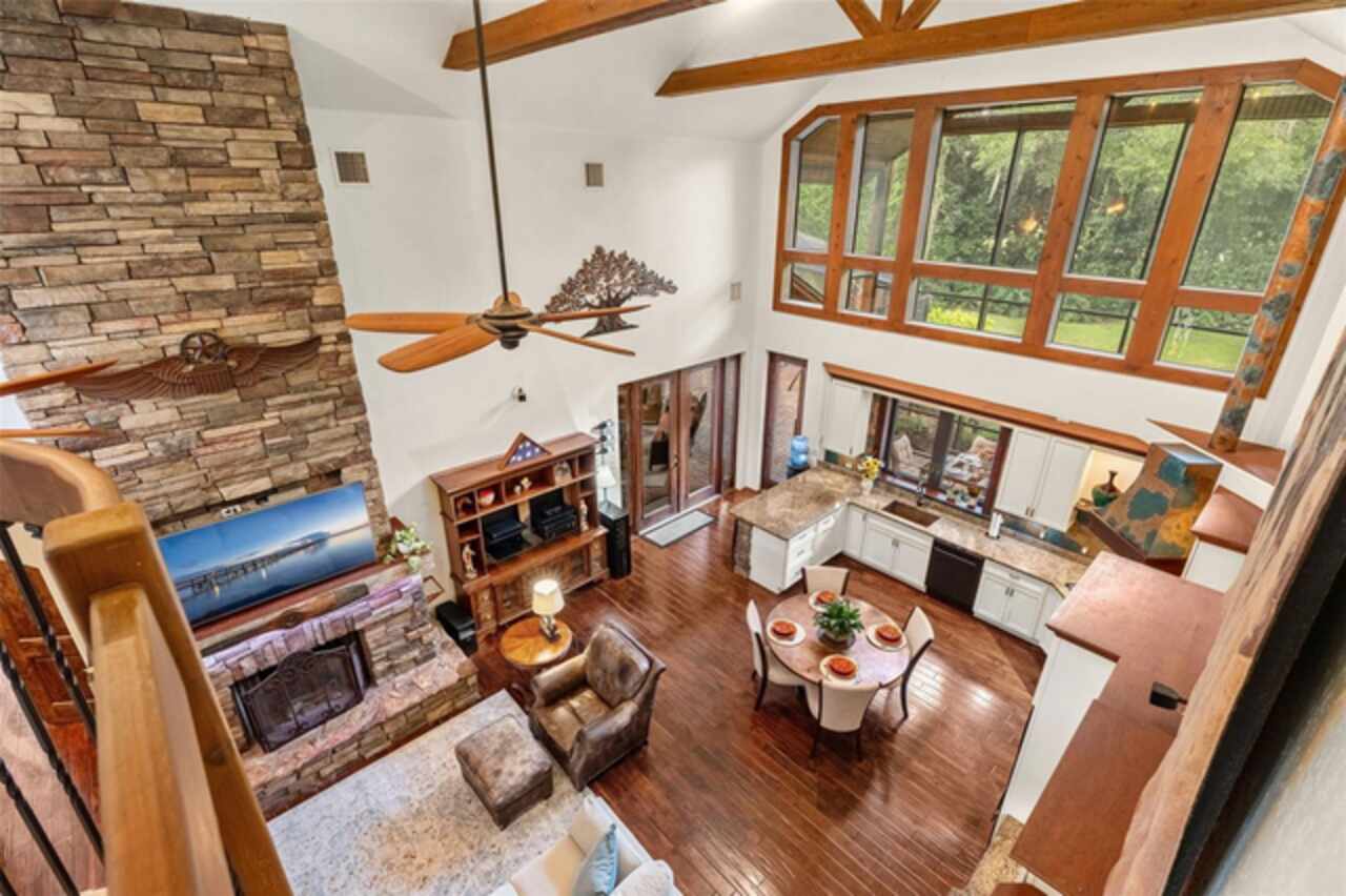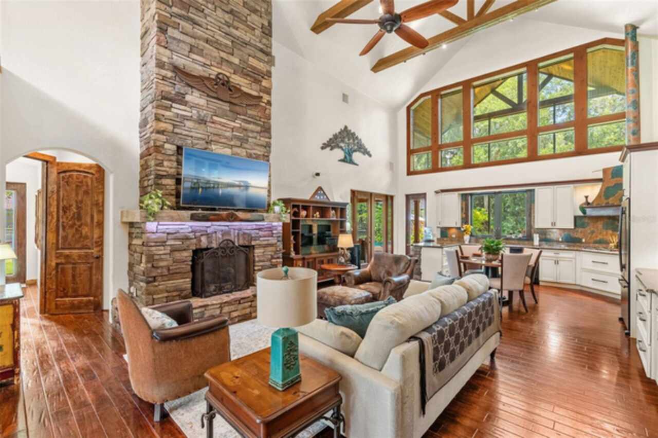 Under contract-accepting backup offers. Welcome to a refined country living where luxury meets farm and charm. This custom 3, 114 sq ft home sits on 2.75 acres of high-and-dry and offers 3 bedrooms, 3.5 baths, and the perfect layout design for multi-generational living. Soaring 27-foot ceilings with exposed wood beams, acacia wood flooring, specialty lighting, and handcrafted double front doors create the warm sense of elevated rustic elegance. The gourmet kitchen features a gas Wolfe cooktop with a vented hood, oil-rubbed bronze Jenn-Air appliances including a fridge, microwave/oven stack, and Zline dishwasher (2025). Off-white soft-close cabinetry, under-cabinet lighting, granite countertops, a weathered copper backsplash, and a full butler’s pantry with extra storage complete the space. Each of the three-bedroom suites feature their own living space and include walk-in closets as well as ADA-accessible bathrooms. The main ‘primary’ suite offers built-ins, a large walk-in closet, and direct pool access as well as access to its own porch. The other downstairs primary can function as a private apartment with its own living room, kitchenette, entrance, and parking pad. The upstairs suite includes a lounge, bar fridge, full bath, and walk-in closet. A loft/office space on the second floor overlooks the living room and opens to the upstairs patio. A half bath is also available downstairs for guests. The laundry room with utility sink and custom cabinetry is also located on the first floor. Outdoor living includes a 27-foot tall screened lanai with dining area, a full outdoor living room with wood burning fireplace, an 18, 000-gallon lap pool, and an outdoor shower. For equestrian lovers, the fully equipped barn includes two-stalls (12x12 and 10x12) with stall mats and overhead blowers, an exterior wash rack, grooming stall, feed room, and best of all, climate-controlled tack room! A secondary circular drive wraps around the barn and leads to a covered awning for truck and trailer parking, making loading and unloading easy. There is also a washer/dryer hookup in the barn. Two fenced pastures provide plenty of room for horses, and a golf practice net adds even more versatility to the land. The attached two-car garage includes custom storage and a built-in workbench. Additional home features include three fireplaces (two gas, one wood-burning), plenty of built-in storage opportunities, custom wrap-around stair railing, a whole-home Generac generator, a whole-home water softener, double-paned windows. Recent upgrades include two HVAC systems replaced in 2024 and 2025, one of two tankless water heaters replaced in 2024. New roof installed September 2025!