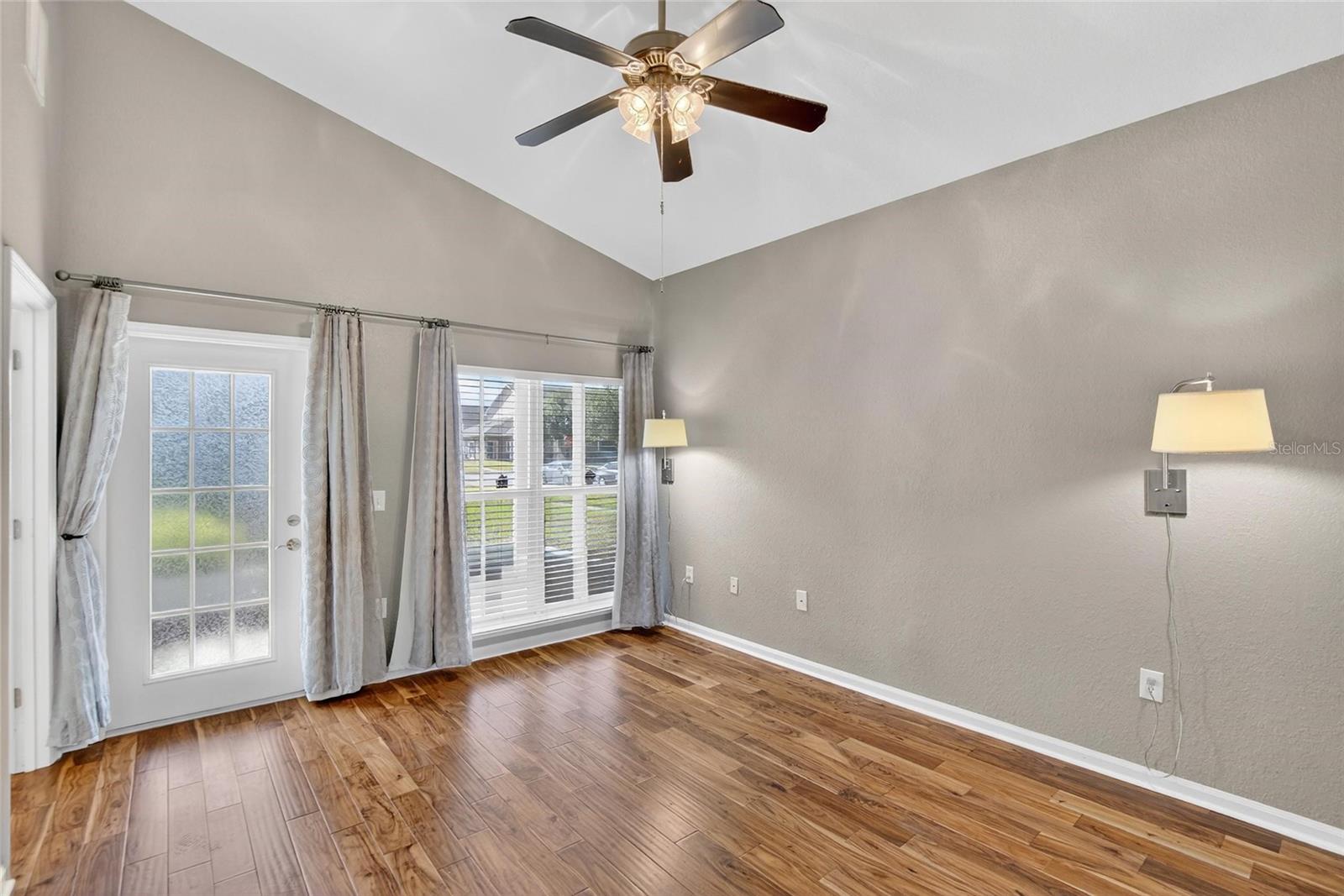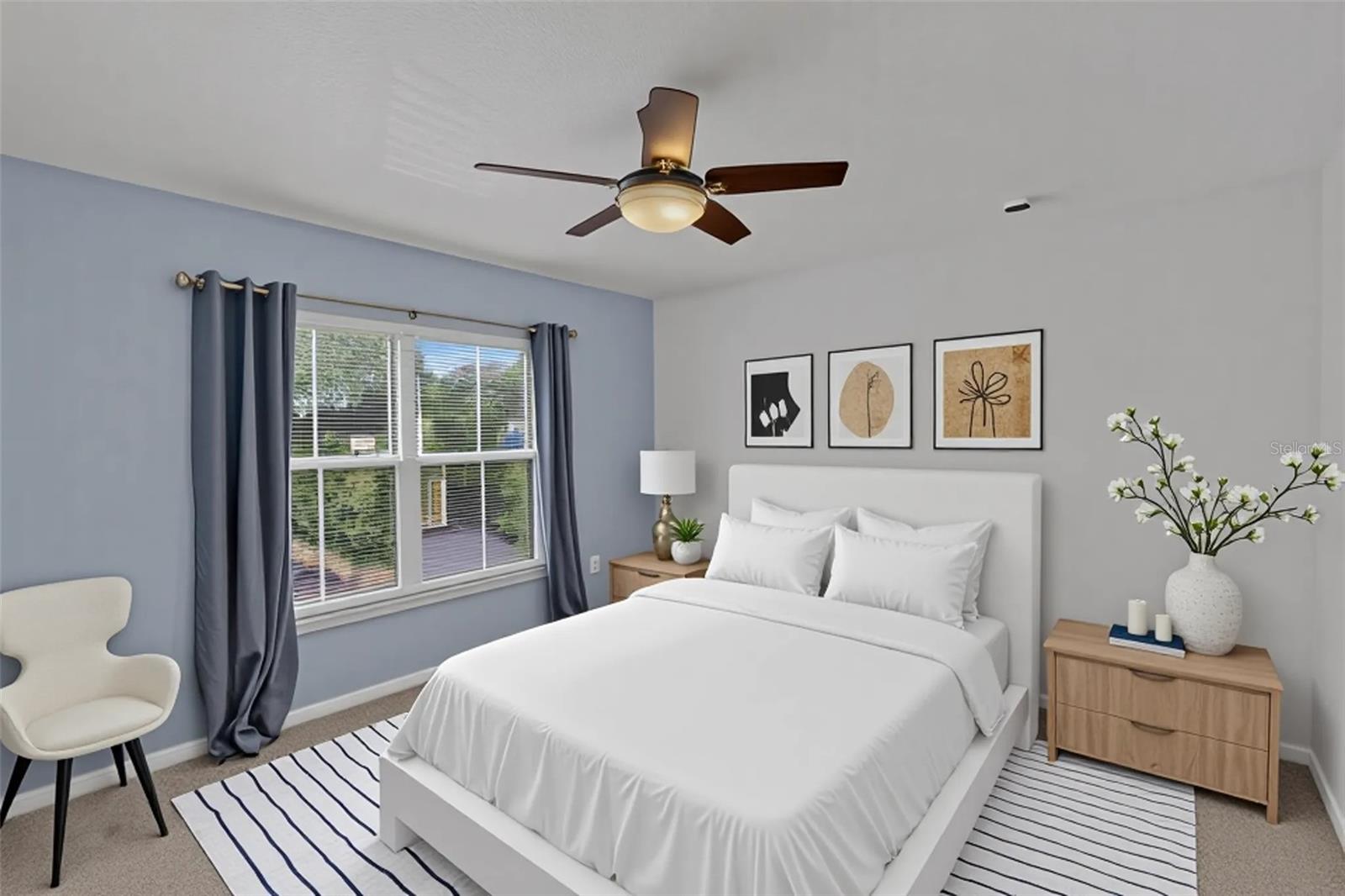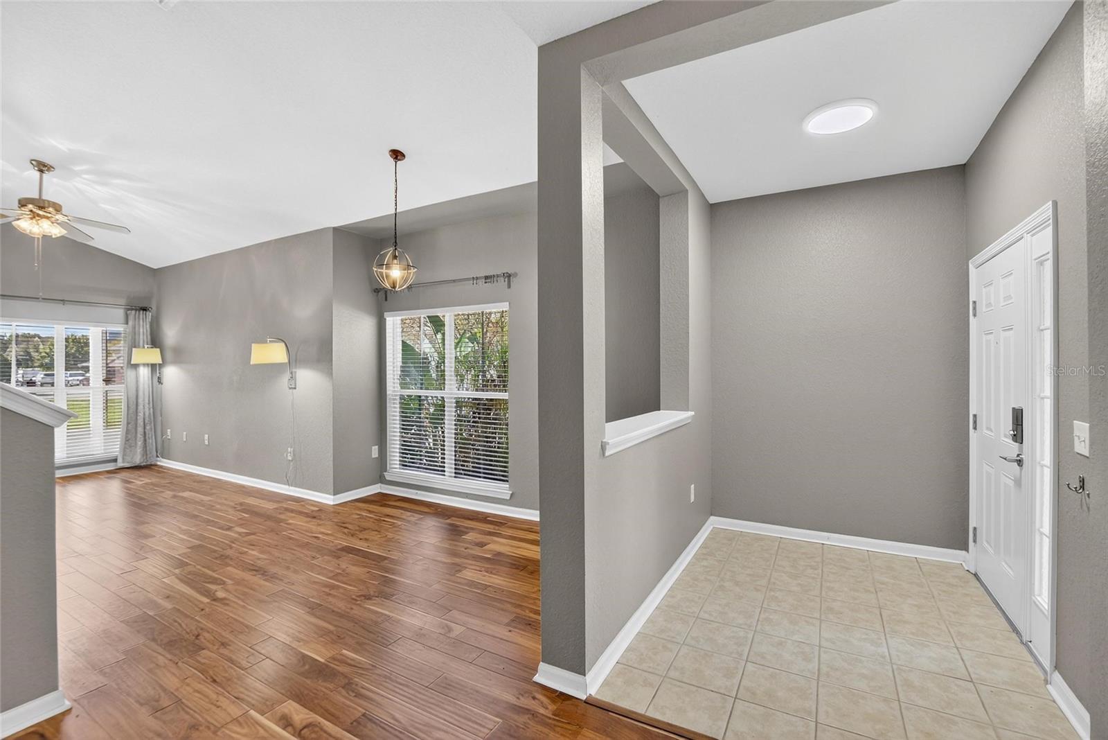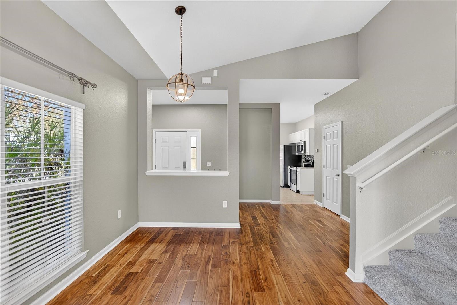 Eat-in Kitchen, High Ceilings, Primary Bedroom Main Floor, Thermostat, Walk-In Closet(s), Window Treatments