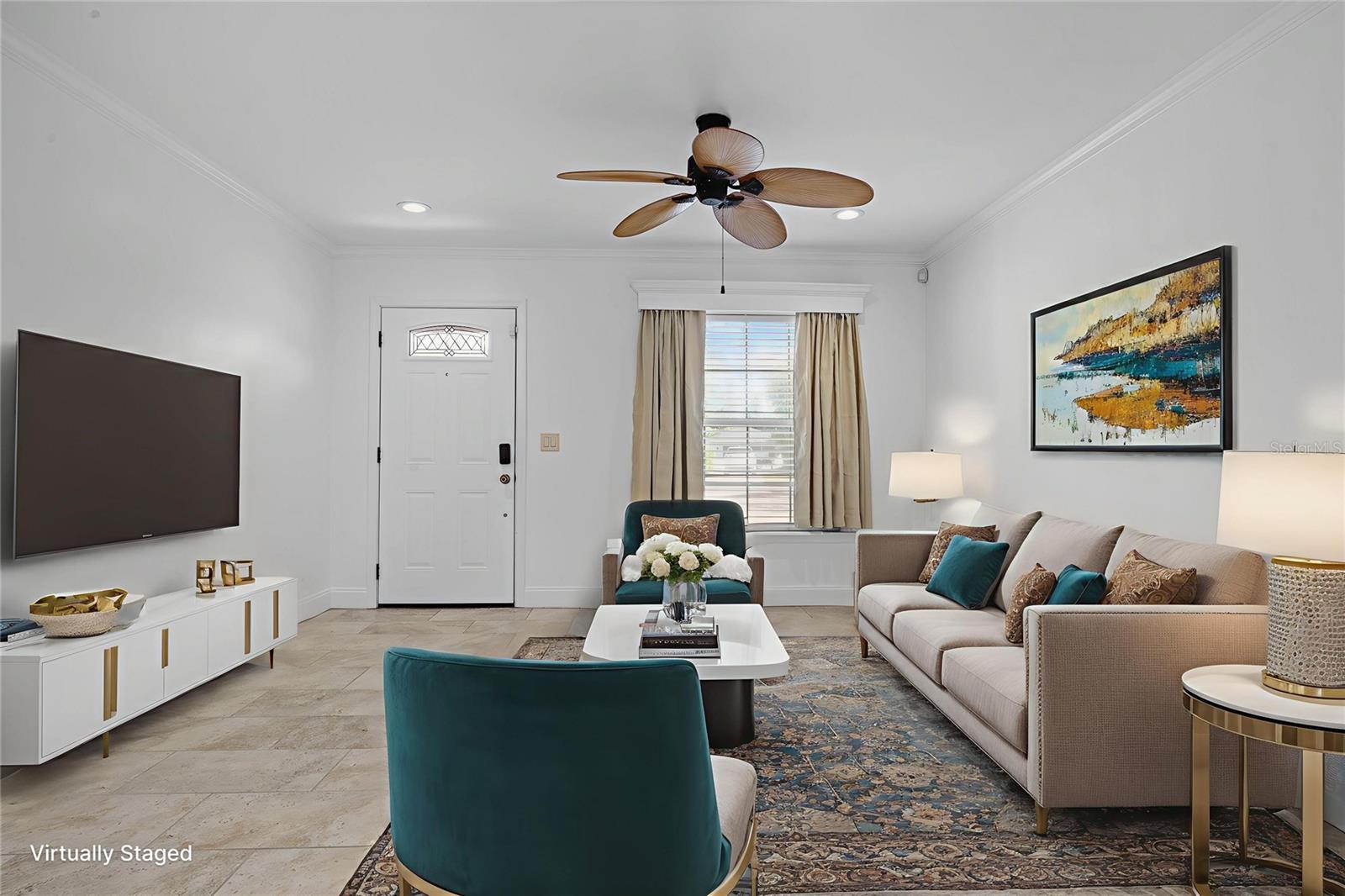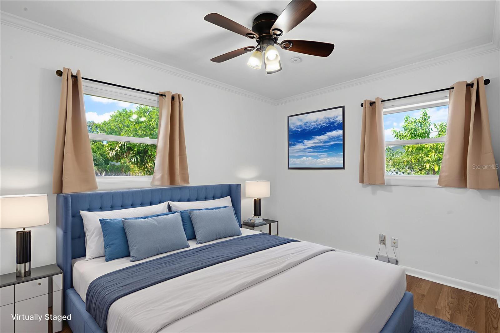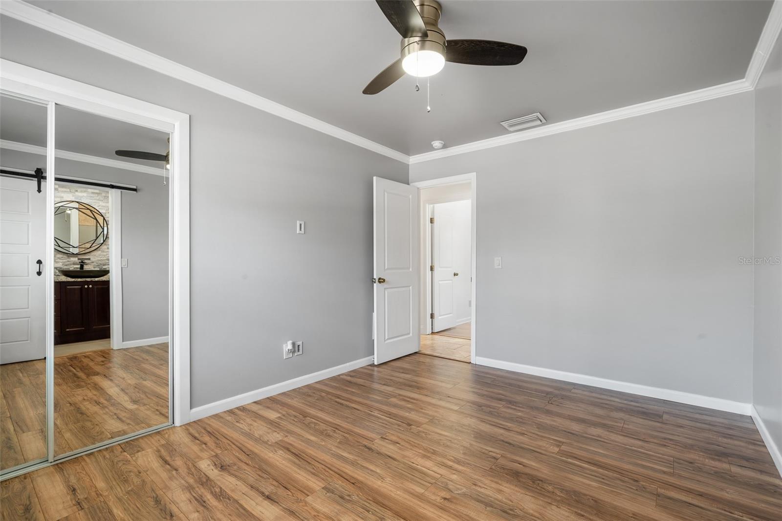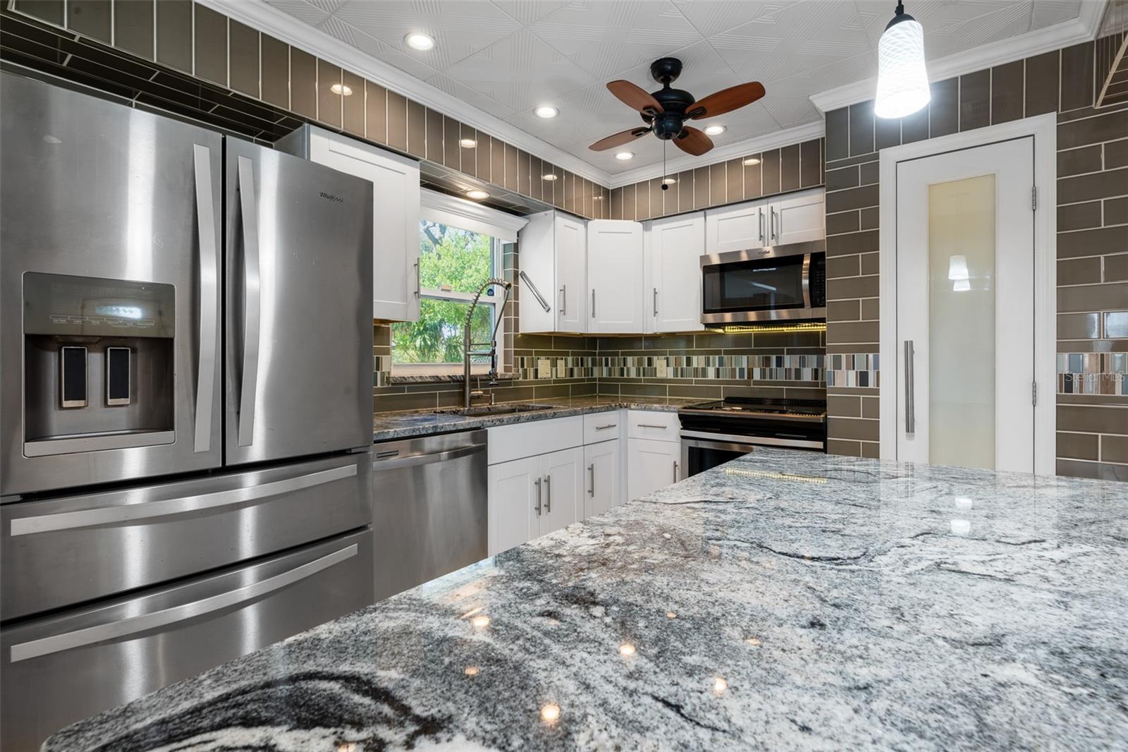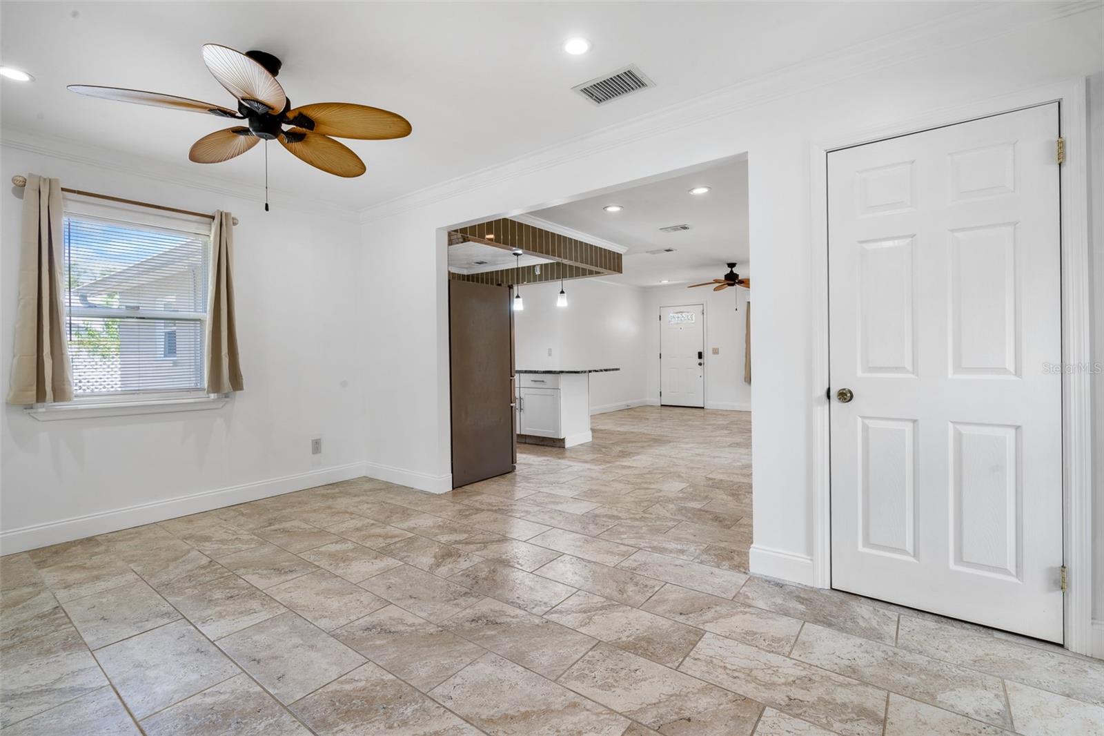 Ceiling Fans(s), Crown Molding, Eat-in Kitchen, Kitchen/Family Room Combo, Primary Bedroom Main Floor, Solid Wood Cabinets, Stone Counters, Thermostat
