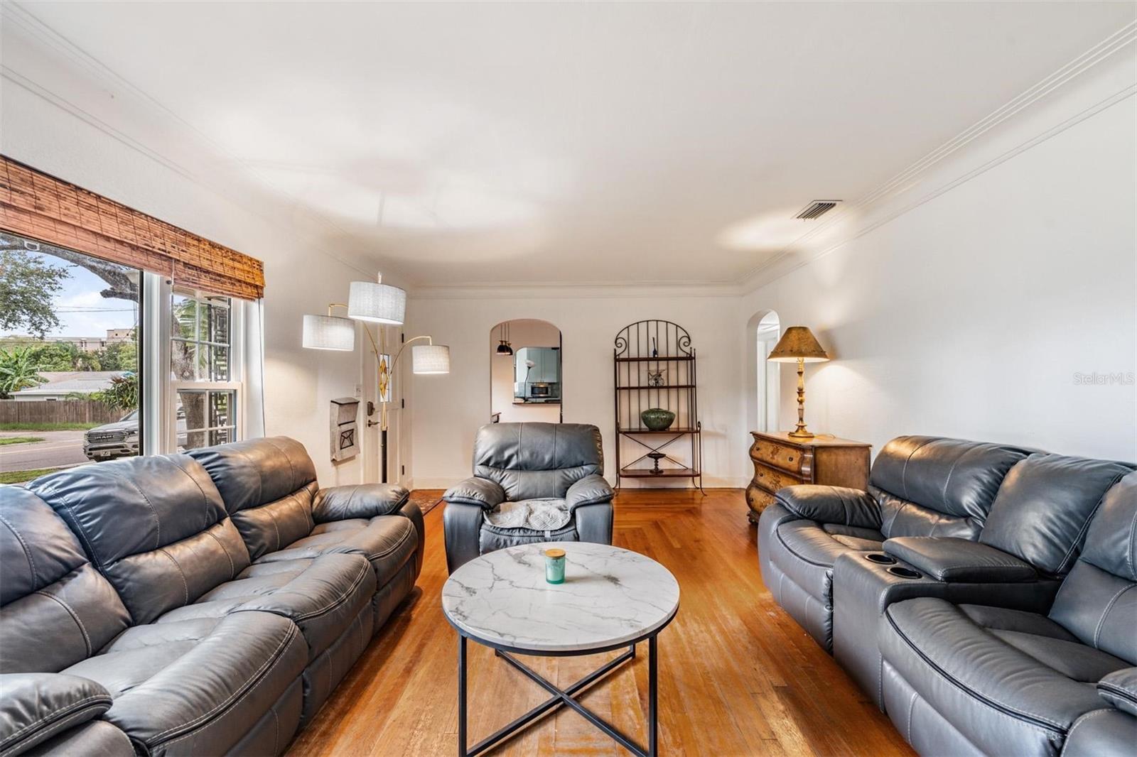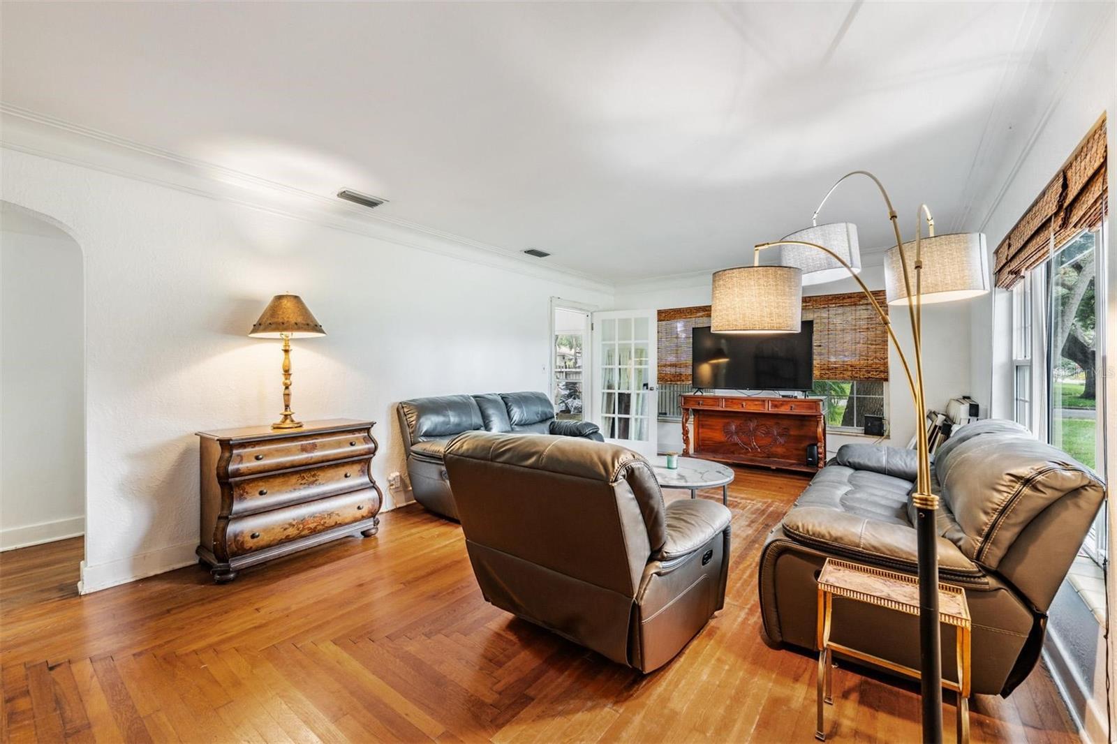 Live, Work & Play in the Heart of Timeless Kenwood! Step into a home that captures the best of St. Pete’s historic charm with modern comfort and unforgettable character. Inside, you’ll fall in love with the original hardwood floors, arched doorways, and classic cove ceilings that tell the story of another era—beautifully complemented by a stylish gas kitchen designed to inspire your inner chef, complete with a brand-new gas range. The master suite offers a private retreat for you or guests, while the massive double lot surrounded by lush greenery creates your own backyard oasis—with plenty of room to build the garage of your dreams. Enjoy poolside relaxation, a powered metal-roof shed, and an authentic 1943-stamped shuffleboard court—a playful nod to St. Pete’s vintage roots. With a metal roof, dual AC units, and major system upgrades (2023–2025), this home blends old-world craftsmanship with modern peace of mind. Located in the Artist Enclave of Historic Kenwood, you can live, work, and create in one of St. Pete’s most celebrated neighborhoods—just minutes from downtown and a short drive to the beaches. Privacy, personality, and preserved charm—this Kenwood classic has it all!Fun fact: Founded in 1924, the St. Petersburg Shuffleboard Club is the oldest and largest shuffleboard club in the world—making this home’s shuffleboard court an iconic nod to local history! Privacy, character, updates, and unbeatable location—this home has it all!