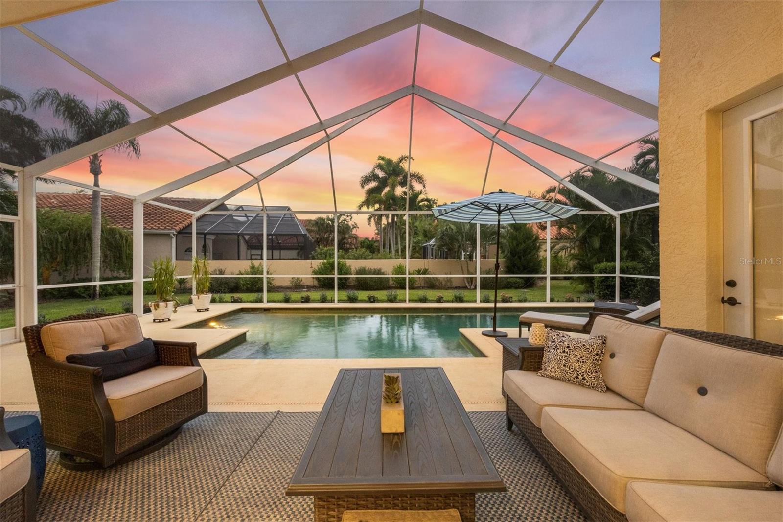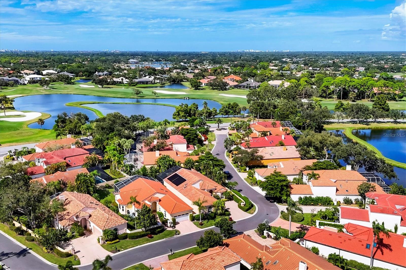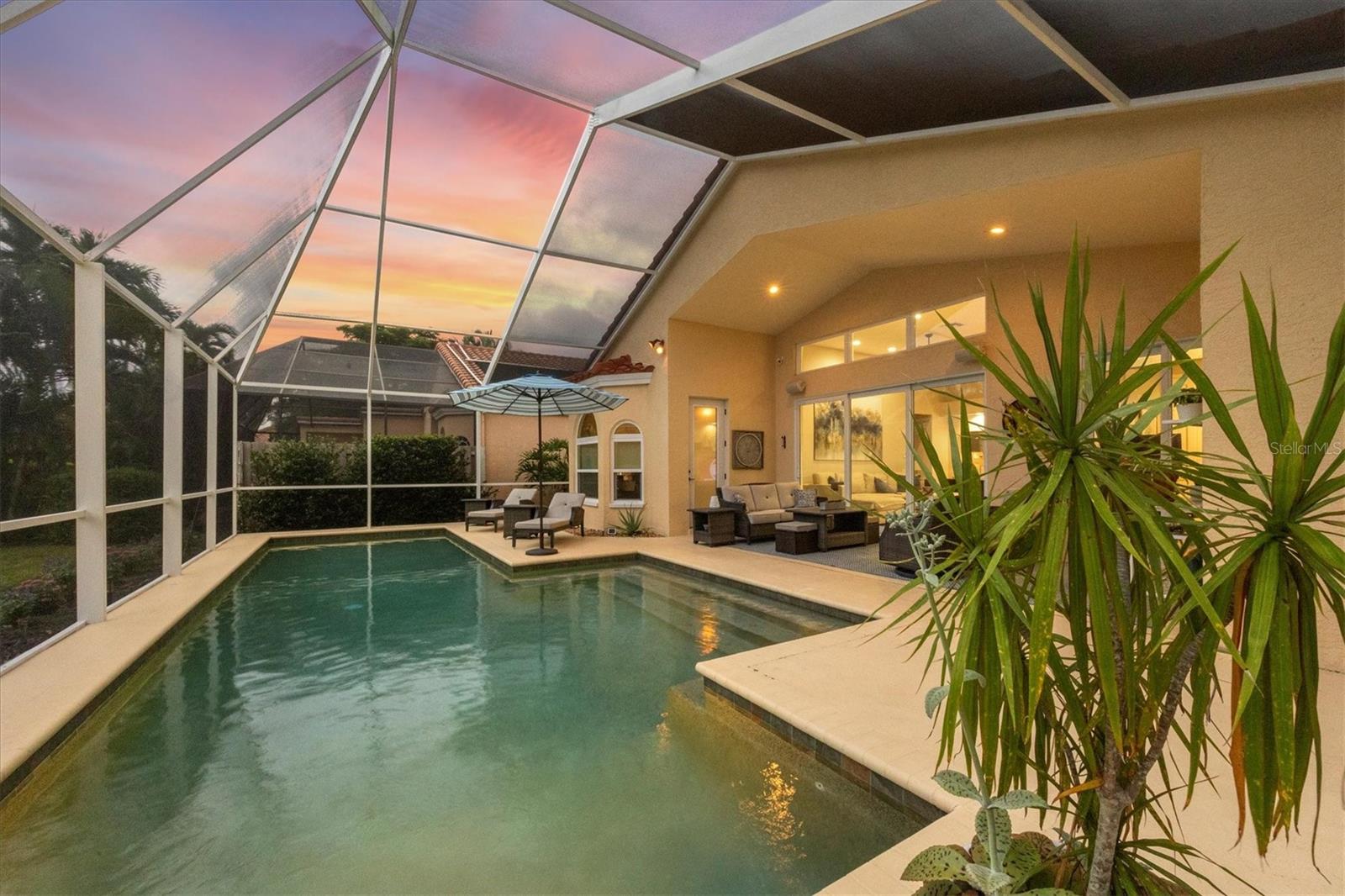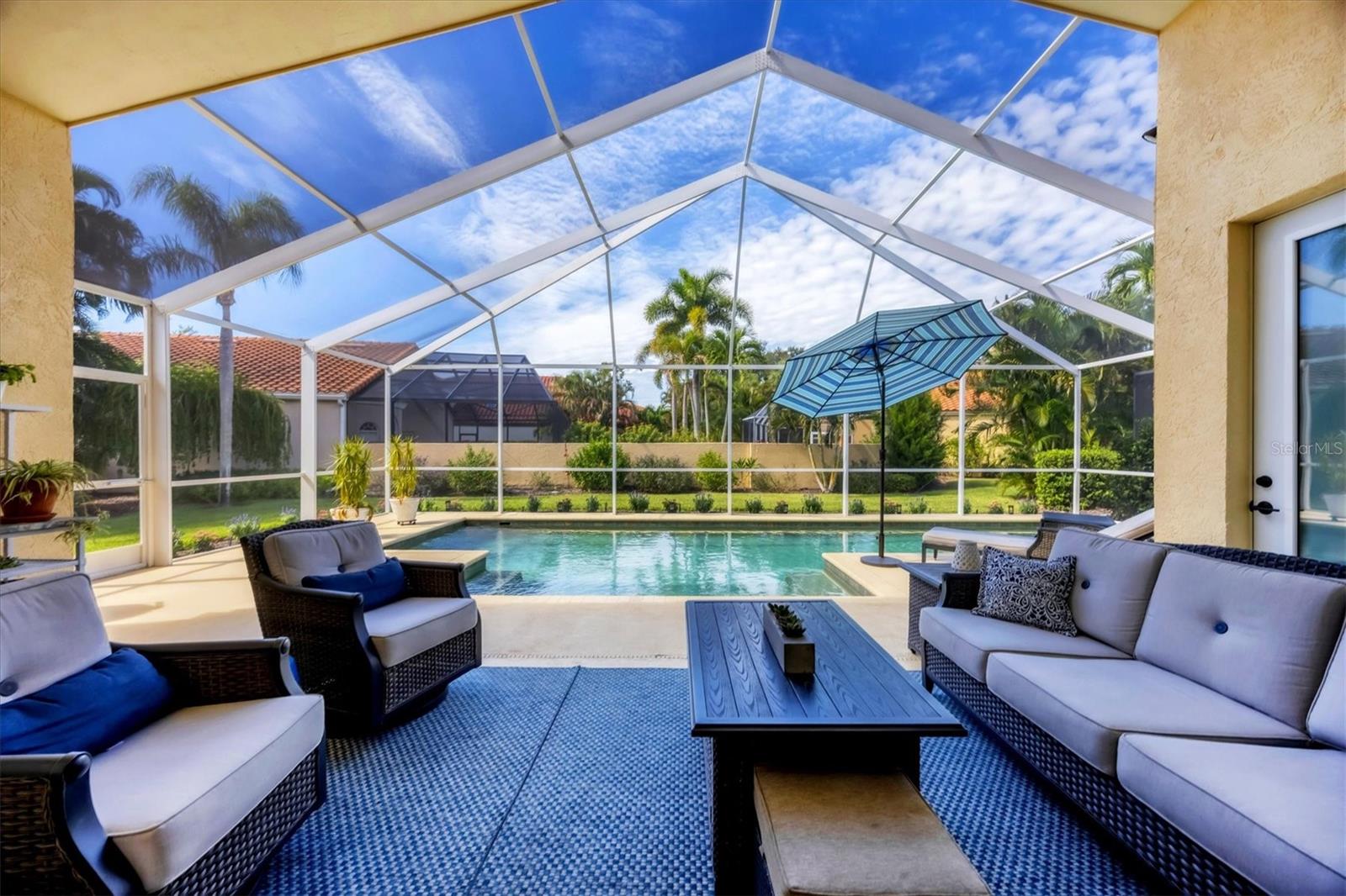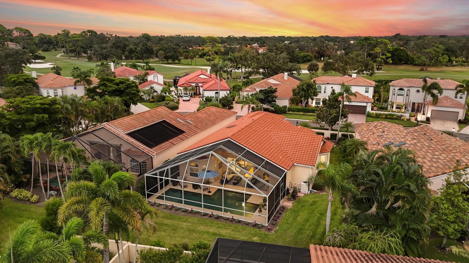 Elegant Updated Home in Prestancia – Sarasota’s Premier Gated Golf Community. Nestled within Prestancia, one of Sarasota’s most sought-after gated golf communities, this beautifully updated residence blends timeless architecture with sophisticated modern design. Featuring 3 bedrooms and 3.5 baths, the home is perfectly situated on a beautifully landscaped homesite that offers both privacy and curb appeal. A covered front entry, framed by lush tropical landscaping, welcomes you inside. The open-concept floor plan unfolds through an airy foyer with tall ceilings, a modern chandelier, and rich wood flooring that flows seamlessly throughout the main living areas. Clear sightlines extend through the kitchen, dining, and living spaces to the lanai and pool beyond. Remodeled in 2020, the kitchen is a showpiece with custom white Shaker cabinetry, quartz countertops, a custom tile backsplash, and dark oil-rubbed bronze hardware. A large peninsula with seating, recessed lighting, and a window for natural light complements stainless steel appliances, a bar area with floating shelves, and a wine refrigerator. The adjacent dining area features a bay of windows, an orb-style chandelier, and serene garden views. The great room impresses with expansive sliding glass doors and transom windows that fill the space with natural light. A built-in entertainment wall, neutral tones, and wood floors create a relaxed yet elegant ambiance. An additional family room, centrally located between the kitchen, dining, and lanai, offers versatile space for lounging, media, or gatherings. The primary suite is a private retreat featuring high ceilings, a modern ceiling fan, and soft garden tones. A bay of arched and picture windows frames tranquil views of the pool and lush landscaping. The primary bath, fully remodeled in 2021, showcases dual vanities with quartz countertops, contrasting cabinetry, framed mirrors, a frameless walk-in shower with rain and handheld heads, a deep soaking tub, and a private water closet. Two guest suites are thoughtfully positioned for privacy, each with its own en-suite bath. The first guest suite offers a spacious closet and an updated bath (2022) featuring a dark gray vanity, quartz countertop, and brushed-nickel hardware. The second guest suite, currently used as a Den/Multipurpose Room, includes wood floors and sliding glass doors opening directly to the lanai. Its bath (remodeled in 2019) features updated tile, vanity, and lighting—and conveniently doubles as a pool bath. A stylish half bath, refreshed in 2020, serves guests from the main living area. Designed for effortless outdoor living, the screened lanai—rescreened and repainted in 2023—surrounds a heated pool (new heater 2019) with a spacious deck and multiple lounging areas, all bordered by lush landscaping for privacy. Additional updates include: 2020 electrical panel upgrade, 2023 landscaping refresh, 2024 impact-rated windows and doors, 2025 new garage door. Residents of Prestancia enjoy 24-hour gated security, tree-lined streets, and pet-friendly surroundings with sidewalks ideal for walking and biking. HOA fees cover landscape maintenance, irrigation and pest control, while optional membership at TPC Prestancia offers access to championship golf, a clubhouse, and a vibrant social scene—all just minutes from Siesta Key beaches, the Legacy Trail, dining, and shopping.