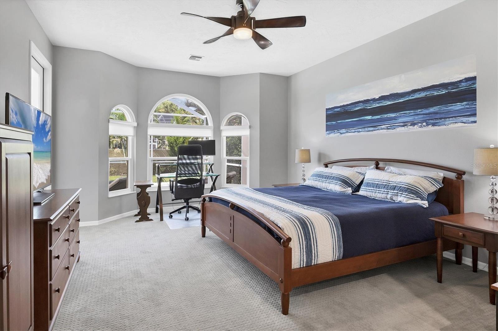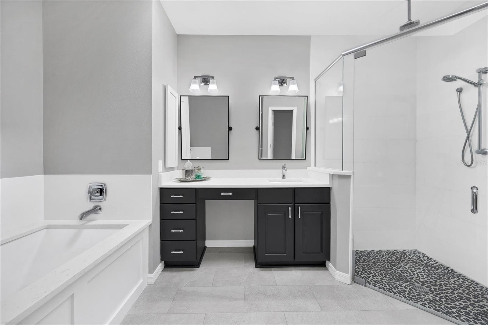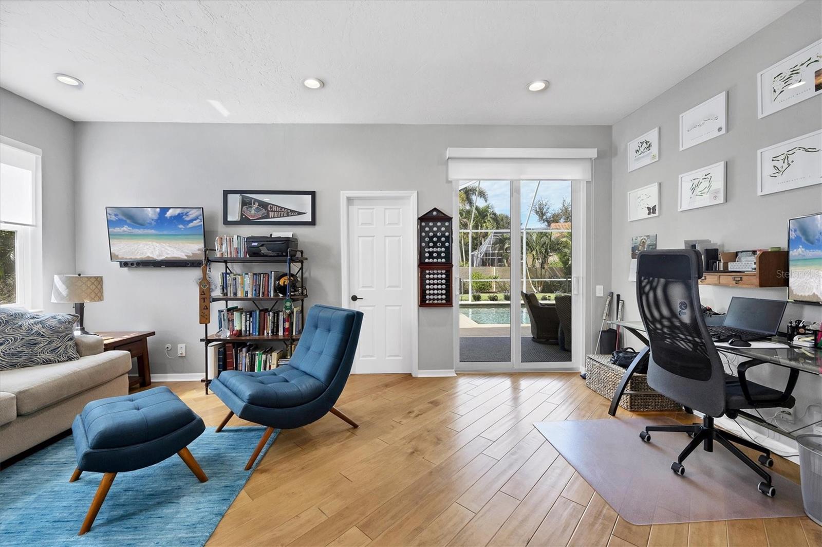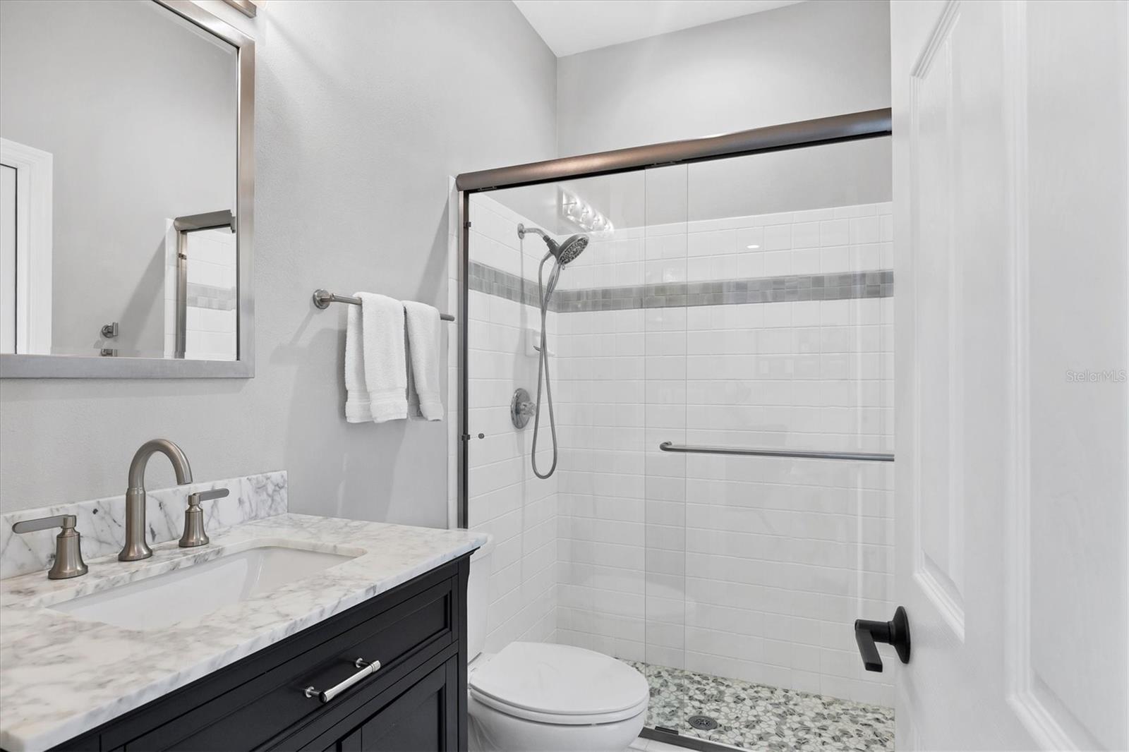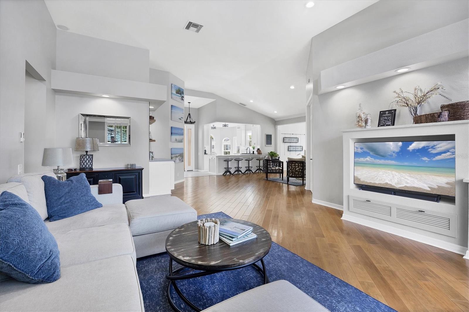 Elegant Updated Home in Prestancia – Sarasota’s Premier Gated Golf Community. Nestled within Prestancia, one of Sarasota’s most sought-after gated golf communities, this beautifully updated residence blends timeless architecture with sophisticated modern design. Featuring 3 bedrooms and 3.5 baths, the home is perfectly situated on a beautifully landscaped homesite that offers both privacy and curb appeal. A covered front entry, framed by lush tropical landscaping, welcomes you inside. The open-concept floor plan unfolds through an airy foyer with tall ceilings, a modern chandelier, and rich wood flooring that flows seamlessly throughout the main living areas. Clear sightlines extend through the kitchen, dining, and living spaces to the lanai and pool beyond. Remodeled in 2020, the kitchen is a showpiece with custom white Shaker cabinetry, quartz countertops, a custom tile backsplash, and dark oil-rubbed bronze hardware. A large peninsula with seating, recessed lighting, and a window for natural light complements stainless steel appliances, a bar area with floating shelves, and a wine refrigerator. The adjacent dining area features a bay of windows, an orb-style chandelier, and serene garden views. The great room impresses with expansive sliding glass doors and transom windows that fill the space with natural light. A built-in entertainment wall, neutral tones, and wood floors create a relaxed yet elegant ambiance. An additional family room, centrally located between the kitchen, dining, and lanai, offers versatile space for lounging, media, or gatherings. The primary suite is a private retreat featuring high ceilings, a modern ceiling fan, and soft garden tones. A bay of arched and picture windows frames tranquil views of the pool and lush landscaping. The primary bath, fully remodeled in 2021, showcases dual vanities with quartz countertops, contrasting cabinetry, framed mirrors, a frameless walk-in shower with rain and handheld heads, a deep soaking tub, and a private water closet. Two guest suites are thoughtfully positioned for privacy, each with its own en-suite bath. The first guest suite offers a spacious closet and an updated bath (2022) featuring a dark gray vanity, quartz countertop, and brushed-nickel hardware. The second guest suite, currently used as a Den/Multipurpose Room, includes wood floors and sliding glass doors opening directly to the lanai. Its bath (remodeled in 2019) features updated tile, vanity, and lighting—and conveniently doubles as a pool bath. A stylish half bath, refreshed in 2020, serves guests from the main living area. Designed for effortless outdoor living, the screened lanai—rescreened and repainted in 2023—surrounds a heated pool (new heater 2019) with a spacious deck and multiple lounging areas, all bordered by lush landscaping for privacy. Additional updates include: 2020 electrical panel upgrade, 2023 landscaping refresh, 2024 impact-rated windows and doors, 2025 new garage door. Residents of Prestancia enjoy 24-hour gated security, tree-lined streets, and pet-friendly surroundings with sidewalks ideal for walking and biking. HOA fees cover landscape maintenance, irrigation and pest control, while optional membership at TPC Prestancia offers access to championship golf, a clubhouse, and a vibrant social scene—all just minutes from Siesta Key beaches, the Legacy Trail, dining, and shopping.