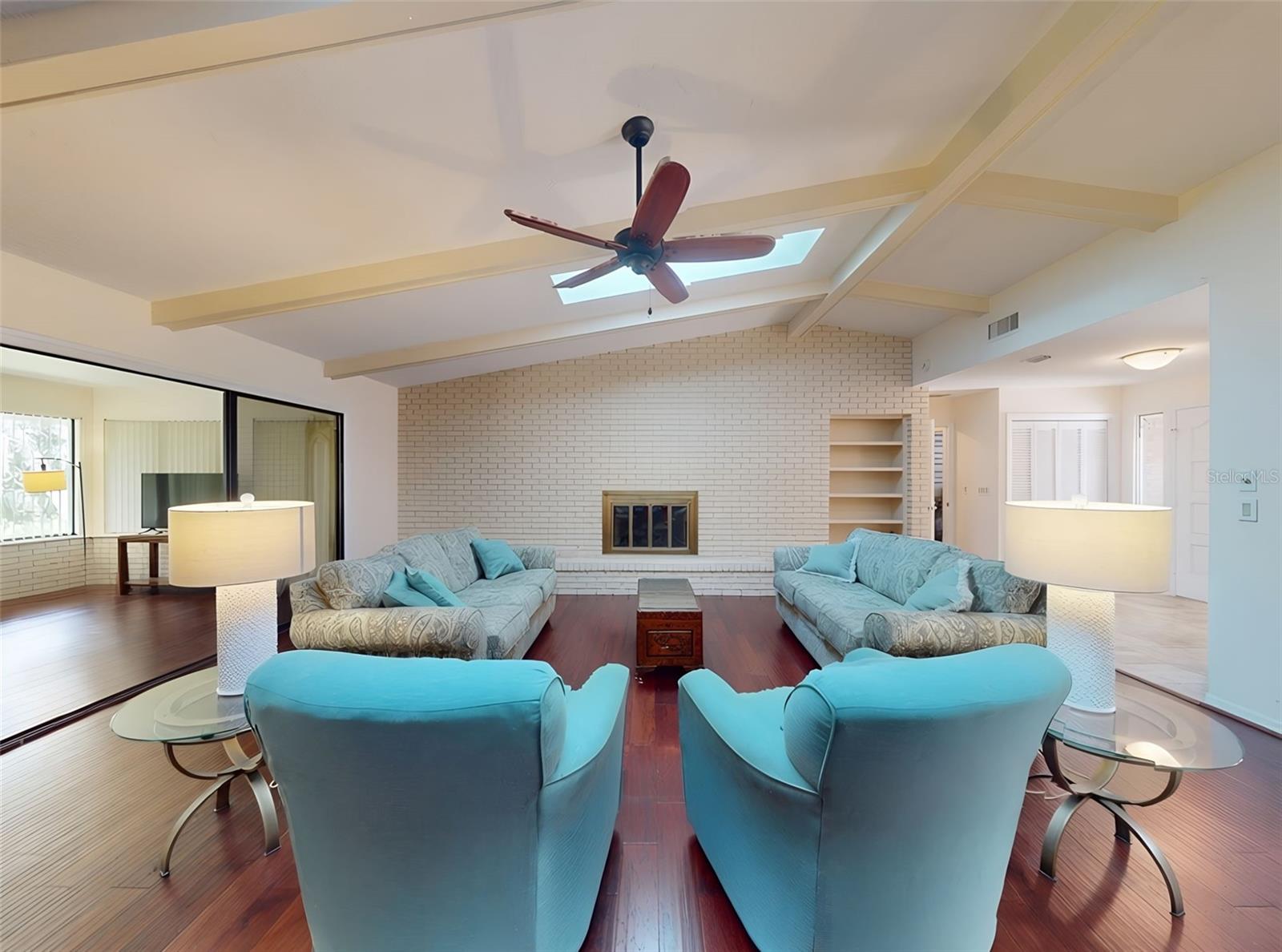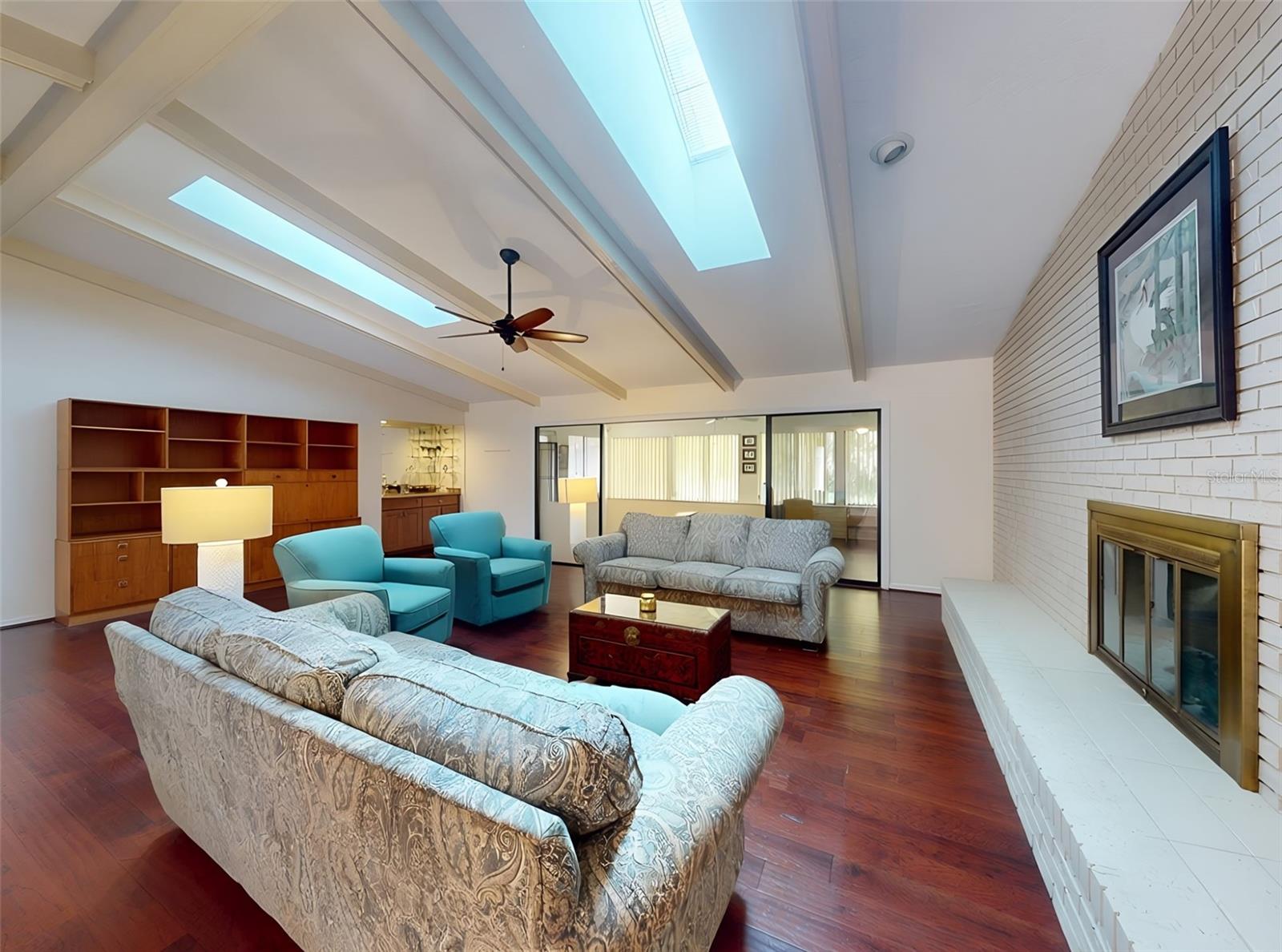 Welcome to this beautifully maintained 3-bedroom, 2.5-bath home located in the highly sought-after and well-established neighborhood of Sugar Mill Country Club. Nestled among mature landscaping and quiet streets, this home offers timeless appeal, modern comfort, and plenty of space for relaxed Florida living. Step inside to discover rich wood floors throughout the main living areas, anchored by a beautiful fireplace that creates a warm and inviting atmosphere. The split floor plan offers ideal privacy, with the spacious primary suite tucked away on one side of the home, featuring a large en-suite bathroom and generous closet space. Enjoy seamless indoor-outdoor living with a large Florida room that brings in natural light and connects to the screened-in porch, perfect for entertaining or enjoying peaceful mornings with coffee and nature views. With a thoughtfully designed layout, ample living space, and a prime location near golf, dining, and amenities, this home is ready to welcome its next owner. AC 2022, Hot Water Heater 2024, Roof 2022. Includes Home Generator. Don't miss the opportunity to make this gem in Sugar Mill Country Club your own!