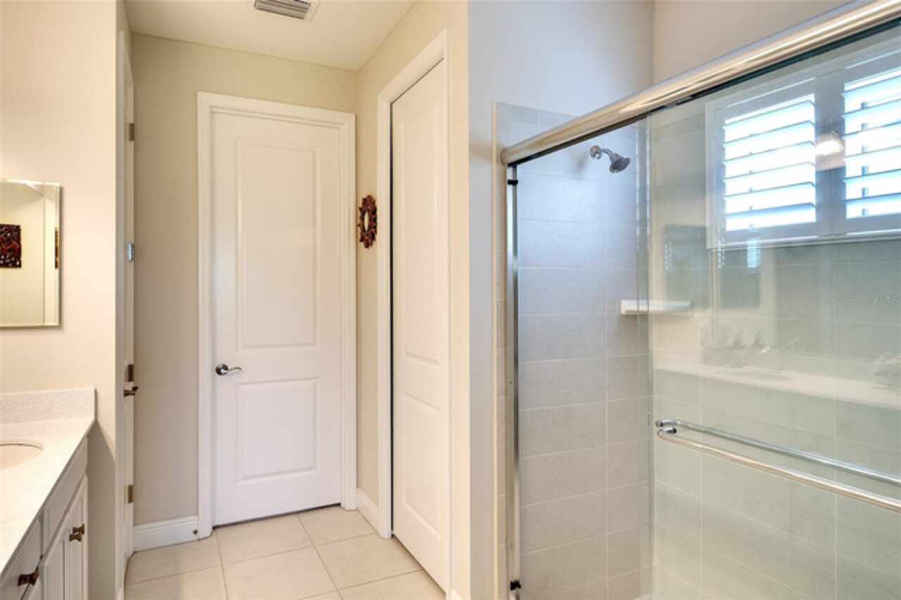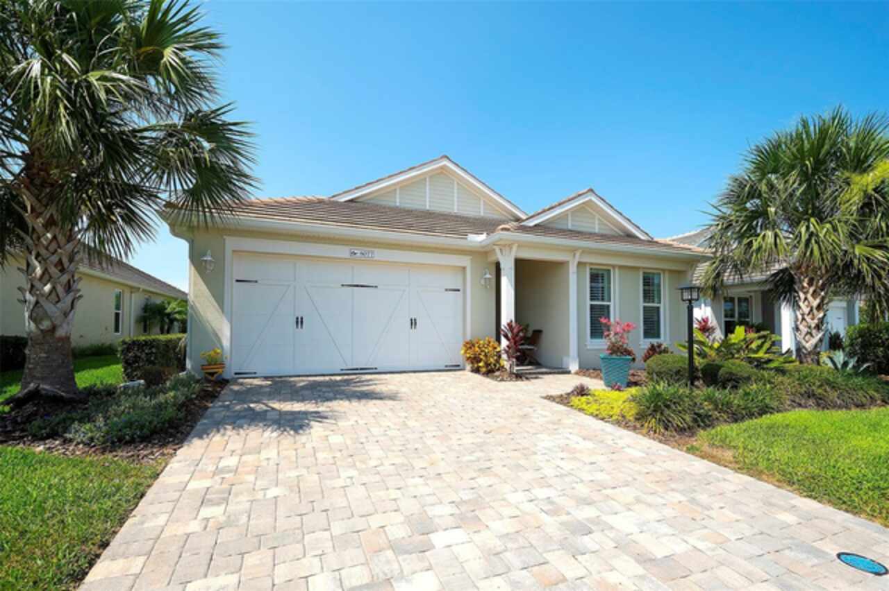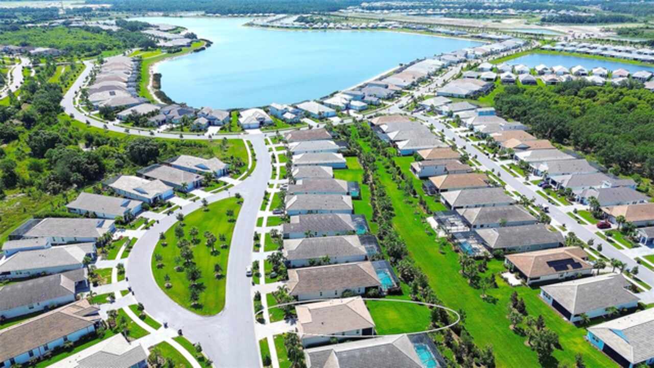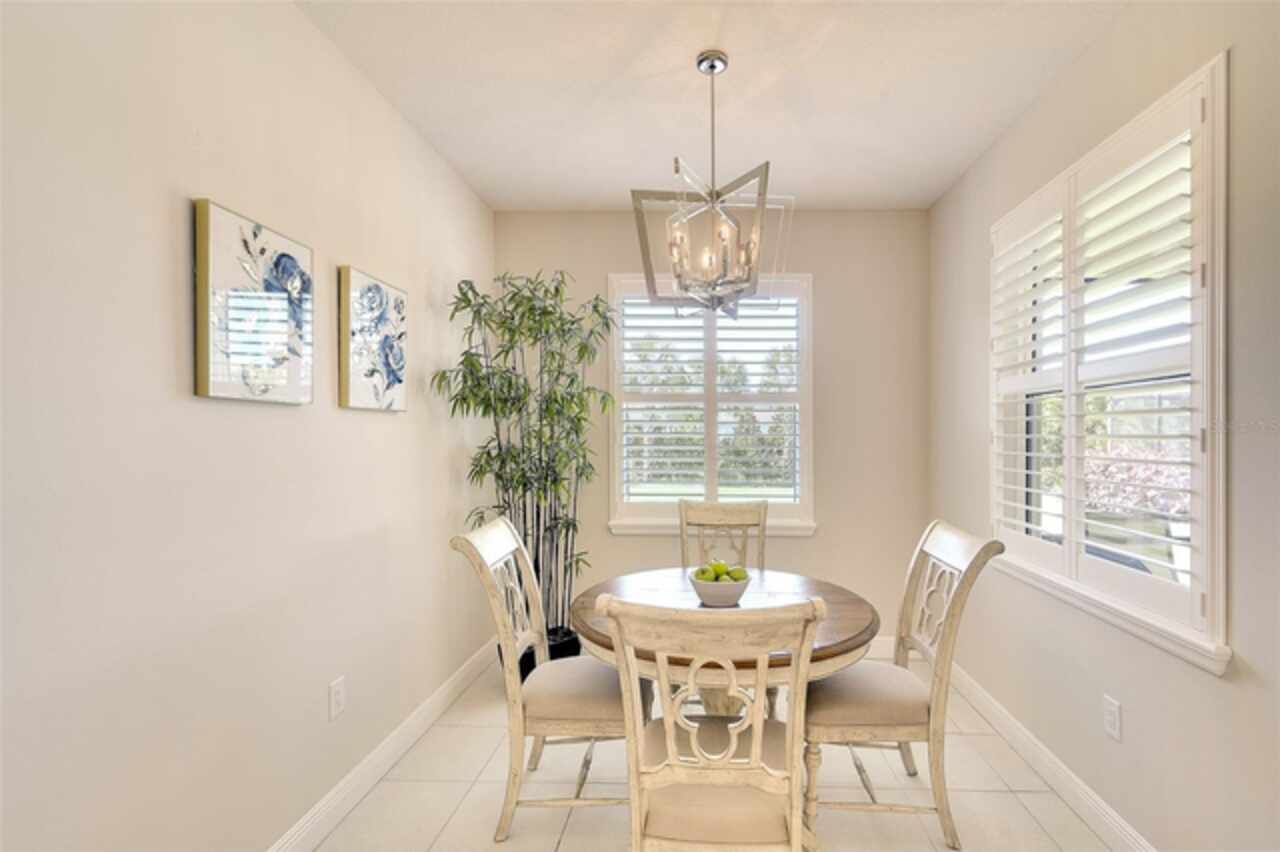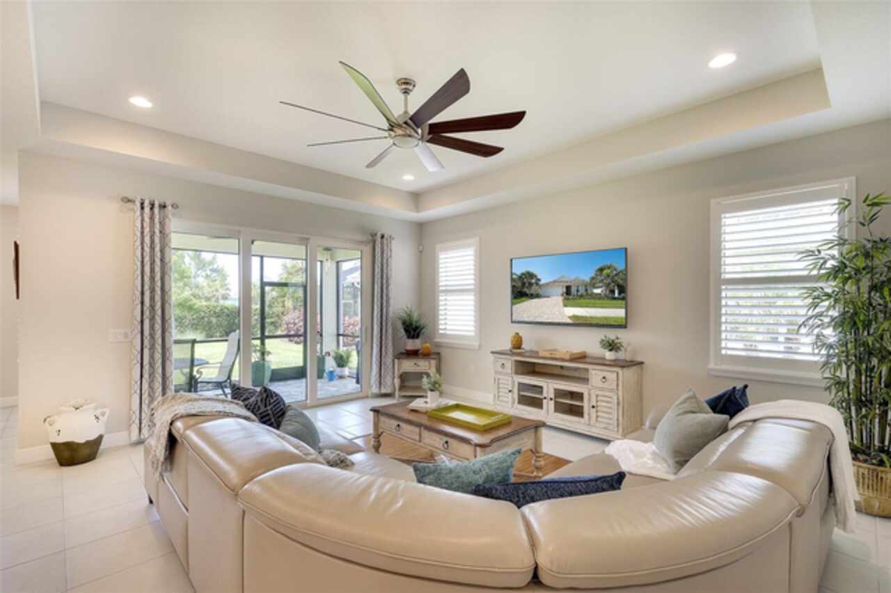 Welcome to this pristine home in coveted Lakehouse Cove at Waterside! Light and bright this 2 Bedroom + Den residence with 1, 625 square feet of thoughtfully designed living space offers a tranquil retreat just steps away from the lively amenity center at Lakehouse Cove. An almost new home built in 2020 by Homes By Towne, this Dover floorplan with a West Indies elevation and a Southern lanai exposure allows for maximum enjoyment of your Florida lifestyle! The quality of the finishes include 8’ DOORS THROUGHOUT, tray ceilings, plenty of recessed lighting and CUSTOM PLANTATION SHUTTERS THROUGHOUT. The inviting foyer, kitchen and dining area are highlighted with added DESIGNER LIGHTING. In the kitchen, you’ll find upgraded 42” white custom cabinets, with extensive pull out shelves, contemporary stainless steel appliances, featuring a 5 burner GAS STOVE, and sleek quartz countertops. The stylish SUBWAY TILE BACKSPLASH & under cabinet lighting ties the space together. The great room is a cozy yet spacious area, with a tray ceiling and views of the expansive private backyard with PLENTY OF ROOM FOR A POOL and ability for fencing within HOA guidelines. the owner’s suite which features custom plantation shutters has an en-suite bath features a walk-in shower, dual sinks, upgraded plumbing fixtures and a quartz countertop that complete the bath’s refined look. The 2nd bedroom thoughtfully positioned for privacy with a full adjacent bath continues the home’s design with a shower and tub combo, vanity with white cabinetry and quartz countertops. The spacious flex room with plenty of natural light makes it an ideal space for work or relaxation. More features include, a well-appointed laundry room with a large soaking sink, a tankless gas hot water heater, in wall pest control, a two-car garage featuring PROFESSIONALLY HUNG STORAGE RACKS and epoxy floor. Plus, you'll have access to a 7-acre amenity center with a full calendar of events an onsite event coordinator, 24-hour fitness center, resort-style pool and spa, pickle ball, dog parks, boathouse, clubhouse with meeting rooms and full kitchen, fire pit and more. Don't miss your chance to live in this vibrant community in this exciting Waterside village!