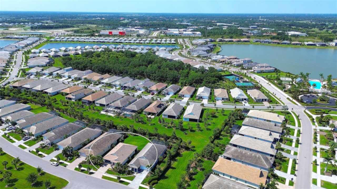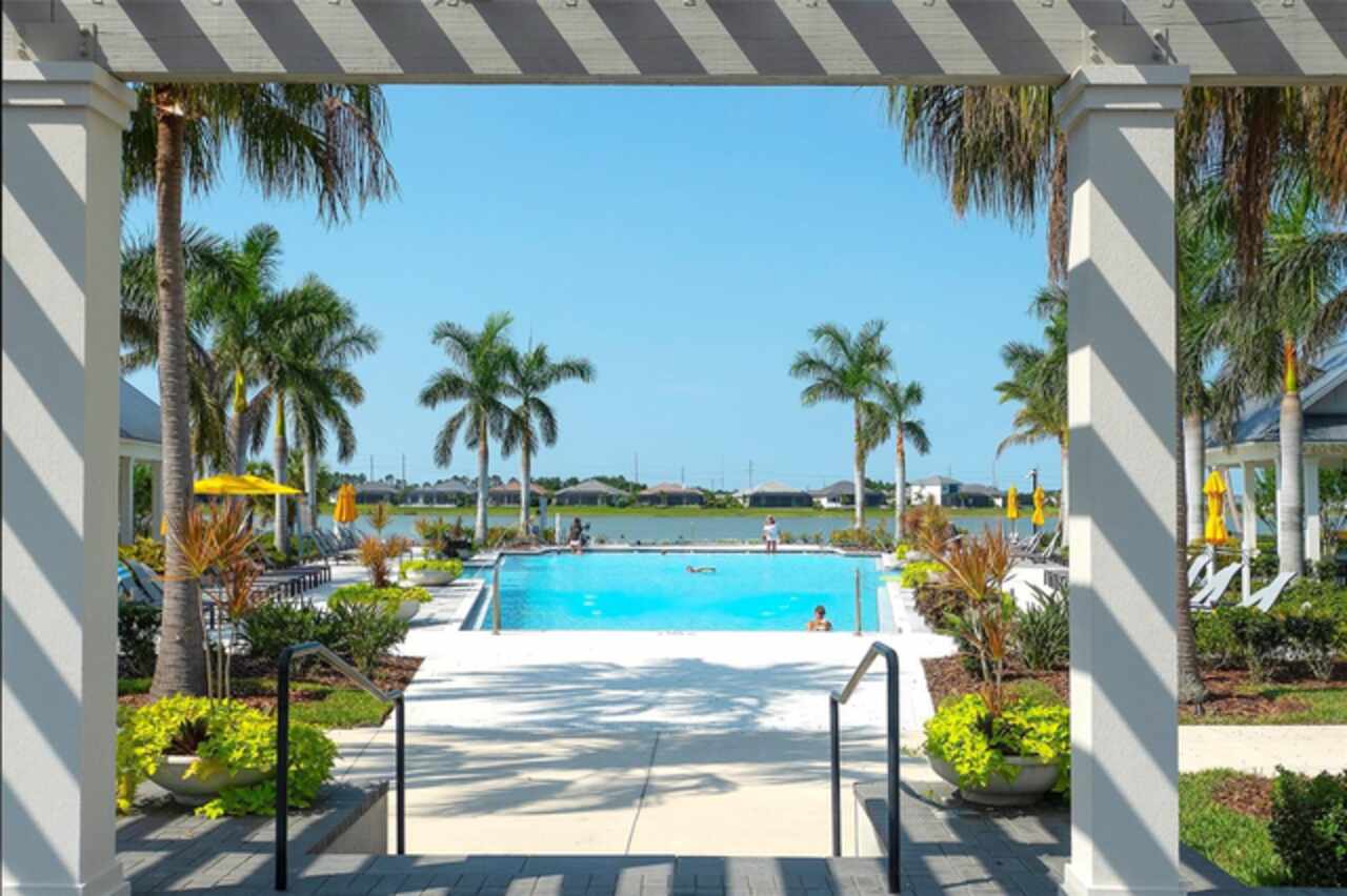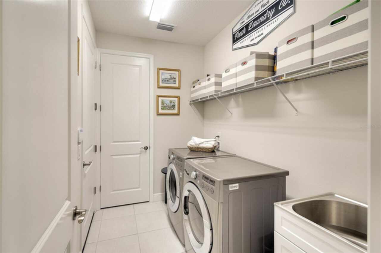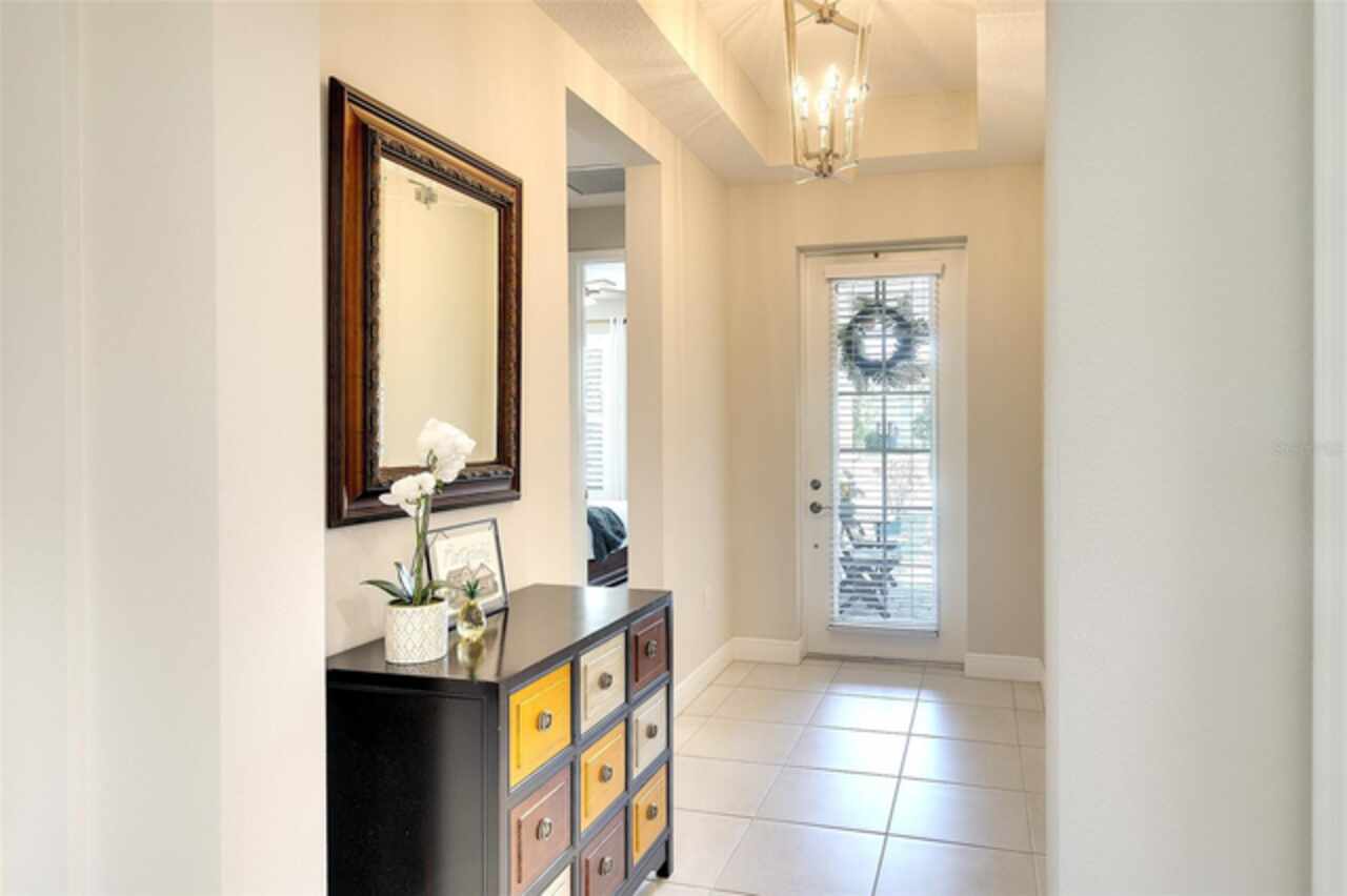 Welcome to this pristine home in coveted Lakehouse Cove at Waterside! Light and bright this 2 Bedroom + Den residence with 1, 625 square feet of thoughtfully designed living space offers a tranquil retreat just steps away from the lively amenity center at Lakehouse Cove. An almost new home built in 2020 by Homes By Towne, this Dover floorplan with a West Indies elevation and a Southern lanai exposure allows for maximum enjoyment of your Florida lifestyle! The quality of the finishes include 8’ DOORS THROUGHOUT, tray ceilings, plenty of recessed lighting and CUSTOM PLANTATION SHUTTERS THROUGHOUT. The inviting foyer, kitchen and dining area are highlighted with added DESIGNER LIGHTING. In the kitchen, you’ll find upgraded 42” white custom cabinets, with extensive pull out shelves, contemporary stainless steel appliances, featuring a 5 burner GAS STOVE, and sleek quartz countertops. The stylish SUBWAY TILE BACKSPLASH & under cabinet lighting ties the space together. The great room is a cozy yet spacious area, with a tray ceiling and views of the expansive private backyard with PLENTY OF ROOM FOR A POOL and ability for fencing within HOA guidelines. the owner’s suite which features custom plantation shutters has an en-suite bath features a walk-in shower, dual sinks, upgraded plumbing fixtures and a quartz countertop that complete the bath’s refined look. The 2nd bedroom thoughtfully positioned for privacy with a full adjacent bath continues the home’s design with a shower and tub combo, vanity with white cabinetry and quartz countertops. The spacious flex room with plenty of natural light makes it an ideal space for work or relaxation. More features include, a well-appointed laundry room with a large soaking sink, a tankless gas hot water heater, in wall pest control, a two-car garage featuring PROFESSIONALLY HUNG STORAGE RACKS and epoxy floor. Plus, you'll have access to a 7-acre amenity center with a full calendar of events an onsite event coordinator, 24-hour fitness center, resort-style pool and spa, pickle ball, dog parks, boathouse, clubhouse with meeting rooms and full kitchen, fire pit and more. Don't miss your chance to live in this vibrant community in this exciting Waterside village!