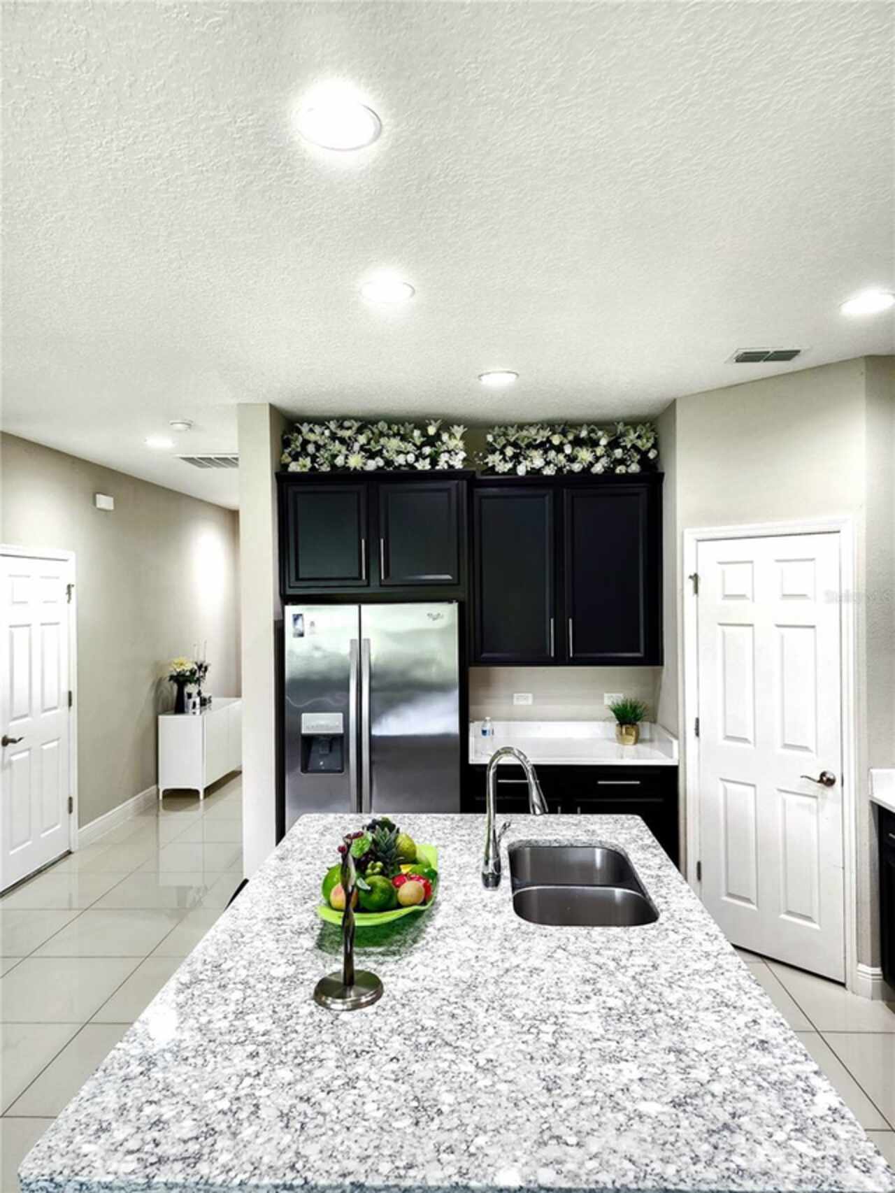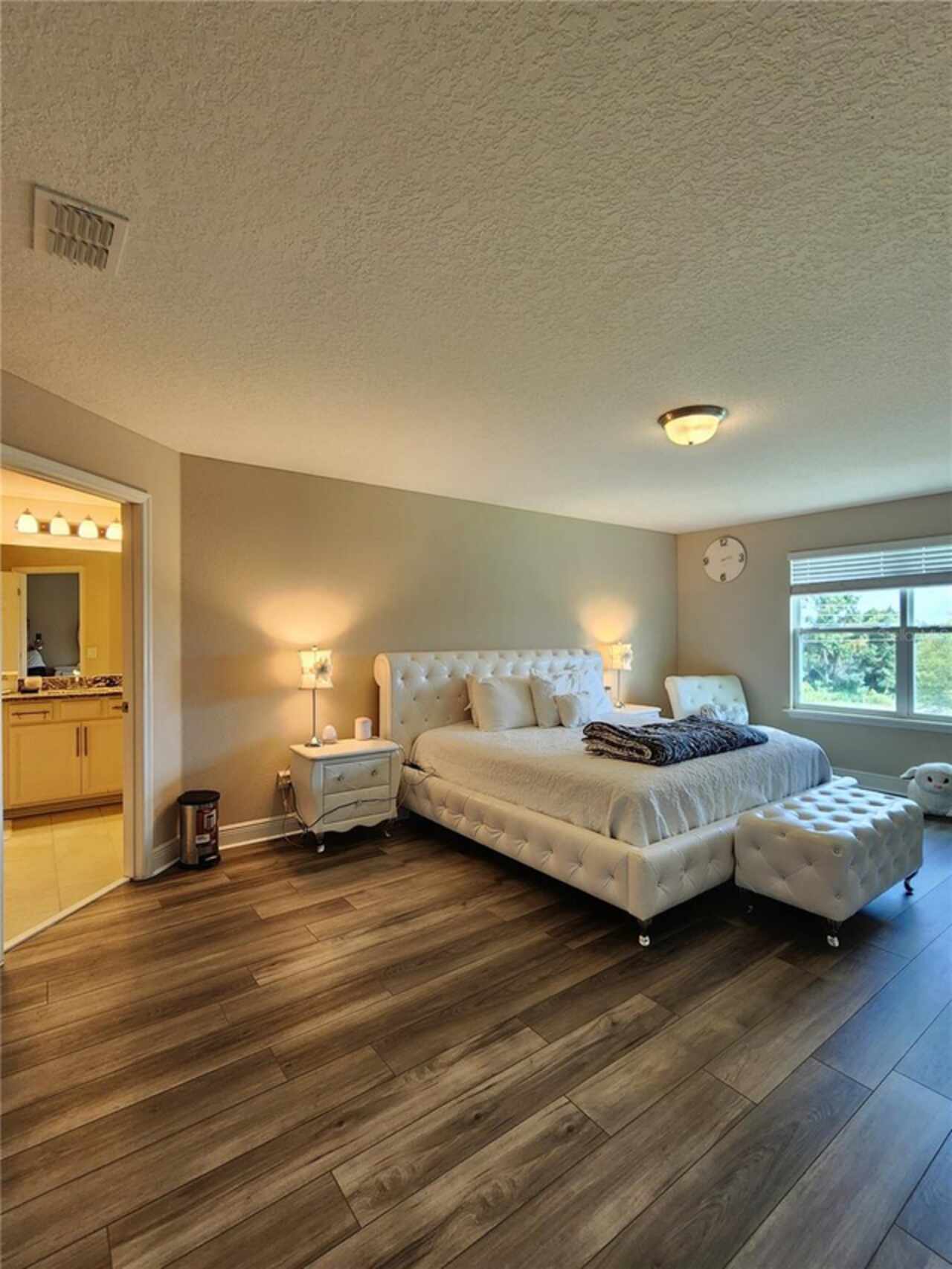 Welcome to this beautifully maintained residence in the highly desirable Johns Lake Pointe community of Winter Garden—where comfort, style, and convenience converge. This spacious home showcases elegant porcelain tiles in the main living areas and luxury vinyl plank flooring throughout all bedrooms and the upper level. The chef’s kitchen is a true centerpiece, featuring a blend of granite and quartz countertops, abundant cabinetry, and a walk-in pantry for optimal storage and functionality. A versatile flex room on the main floor, complete with French doors offers the perfect space for a guest suite or private home office. The secluded owner’s suite provides a peaceful retreat with a split-floor plan layout, a generous walk-in closet, dual granite vanities, and a relaxing garden tub. Upstairs, a spacious loft adds flexible living space, while a second suite impresses dual vanities, granite counters, a separate shower and tub, and two oversized walk-in closets. The additional two bedrooms, two full baths, and a convenient upstairs laundry room complete the thoughtful layout. Storage is plentiful throughout, including a large closet under the stairs, and the serene backyard offers tranquil water views from your screened enclosed patio—ideal for quiet mornings or evening unwinding. Johns Lake Pointe is a meticulously maintained community offering resort-style amenities: a clubhouse with pool and kitchen, fitness center, yoga room, tennis courts, playground, and access to a public boat ramp on the 2, 500-acre Johns Lake—perfect for boating, fishing, and kayaking. Located just minutes from Historic Downtown Winter Garden, Winter Garden Village, and less than 20 minutes to the Disney area, this home offers an exceptional lifestyle in a prime location. Don’t miss your opportunity to make this remarkable property your own!