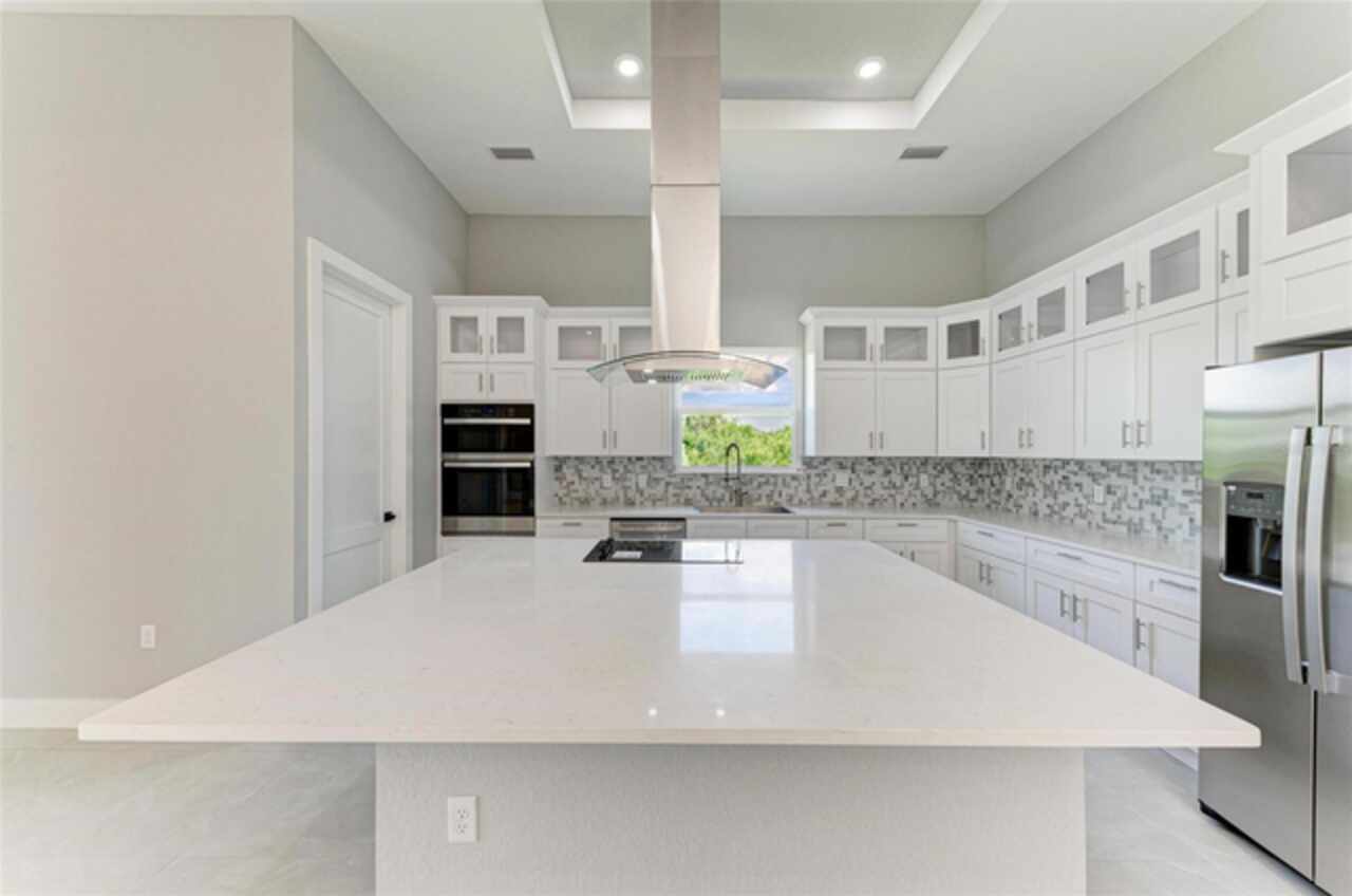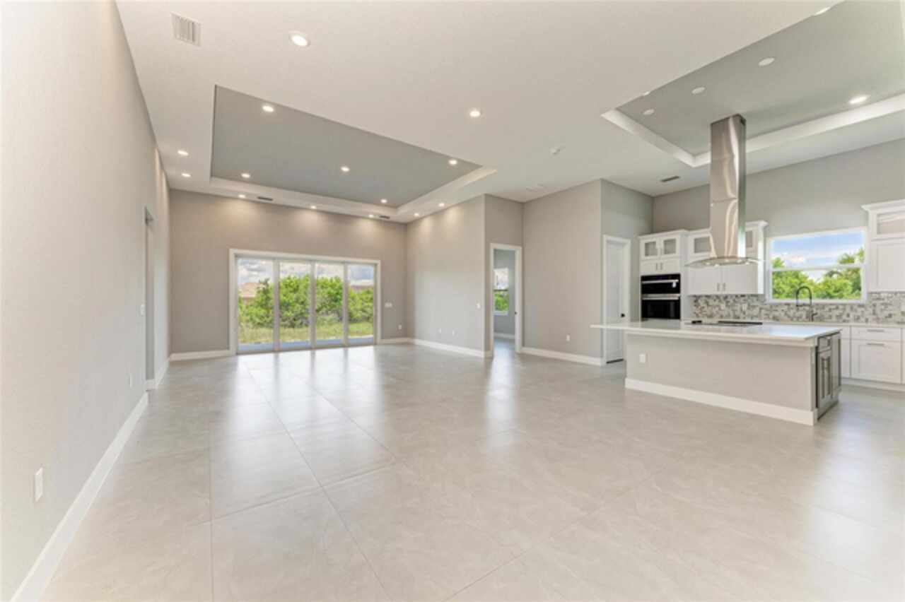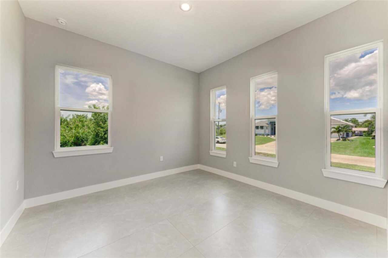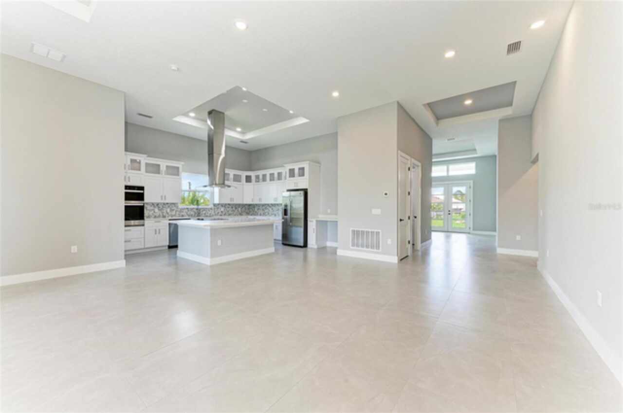 One or more photo(s) has been virtually staged. NEW PROPERTY READY TO MOVE IN. Welcome to your slice of FLORIDA PARADISE! located in the highly 93 zone sought after in SOUTH GULF COVE . the community has club house, boat ramp, dock, Park, and sidewalk. This stunning 4-bedroom, 3.5-bathroom home is situated on a spacious lot in a peaceful neighborhood, the house is across the street from the canal, just minutes from Charlotte Harbor, Englewood and all Gulf Coast Beaches , Boca Grande Island , as well as the marinas Step inside and fall in love with the 12-foot ceilings that create an airy, open feel throughout the sunlit living area in this open-concept home. The modern gourmet kitchen features a central hood with a large island, stainless steel appliances, and a roomy pantry. The primary suite includes a generous walk-in closet and a luxurious bathroom with a classic bathtub. The house is designed to meet the new flood elevation code and is equipped with impact-resistant glass windows and doors to provide peace of mind. The flooring is 48"x24" porcelain tile throughout the house. Enjoy outdoor living year-round on your open lanai. With NO MANDATORY HOA, this property is perfect for snowbirds, investors, or full-time residents alike. Bring your boat or RV and also enjoy your golf cart around—you’re close to boat ramps, golf courses, shopping, dining, and I-75 for an easy drive to Sarasota, or Fort Myers and Naple. The house has option to build a pool ask for details Your Gulf Coast dream home awaits!