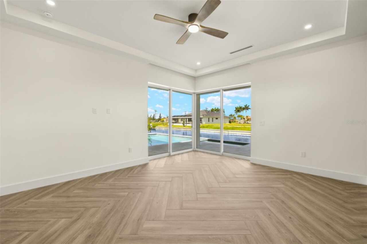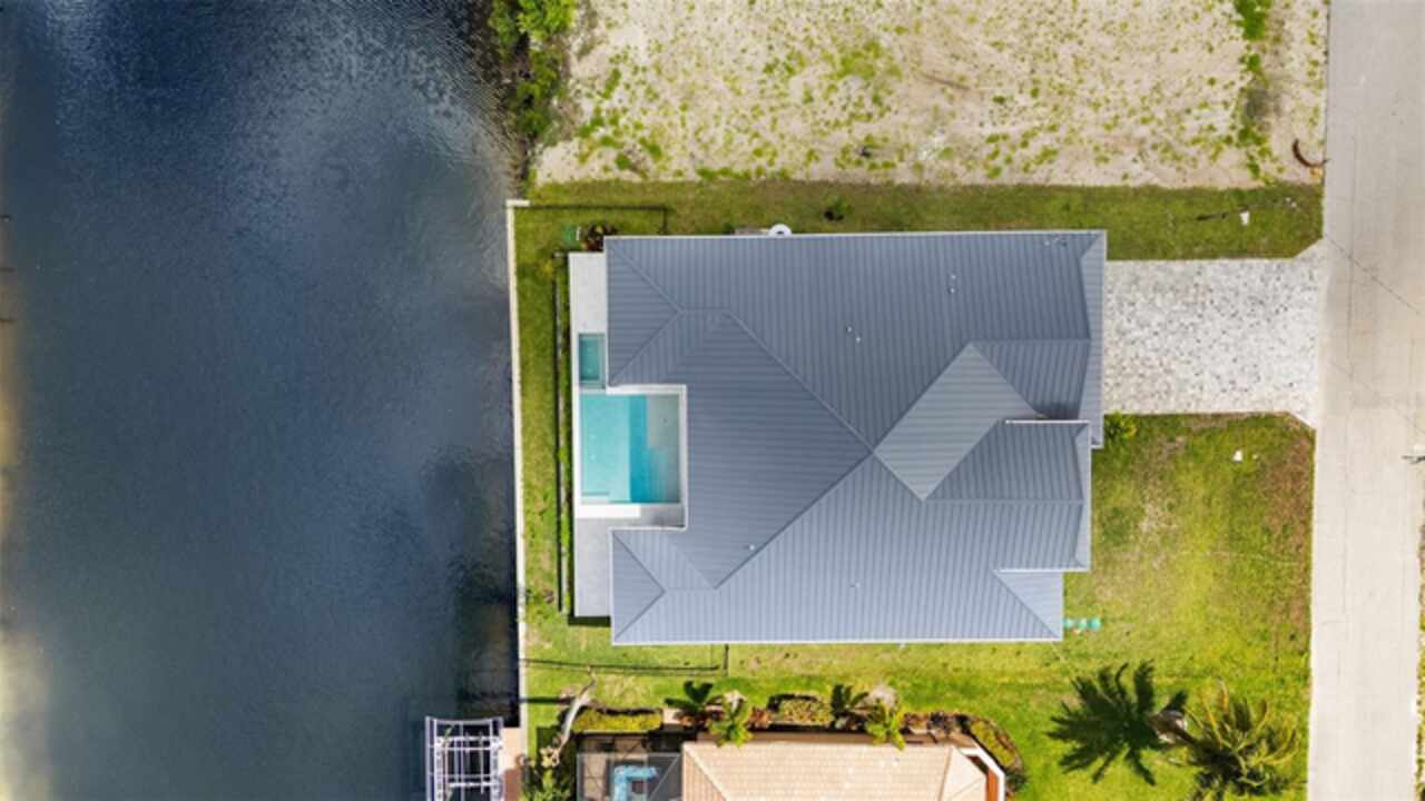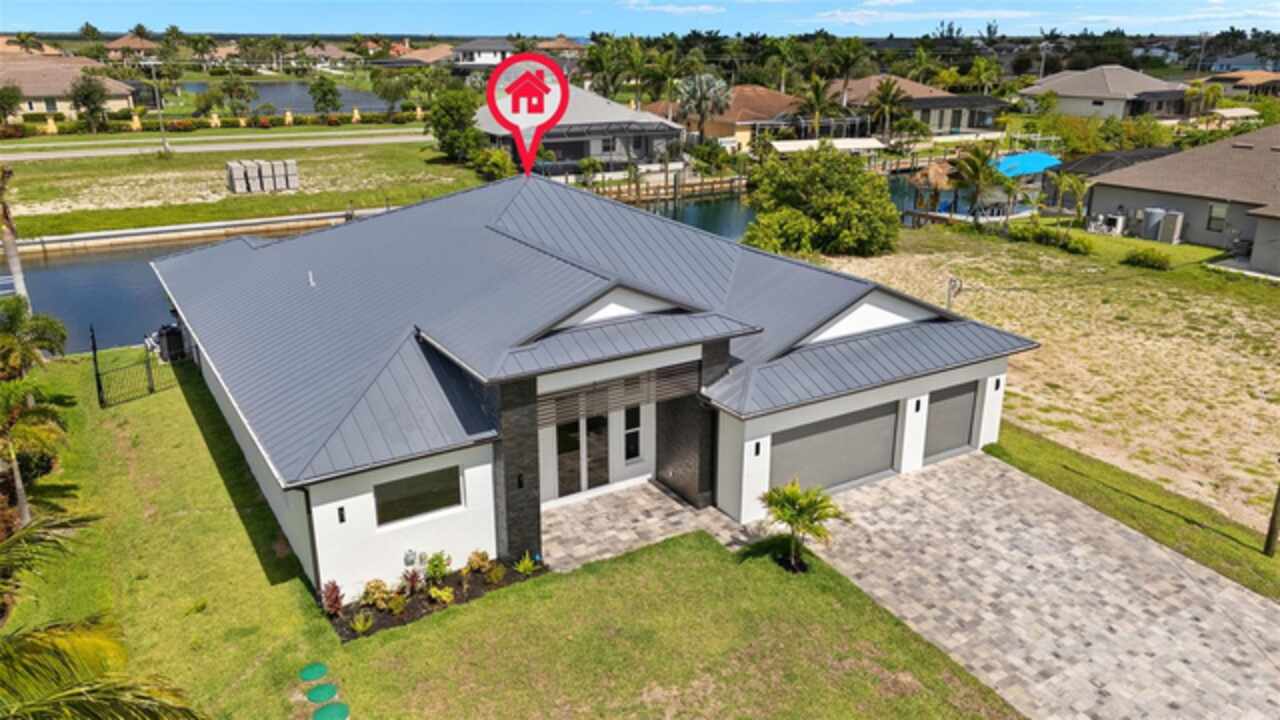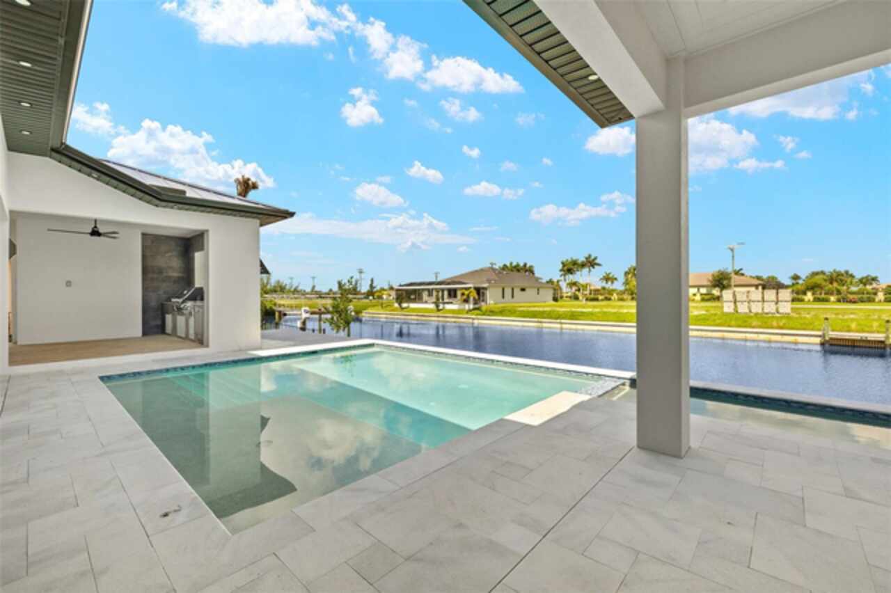 One or more photo(s) has been virtually staged. Experience exceptional craftsmanship and the ultimate Florida lifestyle in this brand new, custom-built home located in the fast-growing Northwest Cape Coral area.Thoughtfully constructed with energy-efficient ICF (Insulated Concrete Form) walls and a sleek metal roof, this brand-new home offers lasting durability, modern style, and exceptional comfort. Boasting 3 bedrooms + a den, 3 full bathrooms, and a spacious 3-car garage, this 2, 869 sq. ft. home is designed for both luxurious living and everyday functionality. Inside, you'll be greeted by soaring 14-foot ceilings, impact-resistant windows and doors, elegant tile flooring throughout, and refined architectural details. The chef-inspired kitchen is a true showpiece, featuring premium Wolf/SubZero appliances, Quartzite countertops, a large hidden walk-in pantry, and custom built-in cabinetry. The primary suite offers a serene escape with custom built-in closet systems that combine style and practicality. Step outside to your private oasis: a heated pool and spa, a fully equipped outdoor grill station—perfectly positioned along the 95-foot-wide Jai Lai Canal with GULF ACCESS . Enjoy breathtaking western exposure and tranquil water views that create the ideal backdrop for entertaining or unwinding at sunset. Additional features include a whole-house reverse osmosis system, smart-home technology, and high-end finishes throughout. This is more than just a home—it's a statement in waterfront luxury. Don’t miss the opportunity to own a piece of Cape Coral’s most desirable and fastest-growing community. Schedule a tour today and see it for yourself!