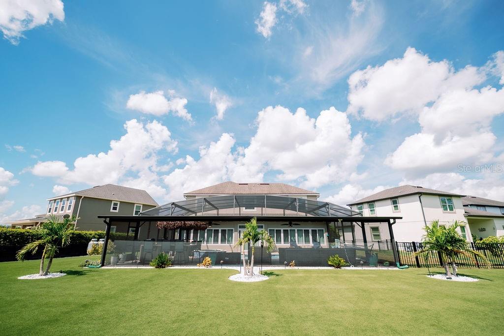 **PRICE IMPROVEMENT** Experience the perfect blend of luxury and low-maintenance living in this designer home, nestled on a rare 0.41-acre conservation lot with serene pond views in sought-after Randal Park. This five-bedroom, three-and-a-half bath residence welcomes you with an open, light-filled layout designed for both entertaining and everyday comfort. The chef’s kitchen boasts 42” cabinets, granite countertops, a center island with built-in microwave, stainless steel appliances, and a custom hooded range, all flowing seamlessly into the expansive great room and dining spaces. Quad pane sliding doors open to an extended, screen-enclosed Florida room and a stunning paver patio with saltwater, gas-heated pool and spa with cascading fountains. Enjoy your time grilling and enjoy cold beverages with the tiki bar that stays with the property. The entire backyard has been upgraded with artificial turf for beauty and ease, while a dedicated real-grass section provides a pet-friendly touch. Upstairs, the primary suite offers dual custom closets, a tray ceiling, and spa-style bath with garden tub, walk-in shower, and double vanity. Four additional bedrooms include a private en suite, offering flexible living for family and guests. Luxury upgrades and worry-free features include a whole-house Generac generator with dual 250-gallon propane tanks, full home security with cameras, ceramic-tiled three-car garage, and a water softening system. Additional highlights include hardwood stairs, a fully fenced yard, and outdoor storage. Integrated LED lights installed on the front of the house and the pool screen enclosure ready for all your holidays theme decor! Randal Park amenities complete the lifestyle with a resort-style pool, fitness center, playgrounds, and scenic walking trails. With unmatched upgrades and timeless design, this is more than a home — it’s peace of mind, comfort, and elegance in one. AND TALK ABOUT LOCATION! 15 minutes from Orlando International Airport (MCO), Brightline station to Miami near by, and of course, only a 30 minute drive to Disney!