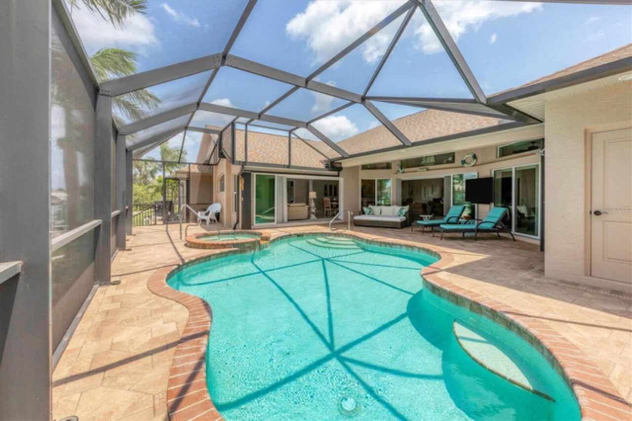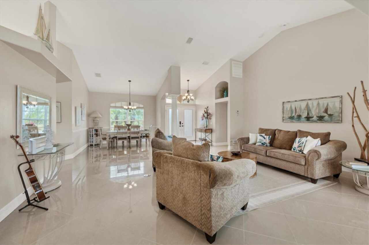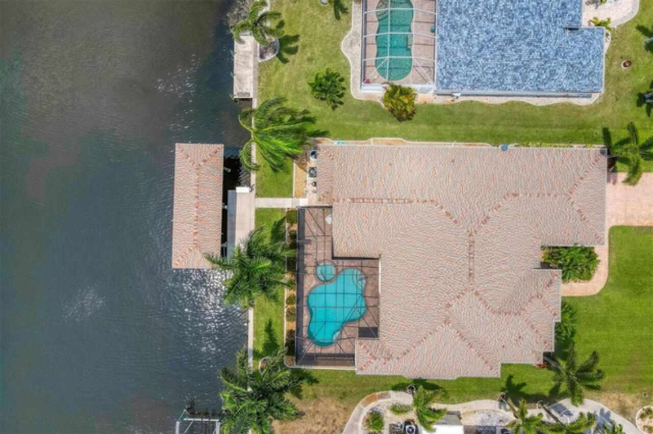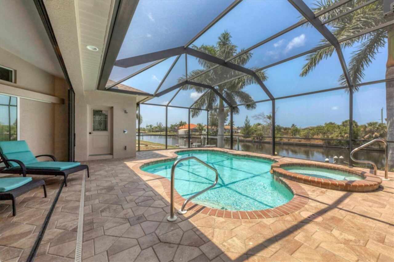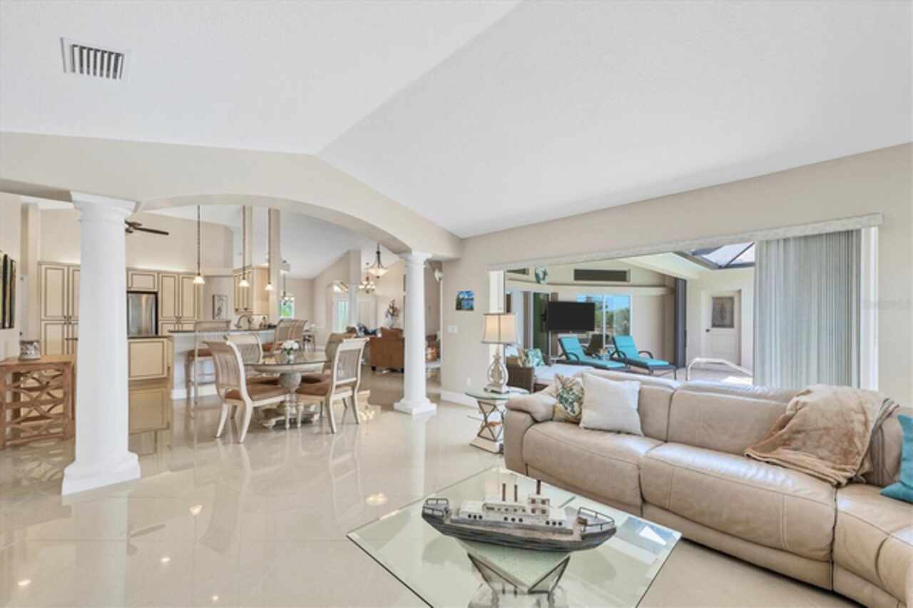 Welcome to your own slice of paradise in the serene and highly sought-after community of South Gulf Cove. This stunning custom-built home offers the ultimate in waterfront living with a full seawall, a concrete dock complete with water, electric, and a fish cleaning station, and a 15, 000 lb. covered boat lift — all topped with a custom-matched roof installed in 2022 to seamlessly blend with the home. As you arrive, you'll be immediately impressed by the beautifully manicured landscaping, stamped concrete driveway and walkway, and the elegant curb appeal. Step through the double entry doors and be greeted by an abundance of natural light that pours into the open-concept living space, highlighting the gleaming polished tile floors and sophisticated architectural details throughout. Designed for entertaining, this home features two inviting living areas, a formal dining room, and a charming breakfast nook — all showcasing spectacular waterfront views. The chef’s kitchen is a true showstopper, offering granite countertops, solid wood cabinetry, under-cabinet lighting, a built-in wine rack and wine fridge, double ovens, Bosch cooktop with downdraft on a central island, matching Bosch appliances, and a central vacuum system. The popular Florida split floor plan provides maximum privacy, with the oversized primary suite tucked away from the guest bedrooms. The primary bedroom boasts a tray ceiling, a walk-in and reach-in closet, and sliding doors to the lanai. The en-suite bath features dual granite vanities, a private water closet, a glass-enclosed walk-in shower, and a luxurious soaking tub — perfect for unwinding after a day on the water. The guest bedrooms offer comfortable accommodations with reach-in closets and share a beautifully updated bathroom with a granite-topped vanity and a spacious tiled walk-in shower. The versatile laundry room connects conveniently to both the kitchen and garage and includes custom cabinetry, granite counters, and a sink — ideal for cleanup after outdoor projects. The oversized two-car garage is an enthusiast’s dream, with epoxy flooring, cobalt metal cabinetry, a built-in workbench, and extra space for storing gear or toys. Step outside to your private resort-style lanai, featuring a saltwater heated pool and attached hot tub with upgraded Wi-Fi controls for ultimate comfort. Lounge under the covered area and catch your favorite show, or rinse off in the outdoor shower after a day in the sun. A separate pool bath and storage room complete this exceptional outdoor living space. Located minutes from the pristine beaches of Boca Grande, top-rated golf courses, and world-class fishing in Charlotte Harbor and the Gulf of Mexico, this home offers the Florida lifestyle you've been dreaming of.