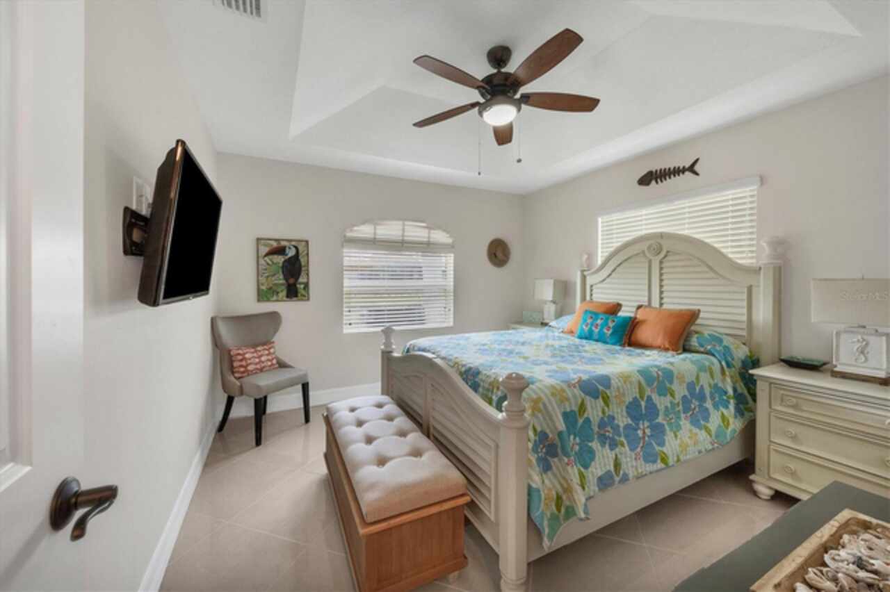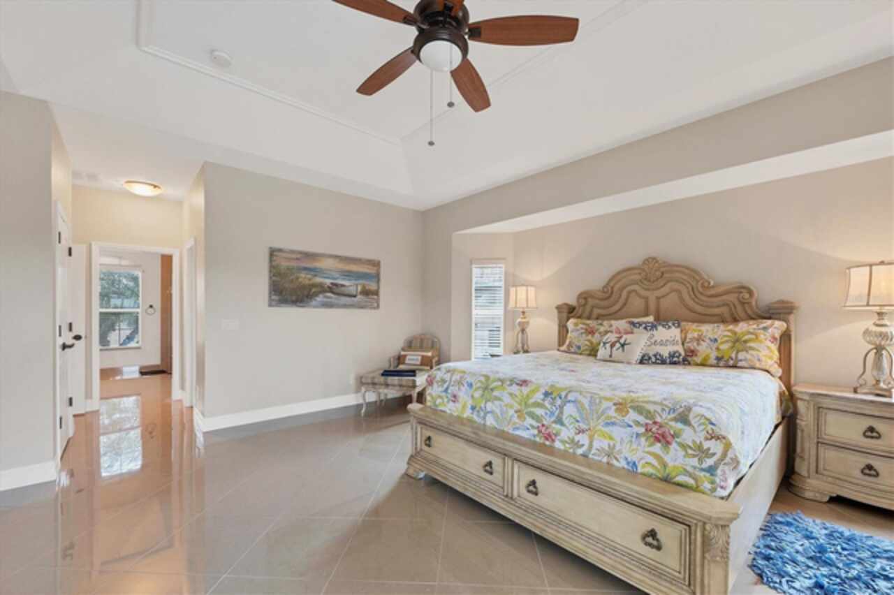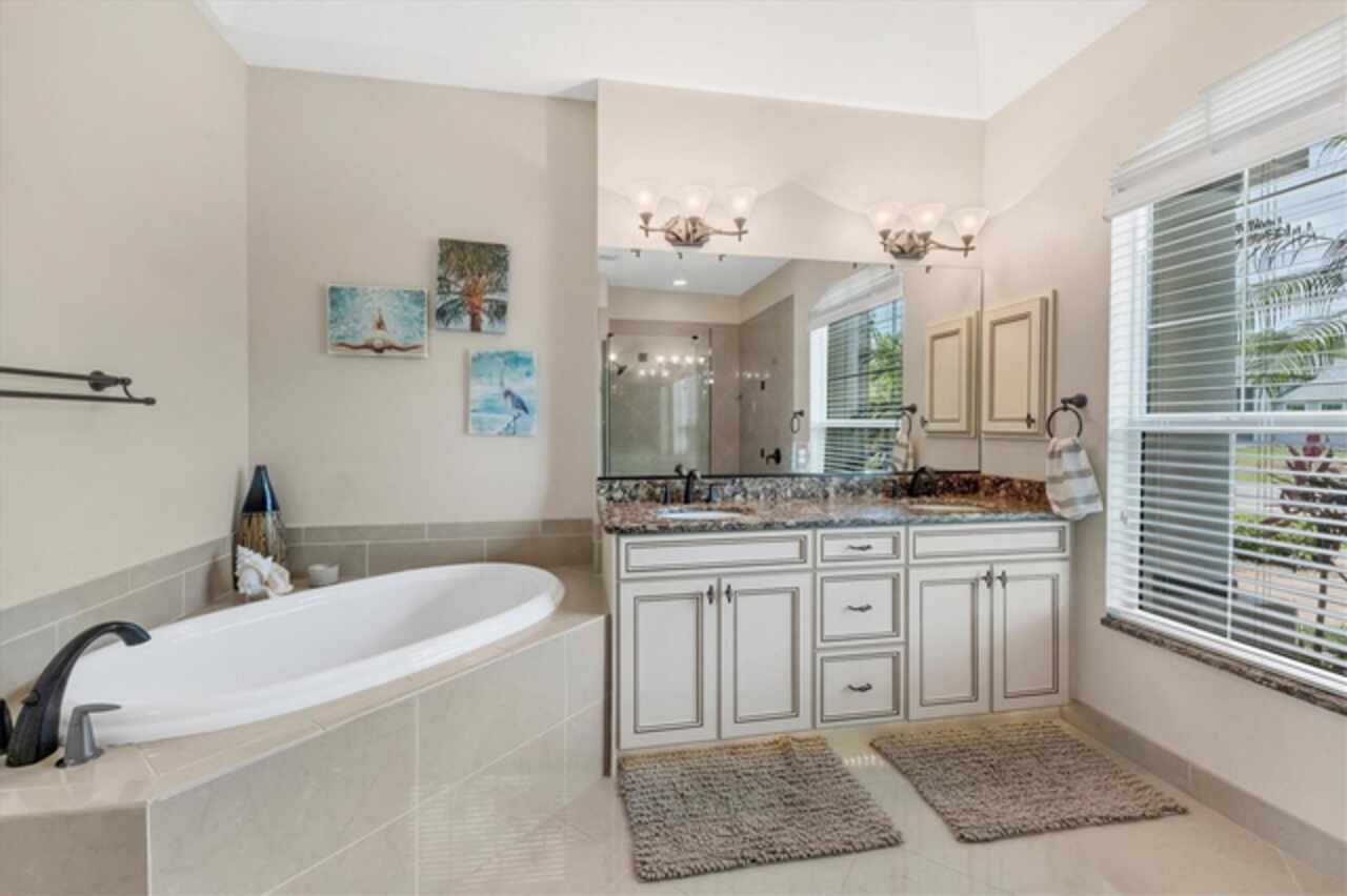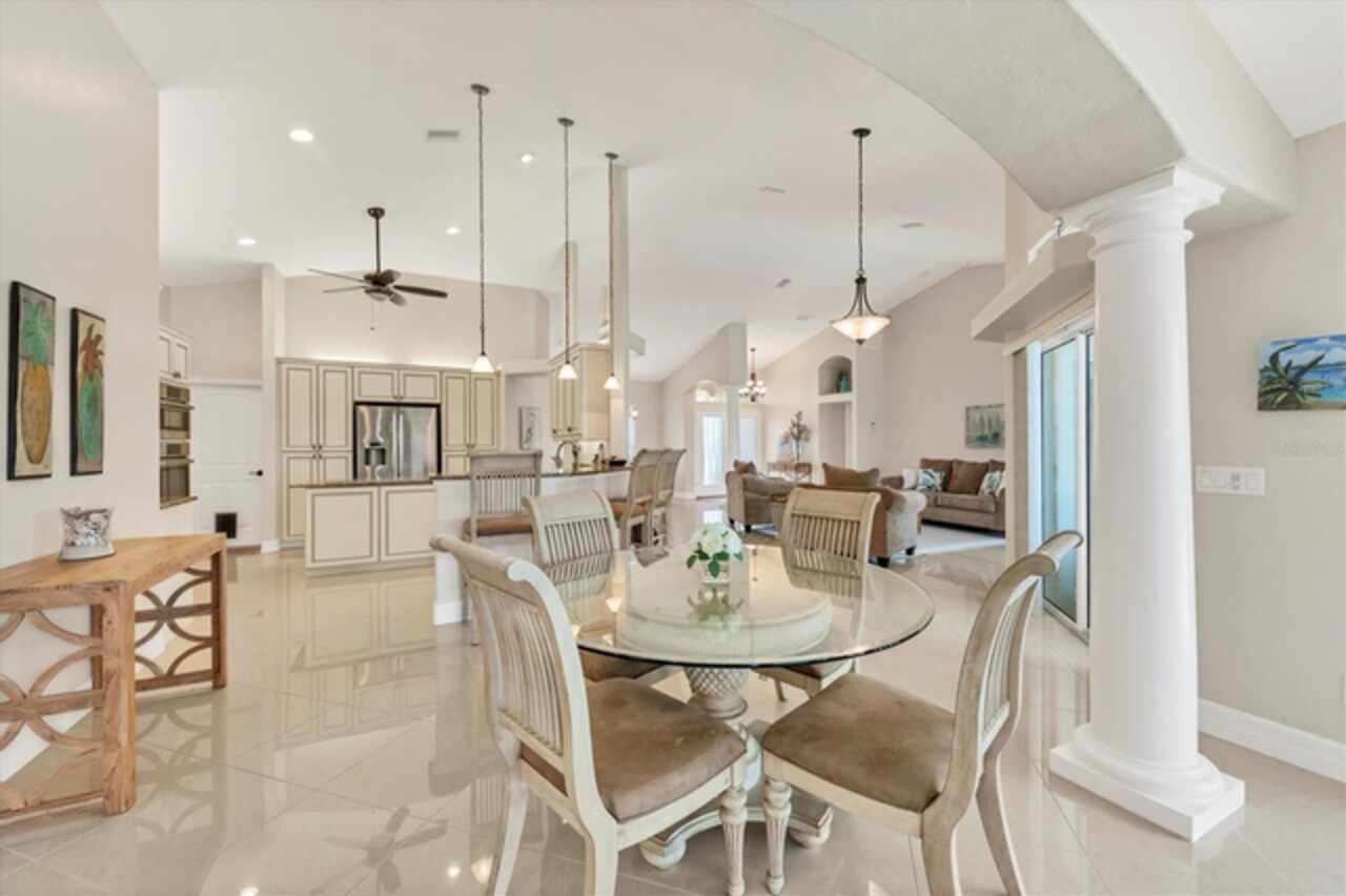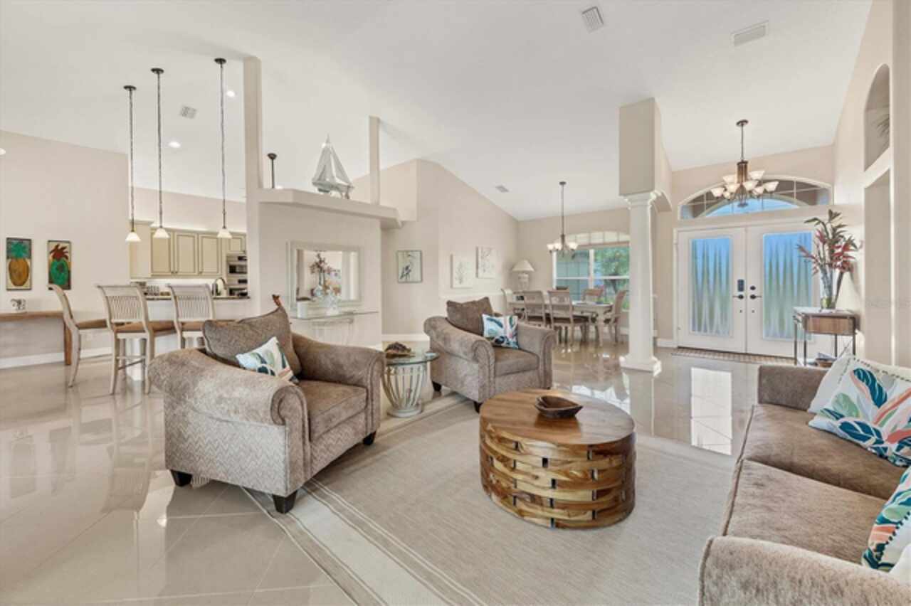 Welcome to your own slice of paradise in the serene and highly sought-after community of South Gulf Cove. This stunning custom-built home offers the ultimate in waterfront living with a full seawall, a concrete dock complete with water, electric, and a fish cleaning station, and a 15, 000 lb. covered boat lift — all topped with a custom-matched roof installed in 2022 to seamlessly blend with the home. As you arrive, you'll be immediately impressed by the beautifully manicured landscaping, stamped concrete driveway and walkway, and the elegant curb appeal. Step through the double entry doors and be greeted by an abundance of natural light that pours into the open-concept living space, highlighting the gleaming polished tile floors and sophisticated architectural details throughout. Designed for entertaining, this home features two inviting living areas, a formal dining room, and a charming breakfast nook — all showcasing spectacular waterfront views. The chef’s kitchen is a true showstopper, offering granite countertops, solid wood cabinetry, under-cabinet lighting, a built-in wine rack and wine fridge, double ovens, Bosch cooktop with downdraft on a central island, matching Bosch appliances, and a central vacuum system. The popular Florida split floor plan provides maximum privacy, with the oversized primary suite tucked away from the guest bedrooms. The primary bedroom boasts a tray ceiling, a walk-in and reach-in closet, and sliding doors to the lanai. The en-suite bath features dual granite vanities, a private water closet, a glass-enclosed walk-in shower, and a luxurious soaking tub — perfect for unwinding after a day on the water. The guest bedrooms offer comfortable accommodations with reach-in closets and share a beautifully updated bathroom with a granite-topped vanity and a spacious tiled walk-in shower. The versatile laundry room connects conveniently to both the kitchen and garage and includes custom cabinetry, granite counters, and a sink — ideal for cleanup after outdoor projects. The oversized two-car garage is an enthusiast’s dream, with epoxy flooring, cobalt metal cabinetry, a built-in workbench, and extra space for storing gear or toys. Step outside to your private resort-style lanai, featuring a saltwater heated pool and attached hot tub with upgraded Wi-Fi controls for ultimate comfort. Lounge under the covered area and catch your favorite show, or rinse off in the outdoor shower after a day in the sun. A separate pool bath and storage room complete this exceptional outdoor living space. Located minutes from the pristine beaches of Boca Grande, top-rated golf courses, and world-class fishing in Charlotte Harbor and the Gulf of Mexico, this home offers the Florida lifestyle you've been dreaming of.