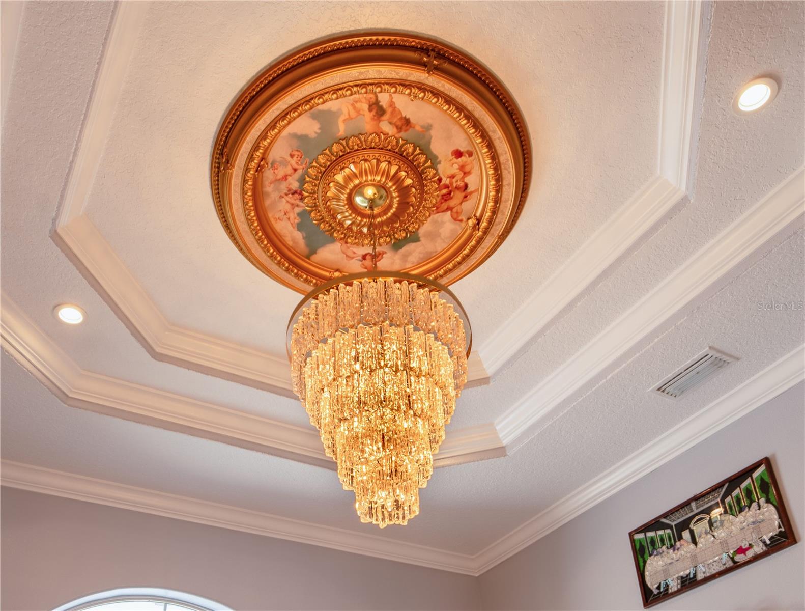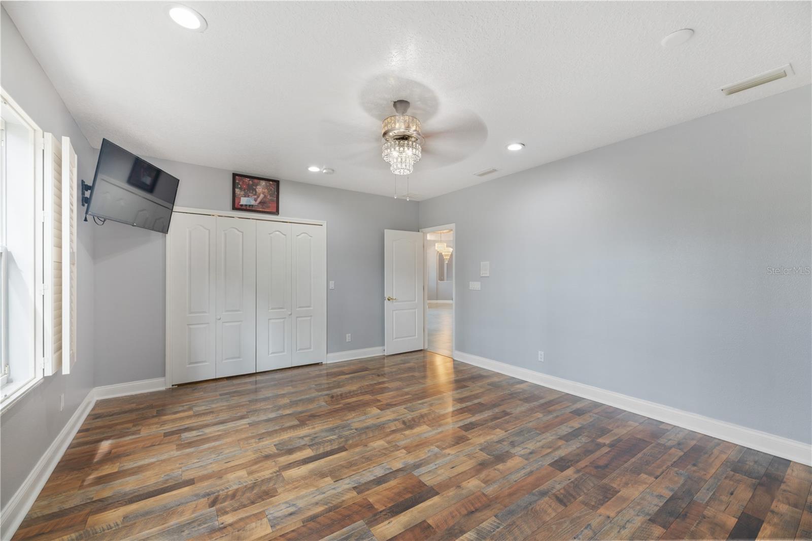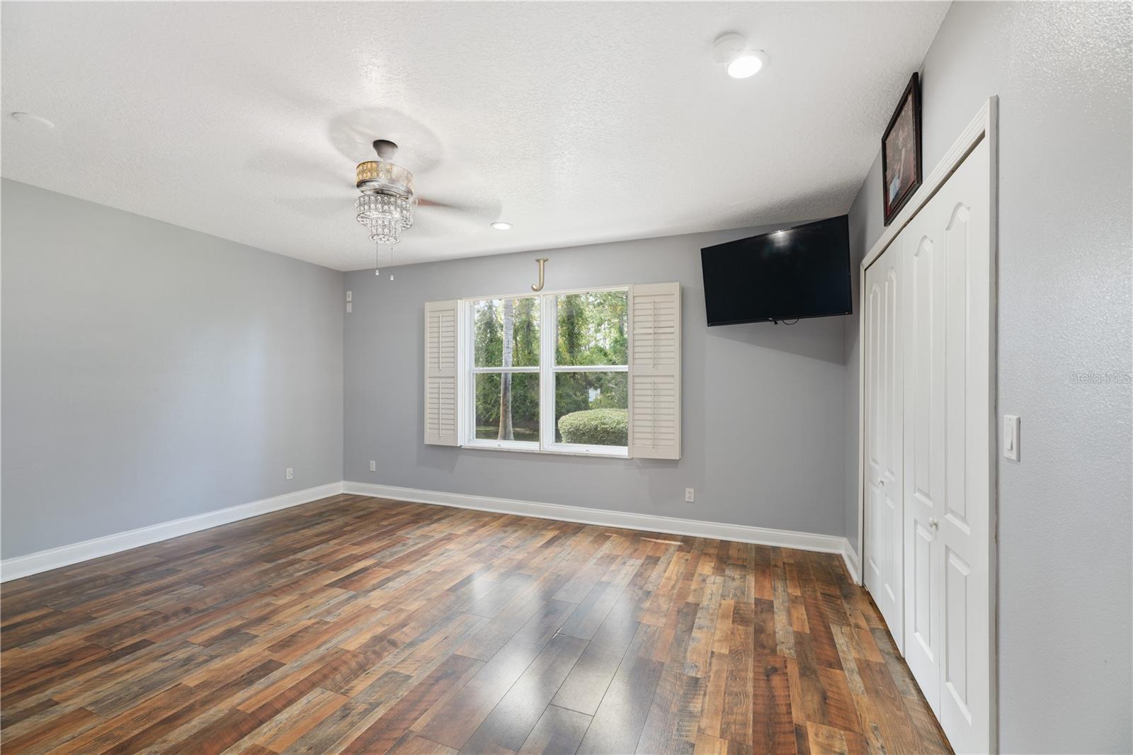 Ceiling Fans(s), Eat-in Kitchen, High Ceilings, L Dining, Open Floorplan, Primary Bedroom Main Floor, Solid Surface Counters, Solid Wood Cabinets, Split Bedroom, Thermostat, Tray Ceiling(s), Walk-In Closet(s), Window Treatments