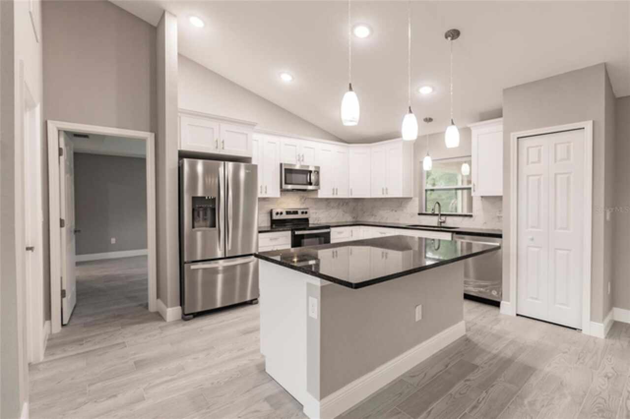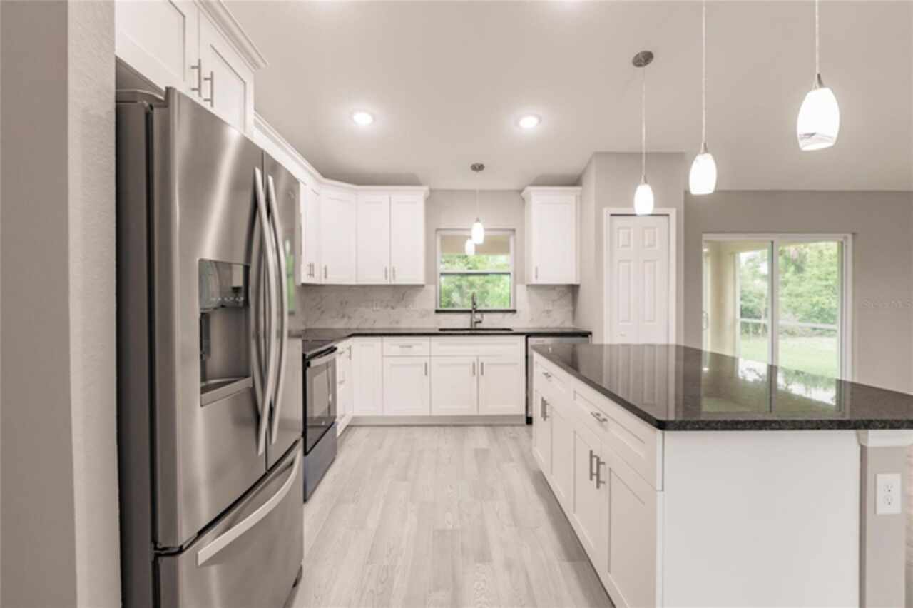 OWNER FINANCING AVAILABLE! Why go through the hassle of building when you can move right into this brand new custom home on a beautiful freshwater canal? Enter through the lead glass front door into the bright and open floor plan with soaring vaulted ceiling in main living area and sliders to the lanai from dining area with view of beautiful waterway and allowing for natural light to flood the living area. Tastefully appointed with vaulted ceiling in Great Room, recessed lighting, decorator light and fan fixtures, wood plank porcelain tile flooring throughout, and color accent walls. The kitchen is a cooking enthusiast’s dream boasting granite counters with tile back splash, soft-close wood cabinetry, stainless appliances including 3 door fridge, pantry, and island with breakfast bar that opens to the main living area for easy entertaining. Retreat to your master suite with walk in closet and private en suite bath with his and hers sinks, granite counters, wood cabinetry, and spacious custom tiled and glassed walk-in shower. Other features include dedicated laundry room, impact resistant windows, and 2nd and 3rd bedrooms can be closed off providing privacy for you and your guests. Of course, you will enjoy relaxing on your lanai overlooking your private back yard and beautiful waterway and watching the wildlife and waterfowl that abound in this area. Proximity to other waterways, local beaches, dining, shopping, and golf courses makes this property ideal for the Florida lifestyle. Also, easy access to public parks with bike and walking trails and picnic areas, and boat ramps providing access to many waterways, beautiful Charlotte Harbor, Myakka River, and the blue waters of the Gulf of Mexico. Beautiful home in a quiet neighborhood yet all amenities nearby. Don’t let this one get away!