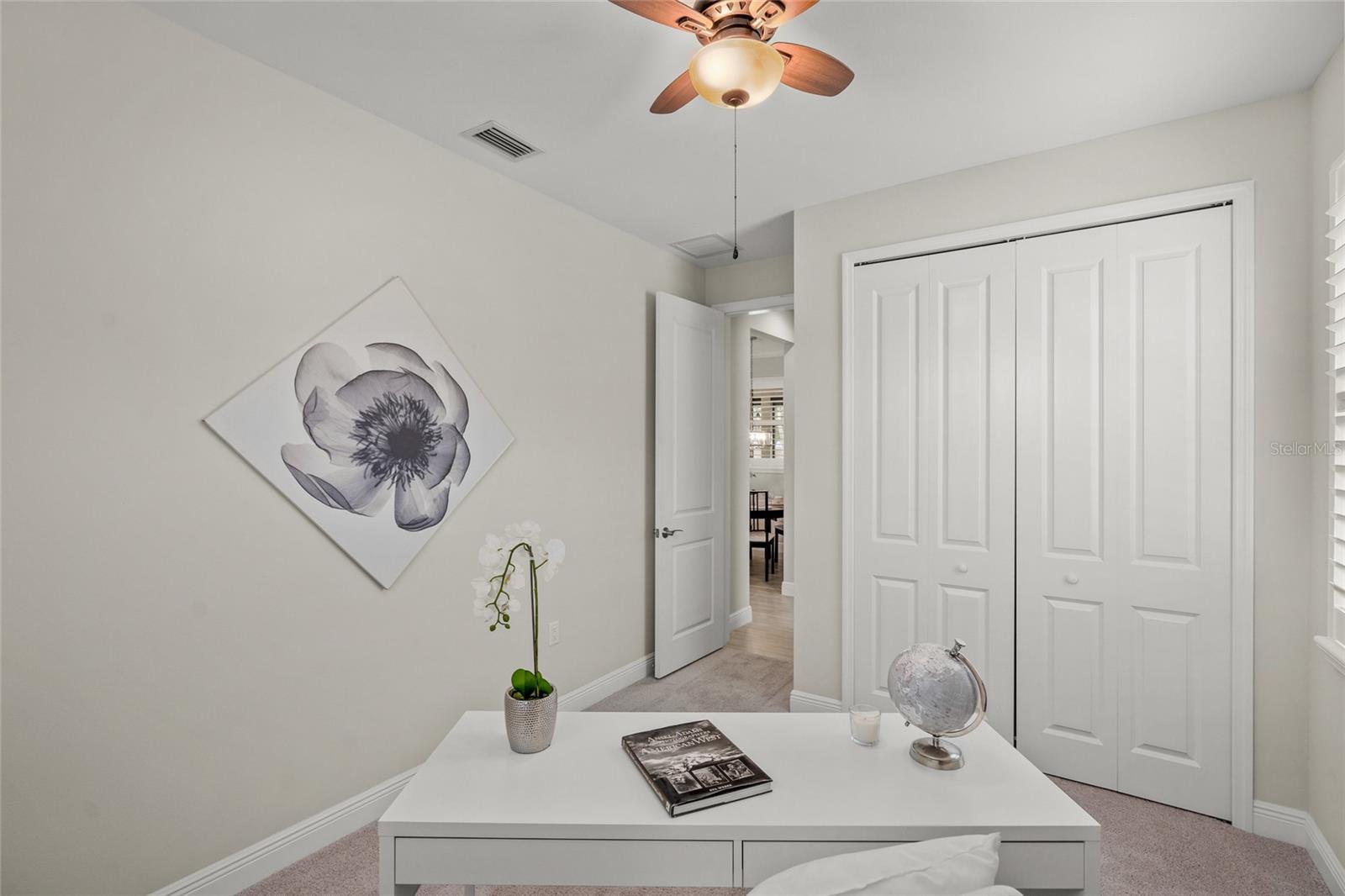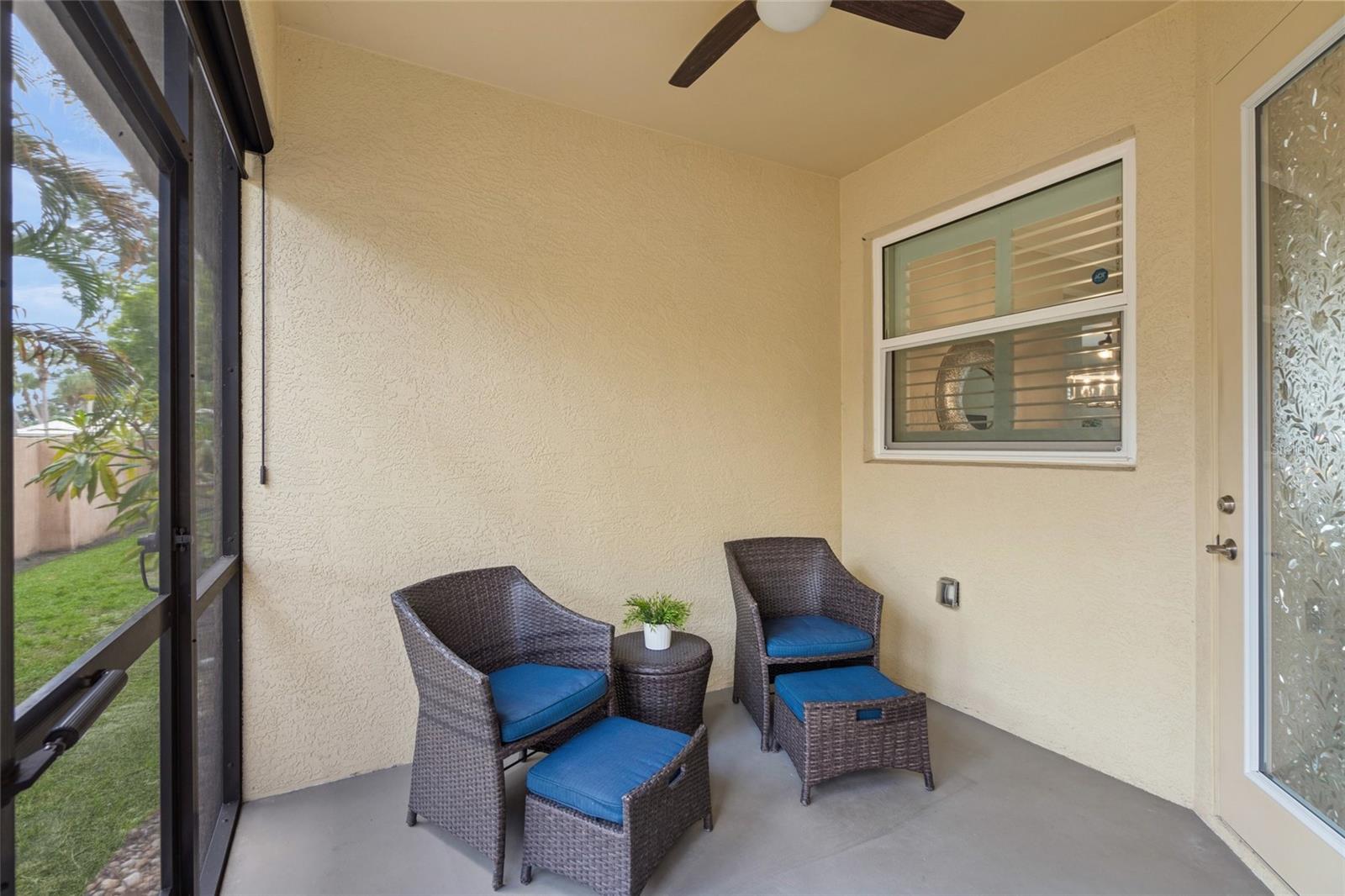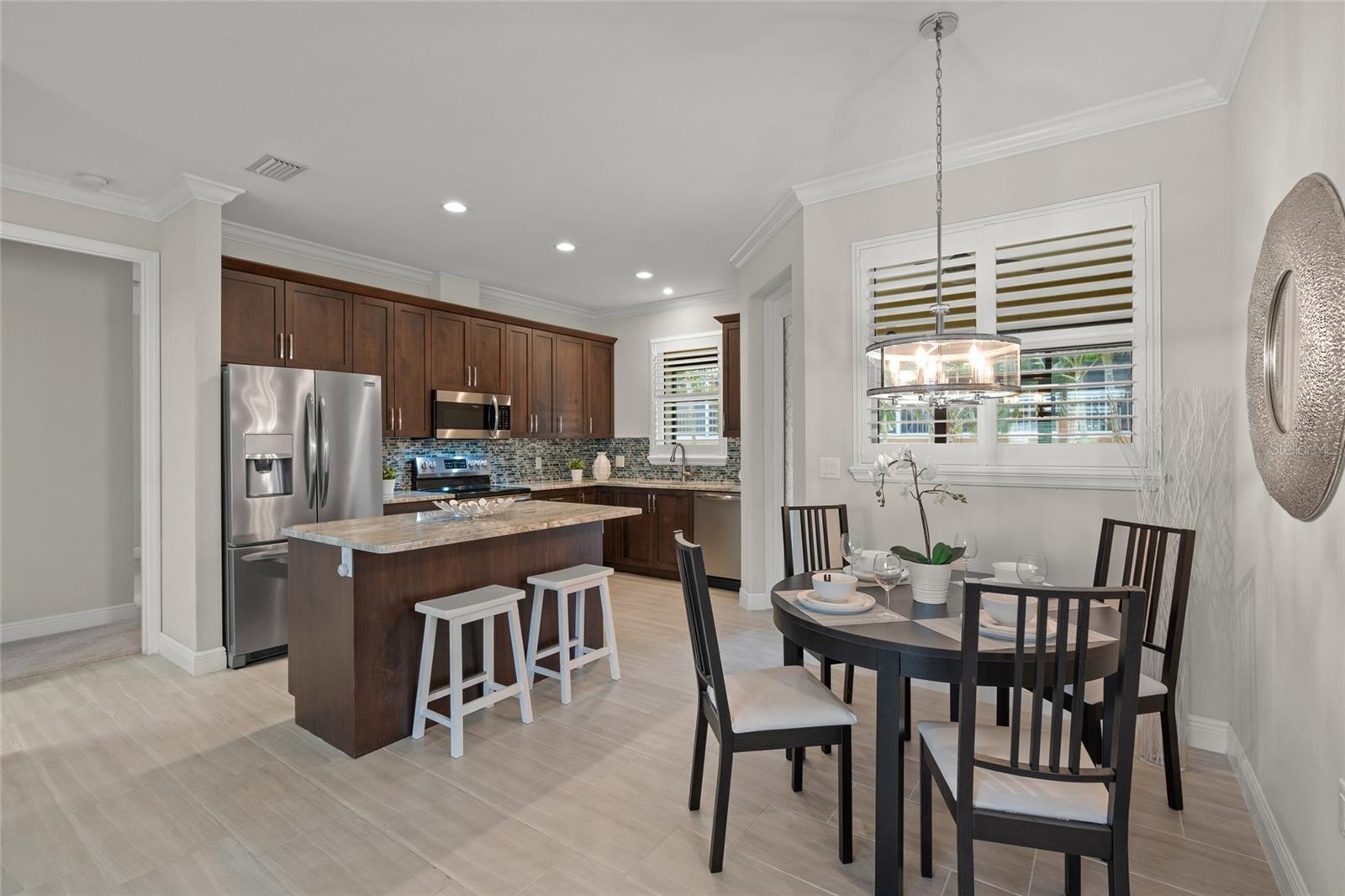 Hidden gem, rarely available. Experience the peace of newer construction including double-pane hurricane impact windows creating tranquility and ease in this lovely 3 bedroom, 2 bathroom, 2-car garage villa with ultra-low fees (only $177 per month) Quietly tucked away inside Sorrento Place and only minutes from beaches, golf, and shopping. Built in 2019 by premiere Sarasota builder -Trend Builders, every detail of this home has been designed for comfort and style. Inside you’ll find an open and spacious floor-plan. All living areas, bathrooms, and laundry room are laid with ceramic tile that mimics wood, while plantation shutters, recessed lighting, and crown molding add elegance throughout. The upgraded 8-foot doorways and high ceilings enhance the feeling of open space. Neutral paint tones make it easy to decorate to your taste. The kitchen is appointed with quartz countertops, stainless Frigidaire Gallery appliances, plenty of cabinet space with soft close doors and drawers, and a lazy susan in the corner to make storage easy. The master suite is extra large with a walk-in closet and en suite bathroom with quartz countertops, white cabinetry, and a walk-in shower tiled all the way to the ceiling. Two generous guest bedrooms share a guest bath also with quartz countertops and full height tile in the tub/shower combination. A screened-in lanai with custom automated shades offers private outdoor relaxation. The inside laundry room off the garage is spacious with extra closet space. The garage also has high ceilings ready for custom storage. Small pets are welcome. Outside you’ll enjoy a community pool within walking distance. Par-3 and multiple golf courses are within walking distance or a short drive. There is even a marina within walking distance that has boat slips available for rent, subject to availability. Nokomis Beach is just five minutes away and reachable by bike without ever needing to contend with US-41. Siesta Key Beach, often ranked #1, is less than 20 minutes away. Waterfront restaurants, grocery stores like Publix and ALDI, Walmart, Starbucks—all within five minutes. Oscar Scherer State Park, The Legacy Trail, shopping and historic downtown Venice offering theatre, restaurants, and quaint shops are under ten minutes away. Only 25 minutes to downtown Sarasota to enjoy ballet, symphony, opera, Van Wezel performing arts, dining, and more. A+ School district including Pine View school for the gifted! This is a rare opportunity to live between Sarasota and Venice in style, comfort, and peace.