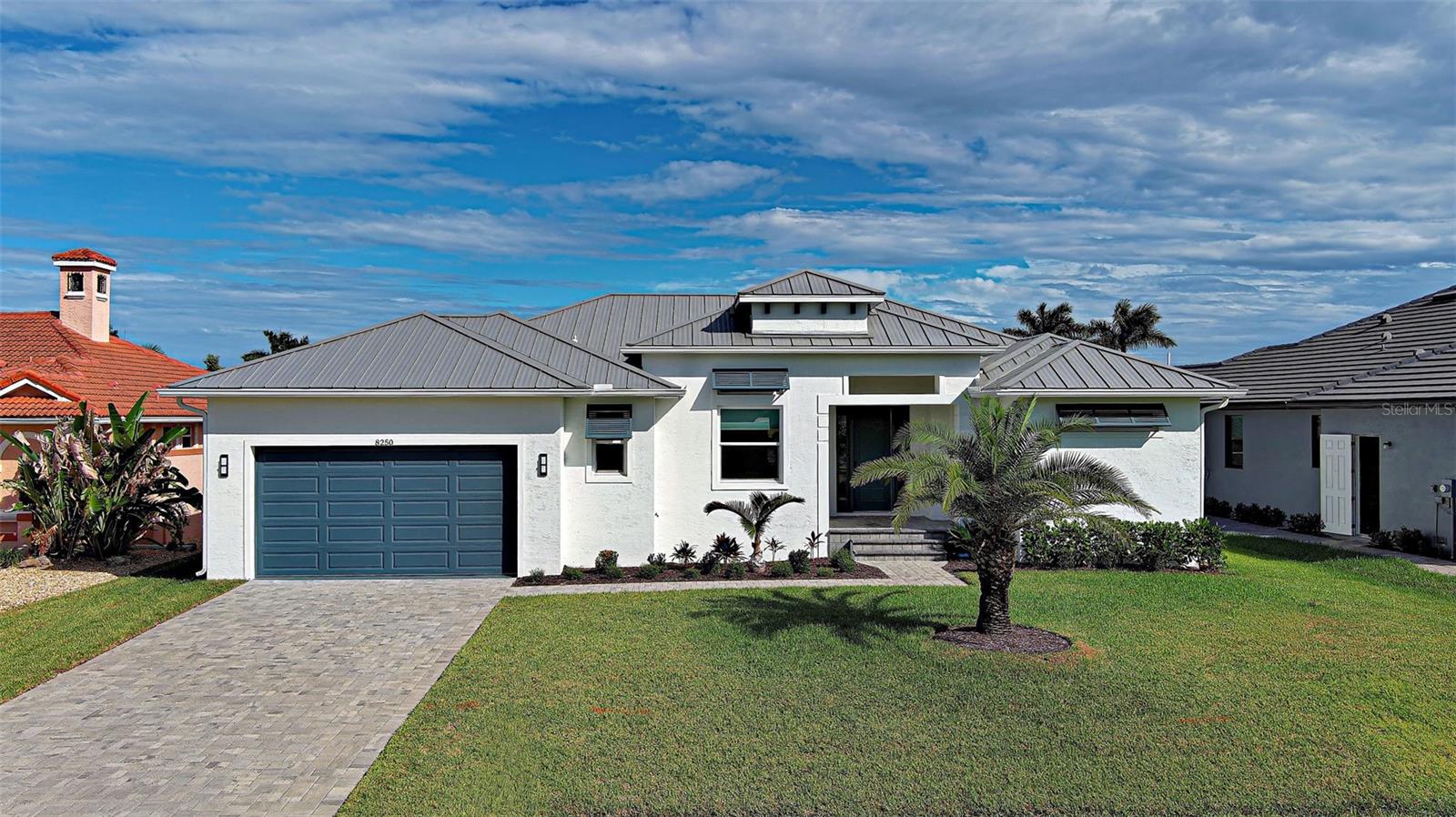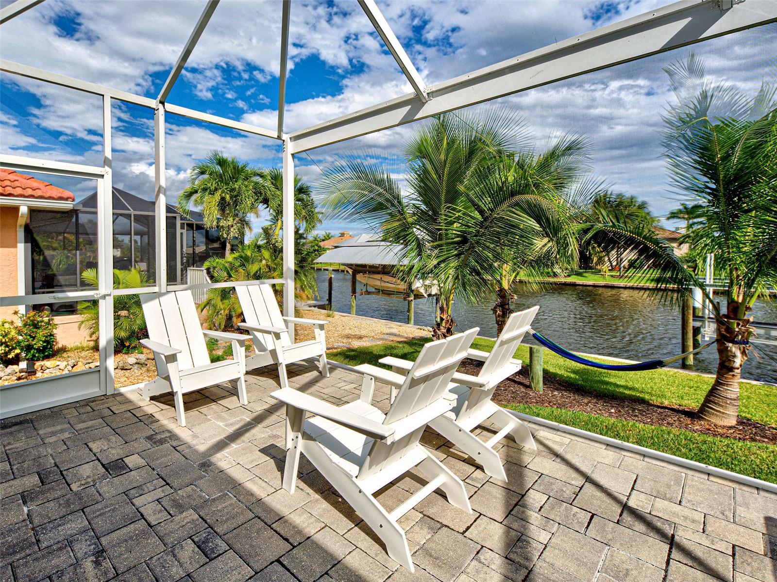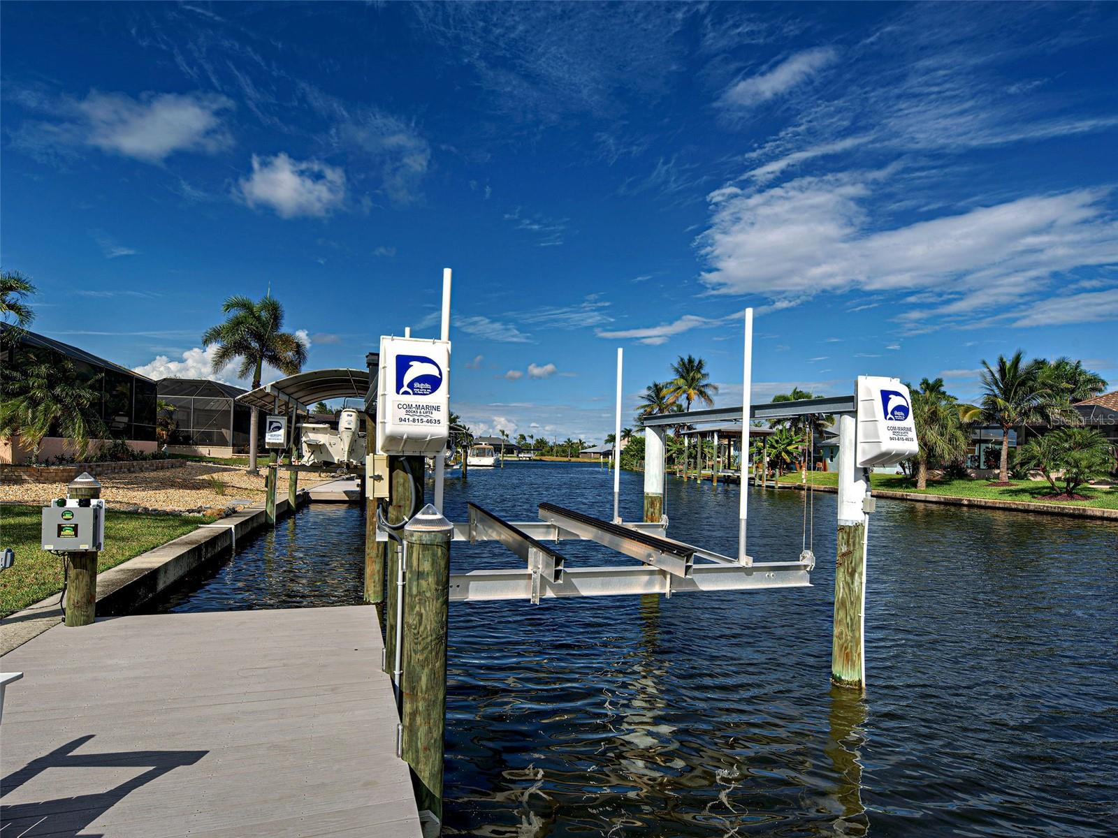 Under contract-accepting backup offers. Why deal with all the hassles of New Construction when this home checks all the Boxes? New High-end furniture, Smart TVs in all rooms await in this next level modern Luxury NEW WATERFRONT HOME located in the heart of South Gulf Cove in Section 93, with a SEAWALL, BOATDOCK, BOAT and WAVERUNNERLIFTS, equipped with HURRICANE IMPACT WINDOWS and METAL ROOF built to the new FLOOD ELEVATION requirements. PRIME location w/direct access to the open water & beyond! Brand new Home with 4 bedrooms (2 mastersuites) / 3 baths / pool / jacuzzi / pool heater / boat dock / boatlifts. Exquisite Florida SAILBOAT waterfront retreat, sitting on a concrete seawalled lot offering a world of modern luxury including a thoughtfully designed split open floor plan boasting a main bedroom, a junior suite/in-law suite and 2 guest bedrooms with a total of three bathrooms, one of them also serving as pool bath. This brand new coastal haven with stylish decorative Bahama Shutters offers a bright and airy floor plan that seamlessly blends indoor and outdoor living thanks to 3 stacking 8 FT Hurricane Impact resistant sliders on one side and a 90 degree slider on the other so you can bring the outside in. The Great Room comes with a 12 FT coffered ceiling with LED mood lights, Dramatic Kitchen with 3cm Bali Quartz, with waterfall left & right of island, new Stainless steel appliances, Farm House sink, lots of counter space, integrated microwave, a wine refrigerator, light grey Subway Tile backsplash, pantry with wood shelving, light grey soft close cabinets in kitchen and all 3 baths. The well-appointed kitchen is a chef's delight, equipped with GE appliances, ample cabinetry, and a convenient breakfast bar. It's the perfect space to prepare delicious meals while enjoying panoramic views of the waterway. The Master suite is separated from main living by a modern Barndoor, sliders to pool deck, 2 walk-in-closets and dramatic bath with his and hers separate Bali Quartz vanities and a walk-around-shower including a rain shower are yours as well. The Junior Suite with double doors offers a large Walk-in-Closet an en-suite bathroom with shower, neon light mirror cabinet and single sink. The two Guest bedrooms share a bathroom with walk in shower, neon light mirror cabinet and single Sink. This Bathroom offers direct access to the pool deck. Outside, your private oasis awaits, complete with a custom-designed rectangular pool with Sunshelf and Hot Tub, both with upgrade Pebbletec finish and Italian glass tiles and a new electric pool heater framed by a picturesque cage with 3 large Panorama screens, whereas all pool function can be controlled on your cellphone by a Jandy System. Situated on a lot with concrete seawall and lush landscaping, this residence epitomizes serenity and tranquility, offering the perfect opportunity for serious boaters with a 8x30 FT private Trexwood dock, with upgraded to Solar-powered Dolphin 10, 000# hybrid boat lift and a Dolphin 7, 000# hybrid boat lift set up for 2 jet ski, inviting you to embark on endless adventures. Dock is prewired for electric and water! Laundry room with sink, front loading washer/dryer and same light grey upper cabinets. All flooring is wood look Luxury Vinyl and light grey ceramic tiles in all bathrooms. 2 Car Garage with EV ready plug and Epoxy floor. Metal roof with spray foam insulation will keep your energy bills low. Irrigation, St. Augustine grass. All furniture included / Decoration and Comforters not included.