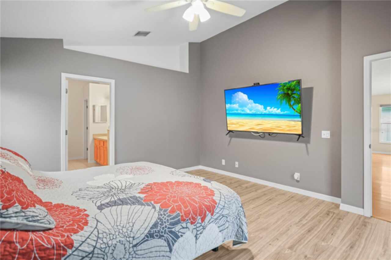 Ceiling Fans(s), Eat-in Kitchen, High Ceilings, In Wall Pest System, Kitchen/Family Room Combo, Open Floorplan, Primary Bedroom Main Floor, Smart Home, Solid Surface Counters, Stone Counters, Thermostat, Walk-In Closet(s), Window Treatments
