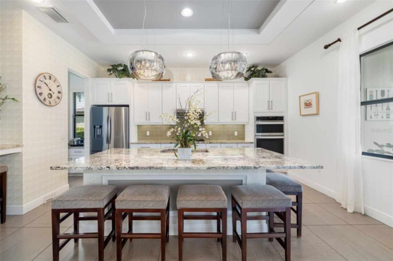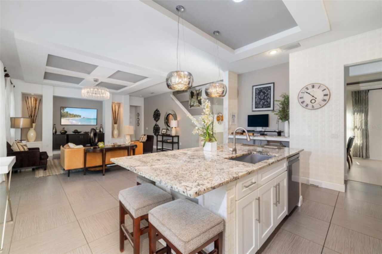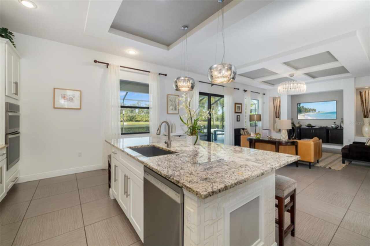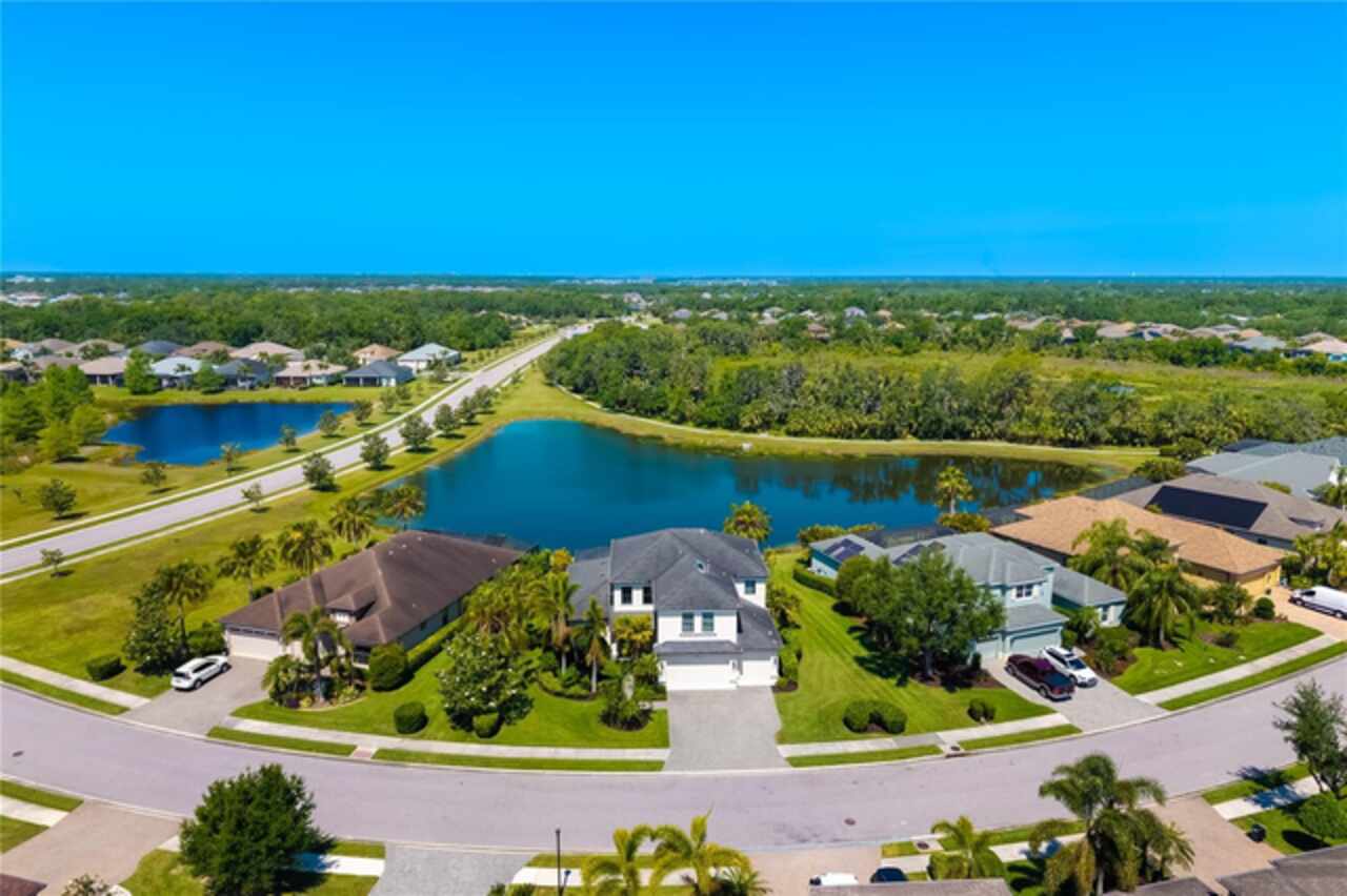 Welcome to 826 Honeyflower Loop, a beautifully maintained custom-built pool home located in the highly desirable gated community of Greyhawk Landing. This modern residence offers impact windows and doors, EV charger, whole-house surge protection, central vacuum, engineered hardwood flooring, designer lighting, and no carpet. Set on a picturesque lake and preserved lot, the home features an inviting open-concept layout with soaring ceilings and water views. The first floor primary suite provides a private retreat with dual custom walk-in closets and a spa-style bathroom with soaking tub, walk-in shower, and dual vanities. The gourmet kitchen is equipped with a Thermador gas range, Bosch dishwasher, granite countertops, spacious breakfast bar, with an adjacent dining room ideal for entertaining. Upstairs offers three guest bedrooms, two full baths, plus two large bonus rooms perfect for media, game room, home office, fitness, or the option for a fifth bedroom or in-law suite. The expansive screened lanai includes an updated textured marble surface (2025) and overlooks the sparkling pool with wide lake and preserve views for year-round Florida outdoor living. Greyhawk Landing residents enjoy resort-style amenities including multiple pools, fitness center, tennis and pickleball courts, sports fields, playgrounds, miles of nature trails, fishing pier. With proximity to Lakewood Ranch, A-rated schools, IMG Academy, premier golf courses, top beaches, medical facilities, and everyday conveniences, this home offers the ideal blend of luxury, comfort, and lifestyle in one of Bradenton’s most sought-after communities.
